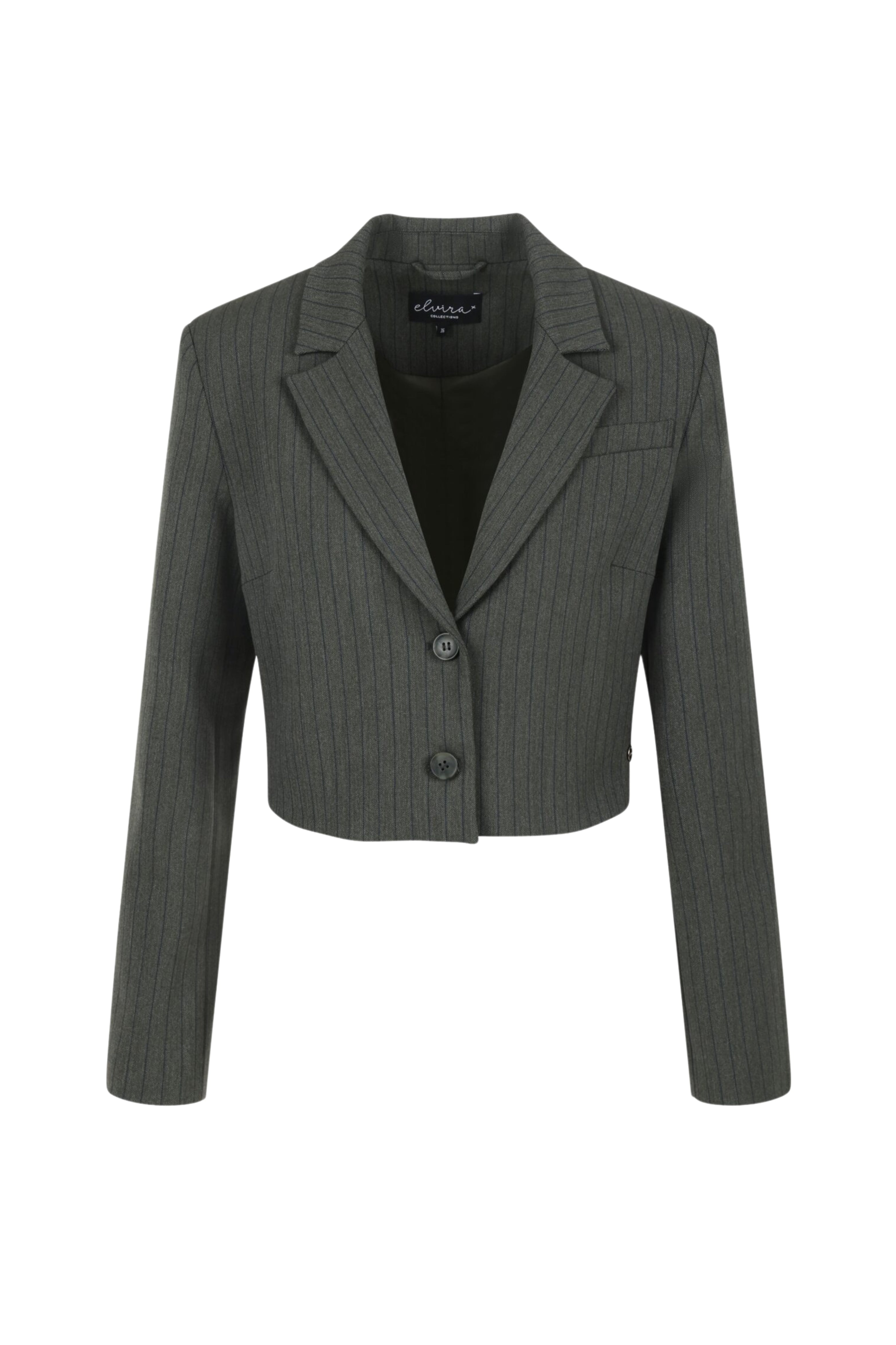 De Blazer Claire Green Stripe van Elvira Casuals is een moderne interpretatie van de klassieke blazer. Het subtiele streeppatroon en de cropped lengte geven dit item een eigentijdse uitstraling, terwijl de reverskraag en dubbele knoopsluiting zorgen voor een tijdloos karakter. Dankzij de licht getailleerde pasvorm creëert deze blazer een flatterend silhouet.