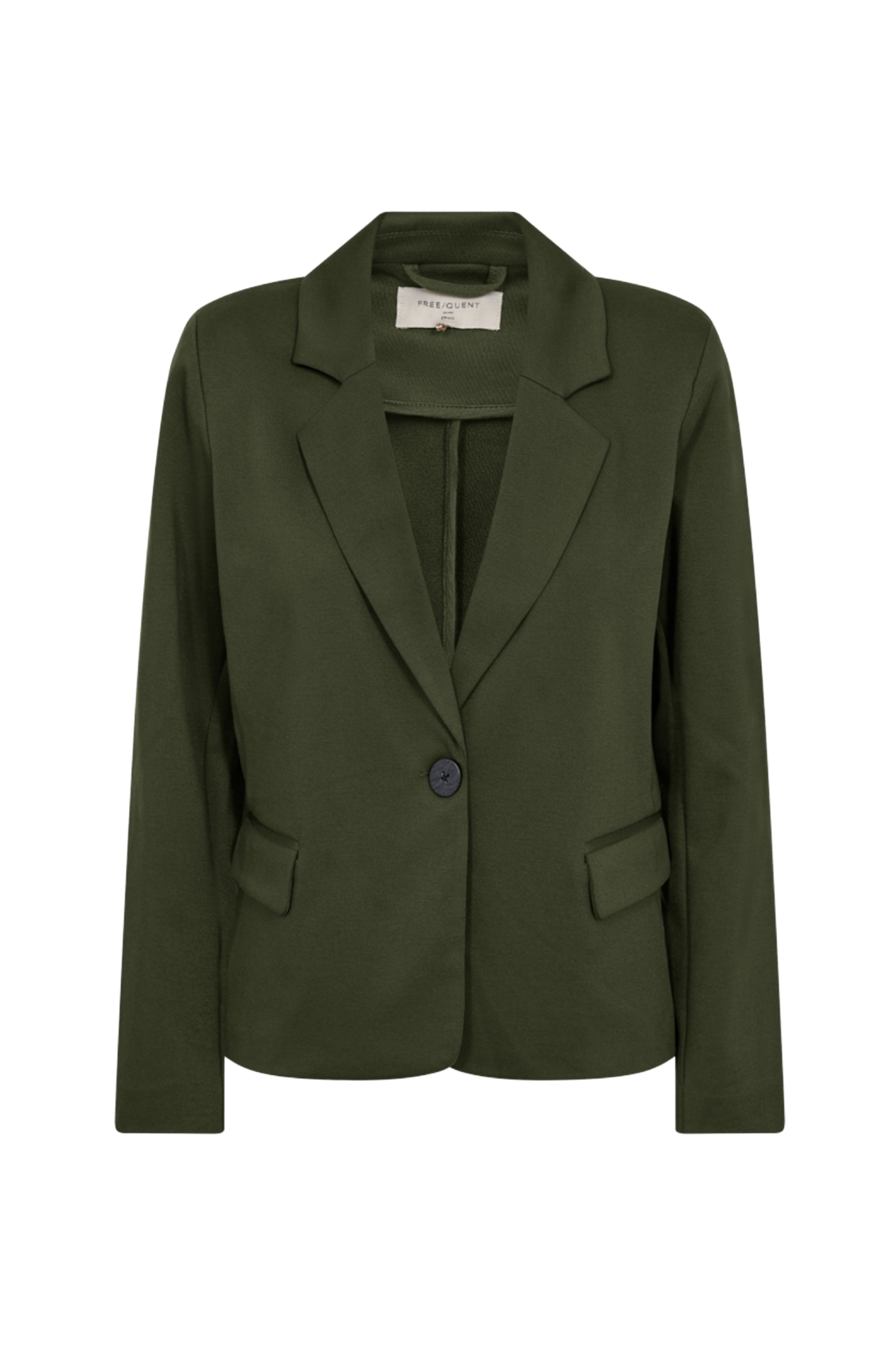 De Blazer Fqnanni Kombu Green van Freequent is een stijlvolle blazer met een moderne, tijdloze uitstraling. De diepe groene kleur en zachte, soepele stof geven het jasje een elegante look die zowel chic als comfortabel is โ€” perfect voor kantoor of een casual outfit.