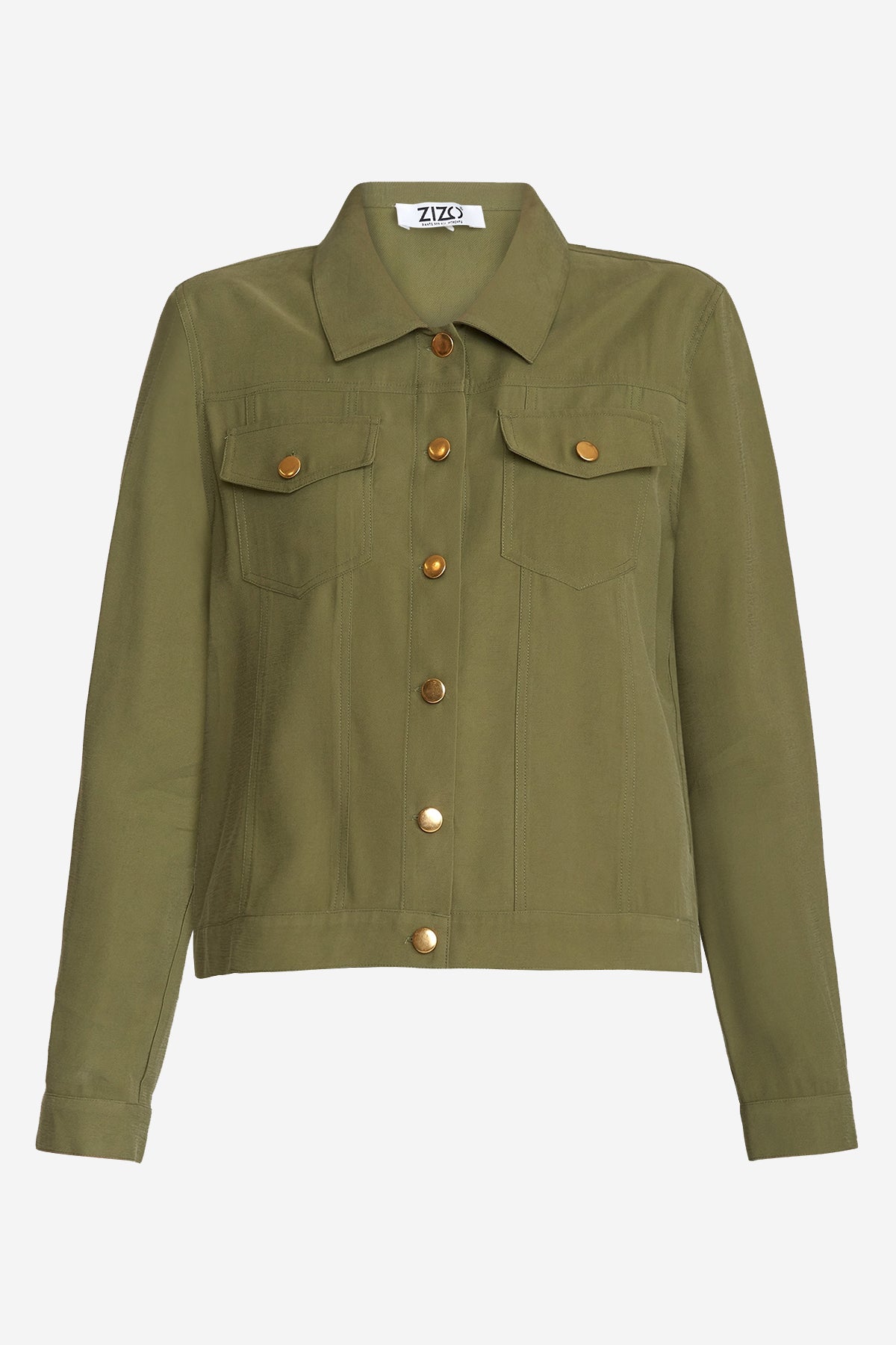 Blazer Jeresan van Zizo is een stijlvolle interpretatie van de klassieke militaire look. Deze blazer, uitgevoerd in een rijke olijfgroene tint, combineert functionaliteit met een vleugje elegantie. De opvallende gouden knopen en de nauwkeurig geplaatste zakken benadrukken het krachtige ontwerp.