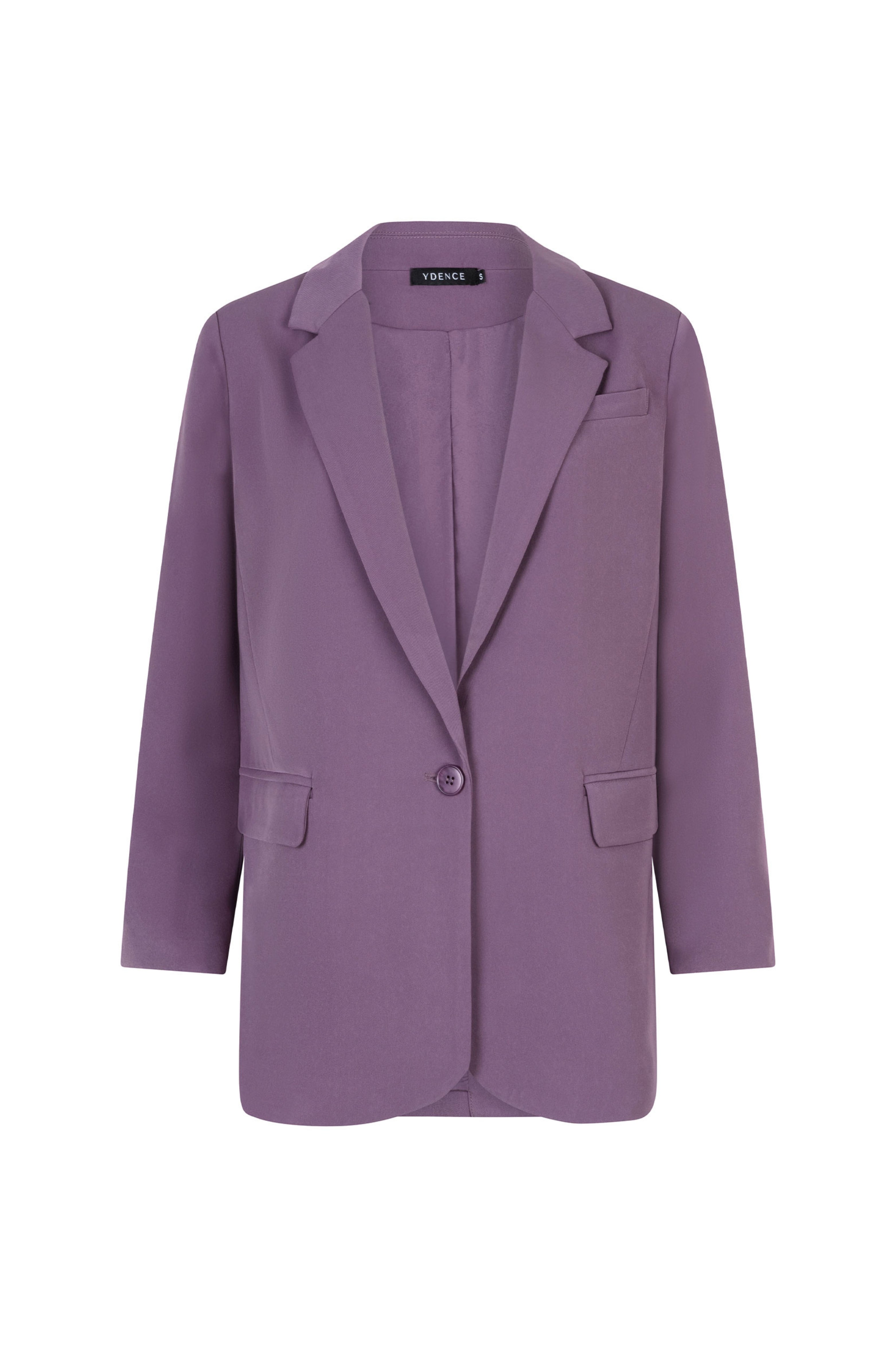 De Blazer Maisie Purple van Ydence is een stijlvolle, lange blazer in een zachte paarse tint. Uitgevoerd met een klassieke reverskraag, eenknoopsluiting, klepzakken en knoopdetails op de mouwen. Het rechte model geeft een moderne, tijdloze uitstraling. Style als co-ord set voor een volledige look.