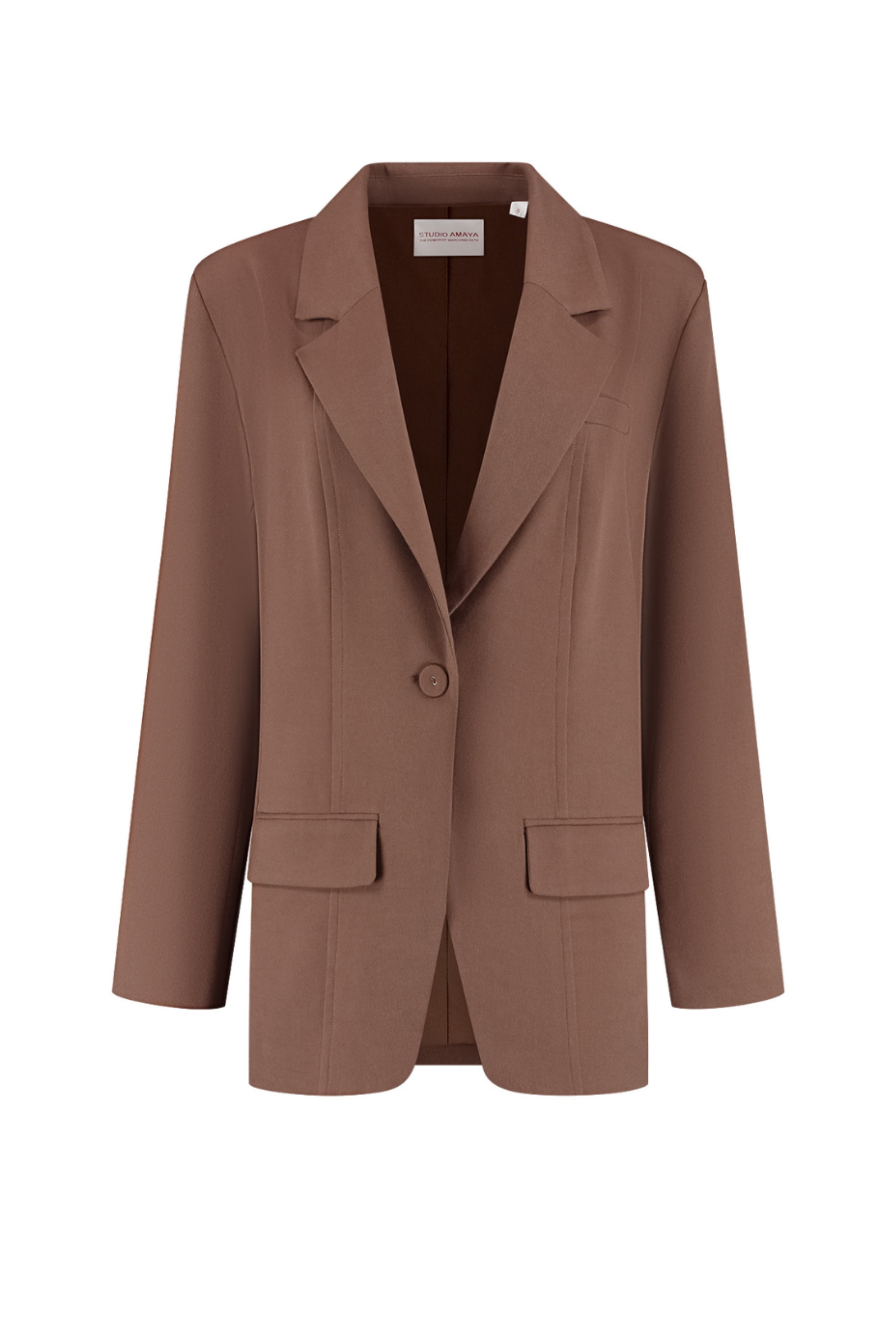 De Puck Brown Blazer van Studio Amaya is een tijdloze must-have voor een stijlvolle en zelfverzekerde look. Deze oversized blazer in een warme bruine tint combineert moeiteloos elegantie met een vleugje nonchalance.