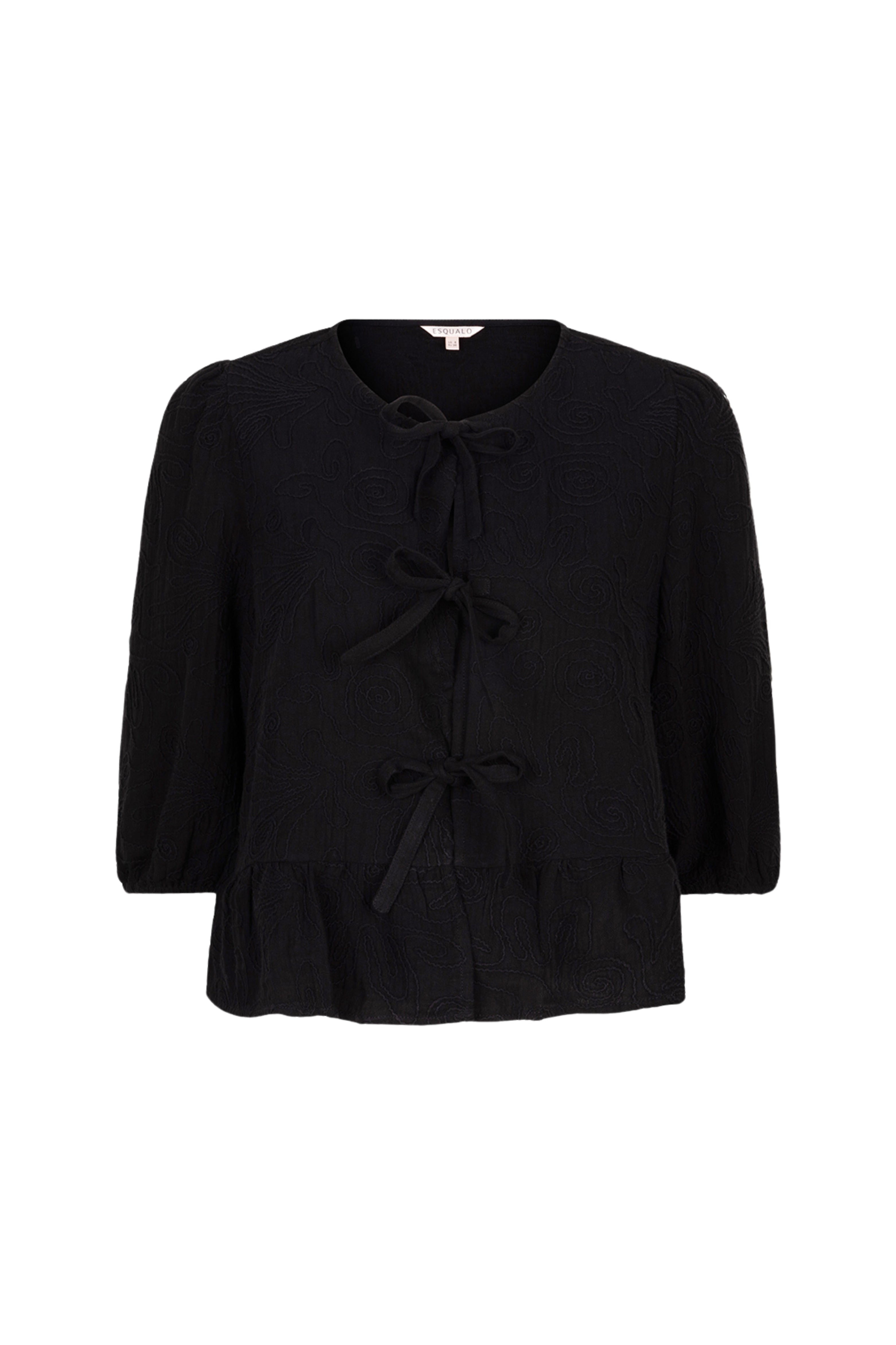 Blouse 3D Embroidery Black is een chique, zwarte blouse van Esqualo met verfijnde 3D-borduursels en vrouwelijke strikdetails. Een unieke must-have voor een elegante en modieuze look.