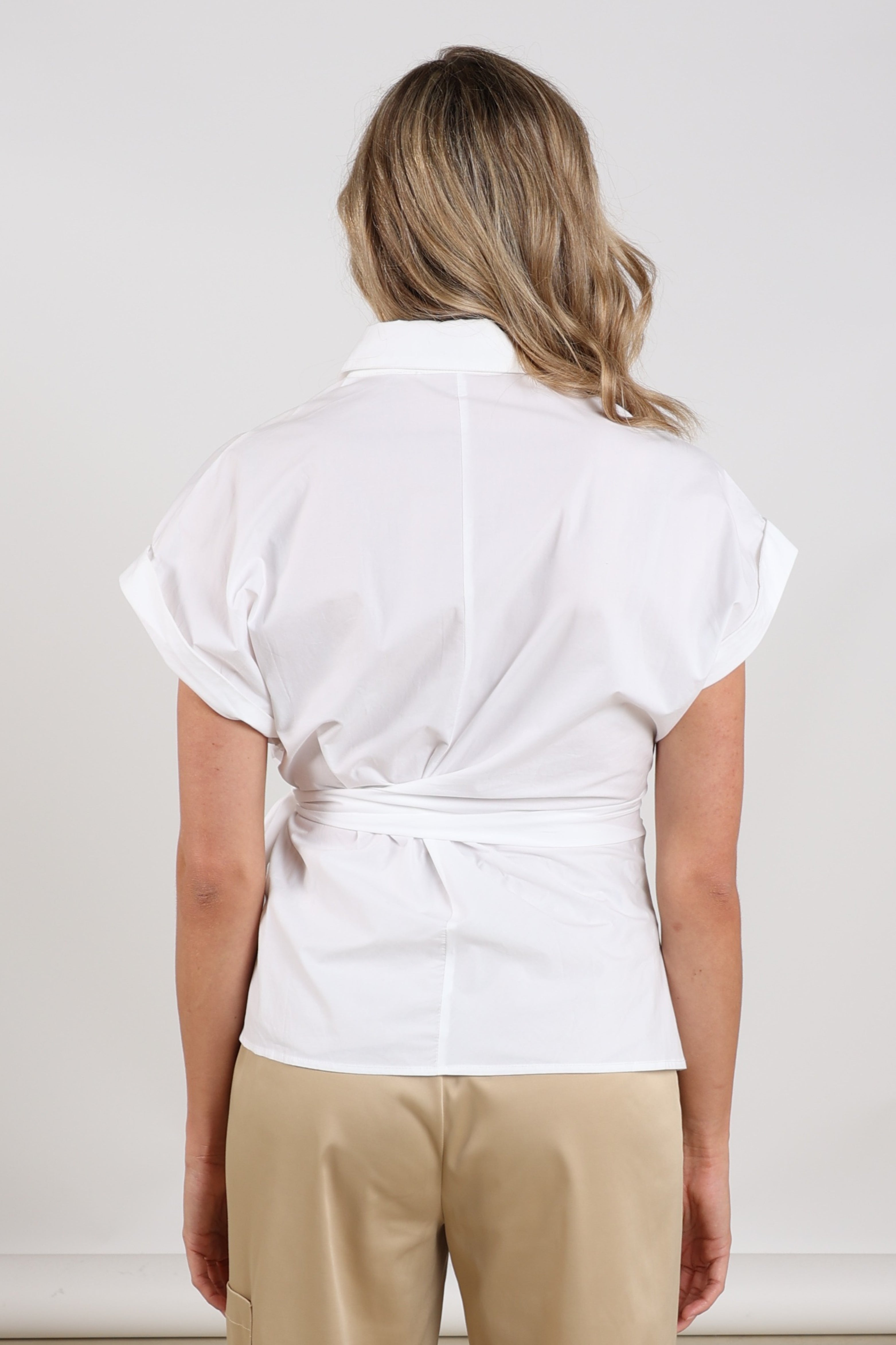 De Blouse Aneta Offwhite van Nukus is een stijlvolle blouse met een moderne overslaglook. Het strikdetail in de taille geeft het item een vrouwelijk silhouet, terwijl de korte mouwen en gladde stof zorgen voor een elegante uitstraling.