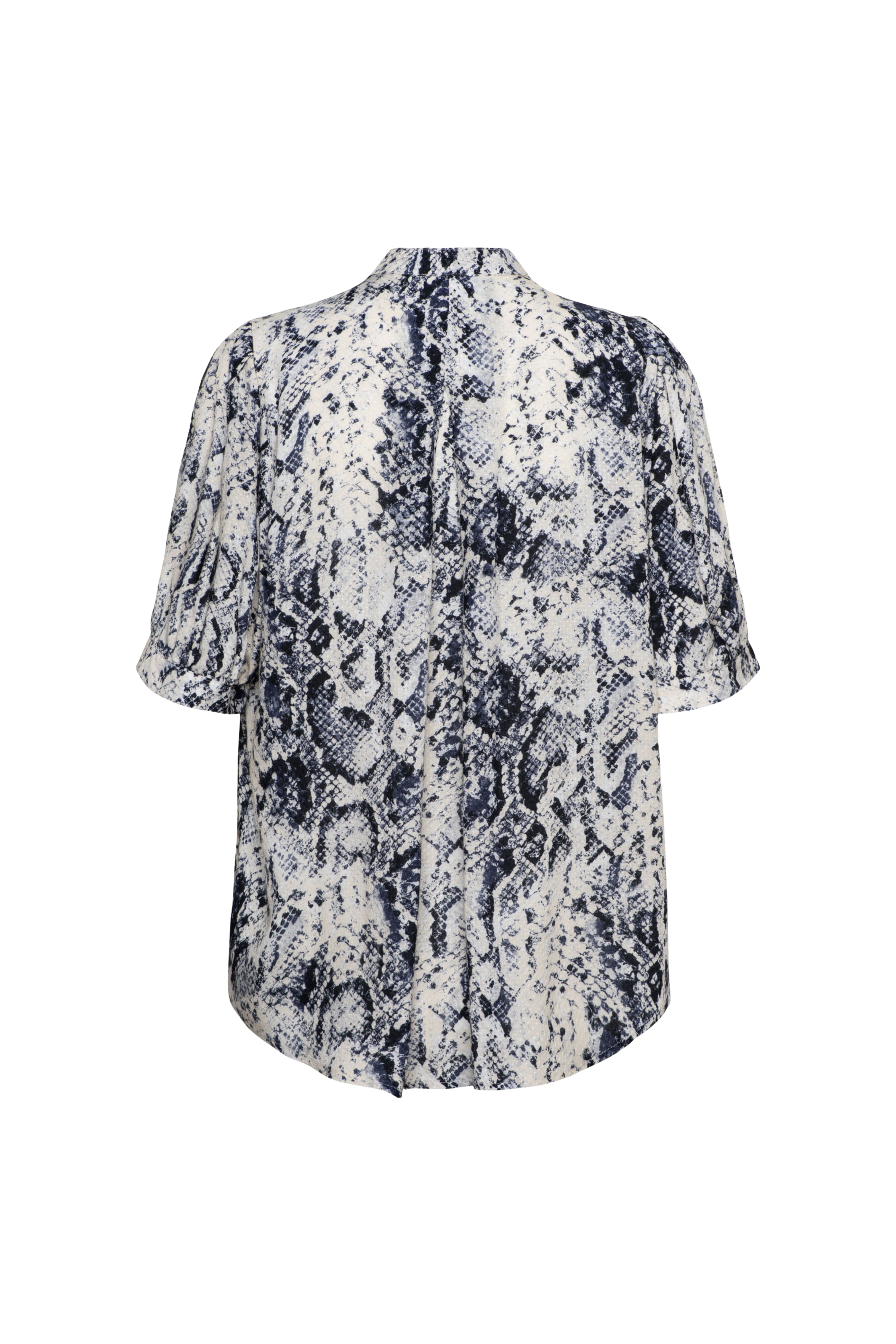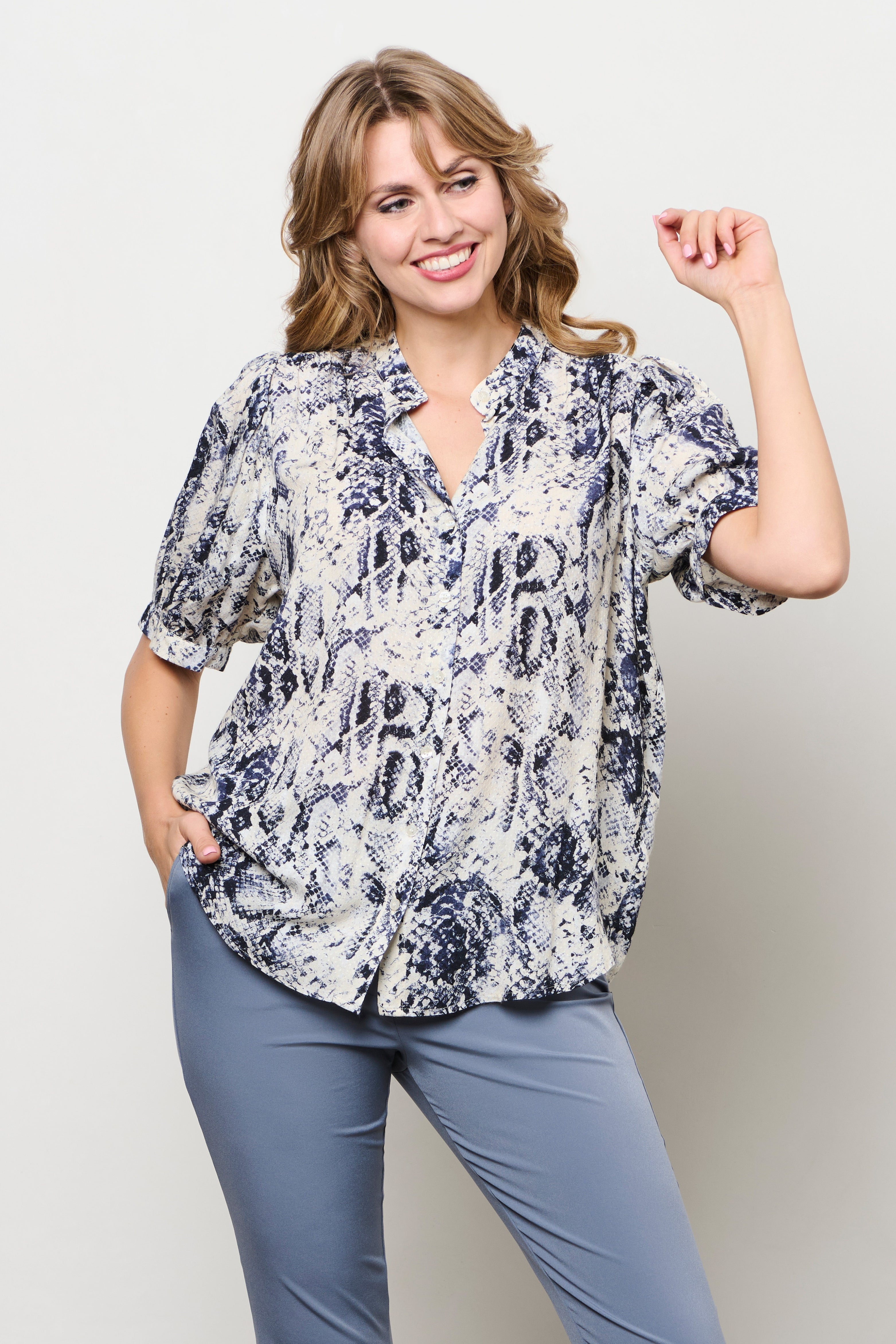 De Blouse Ansera Snake Slate Multi van &Co woman is een stijlvolle blouse met opstaande kraag. De soepele feel en korte mouwen dragen luchtig en chic. Perfect voor kantoor of diner.