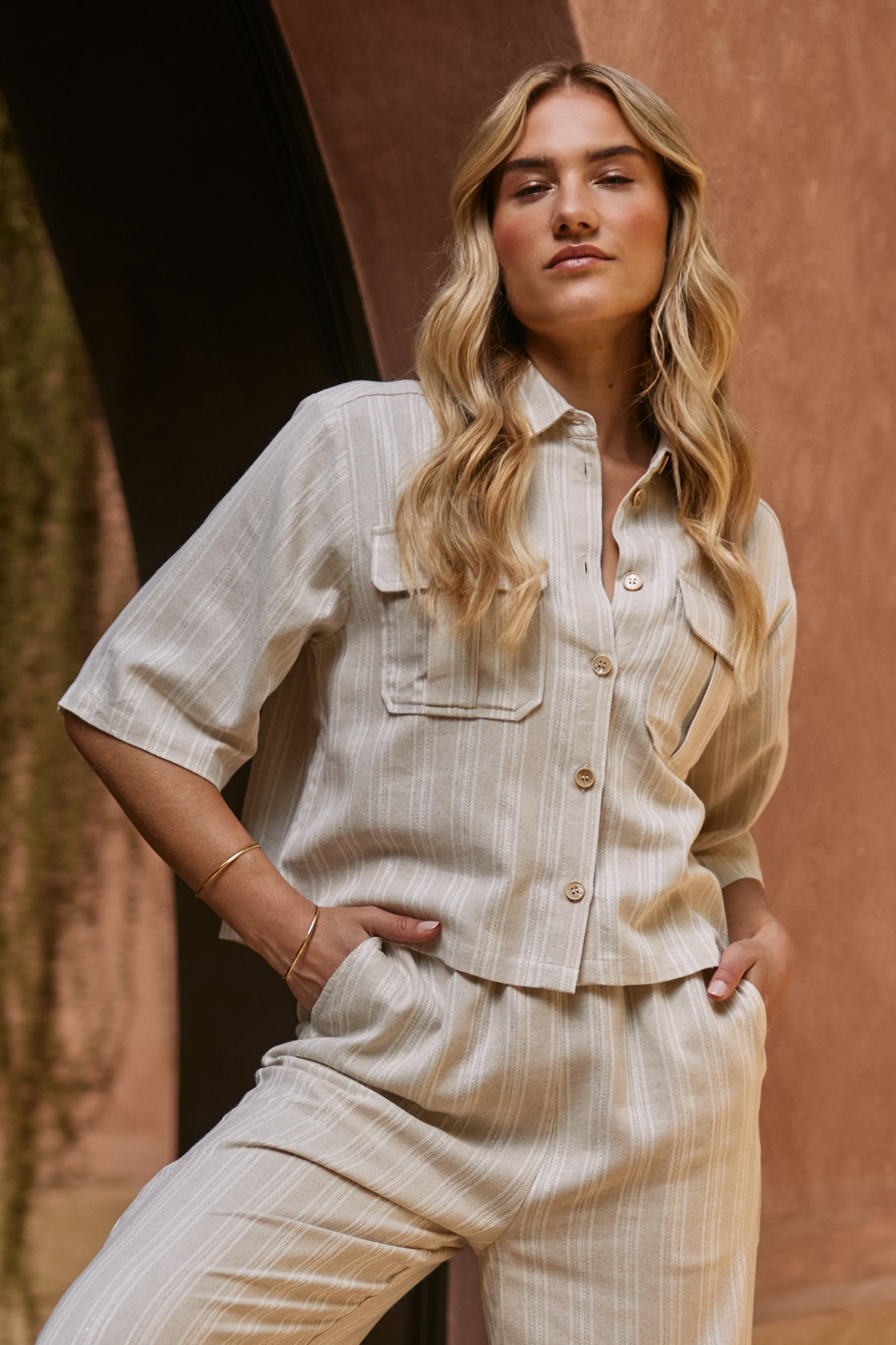 Blouse Bodine Stripe Sand Offwhite NKS02011