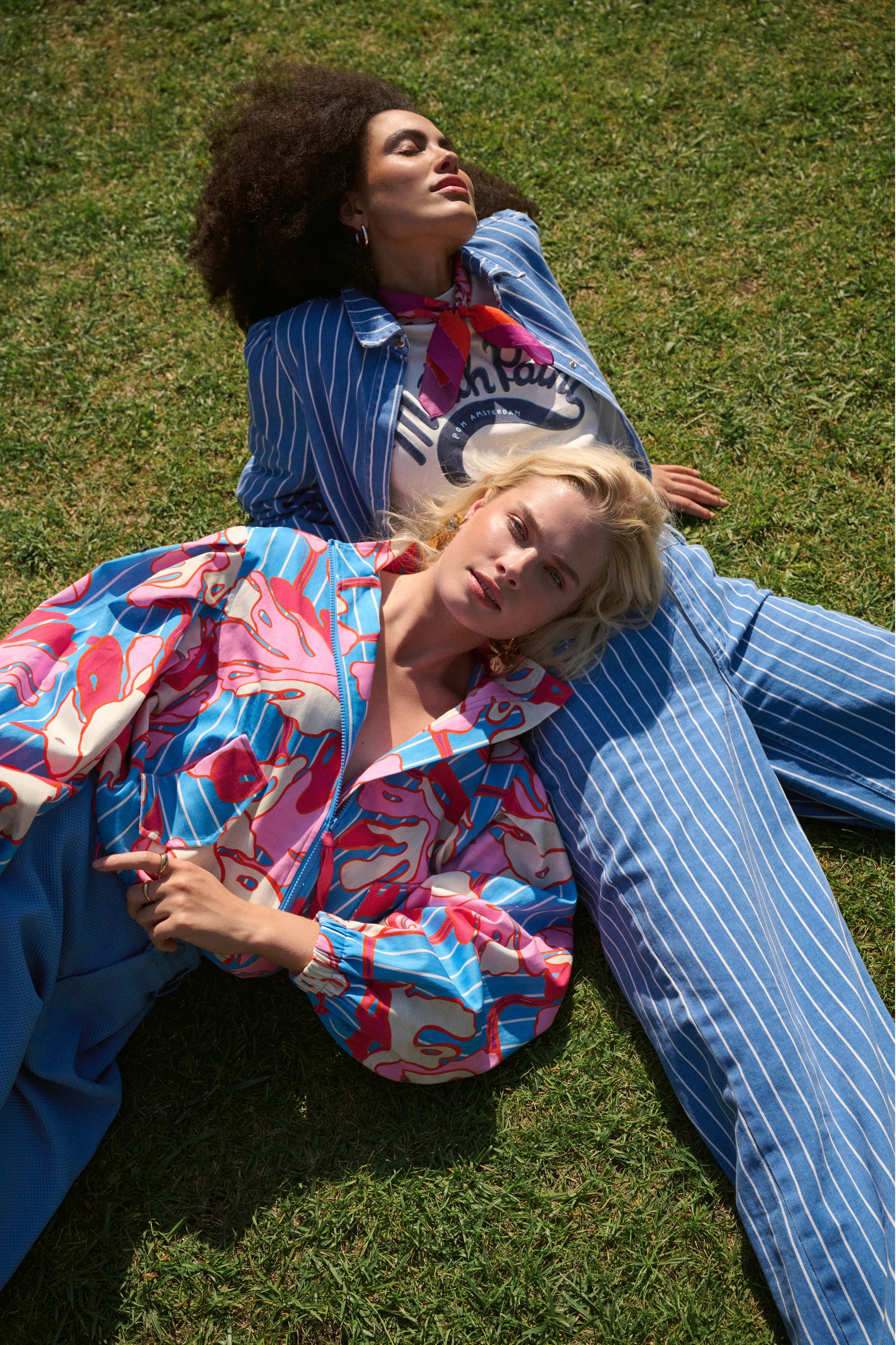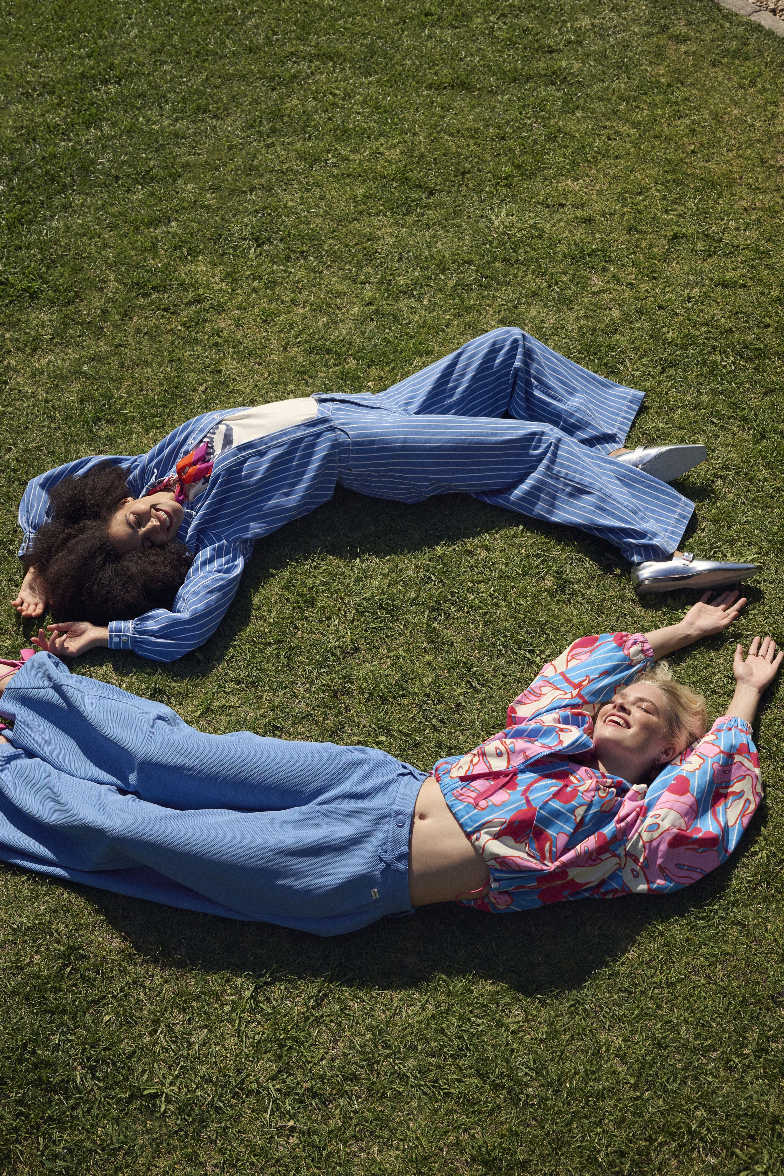 • Het ecom model is 170 cm, het campagne model is 174 cm, beiden dragen maat S