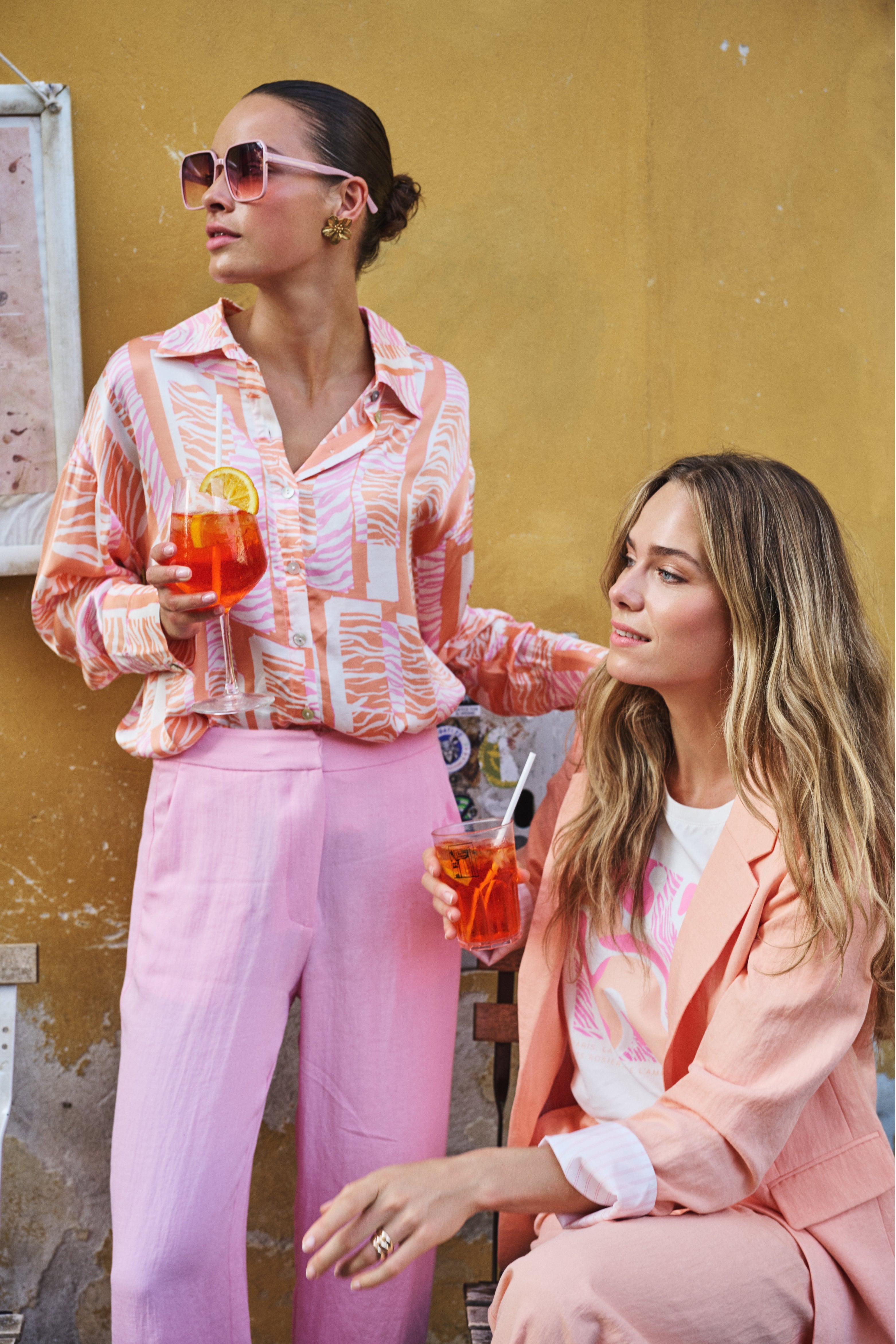 • Het ecom model is 173 cm, het campagne model is 175 cm, beiden dragen maat S