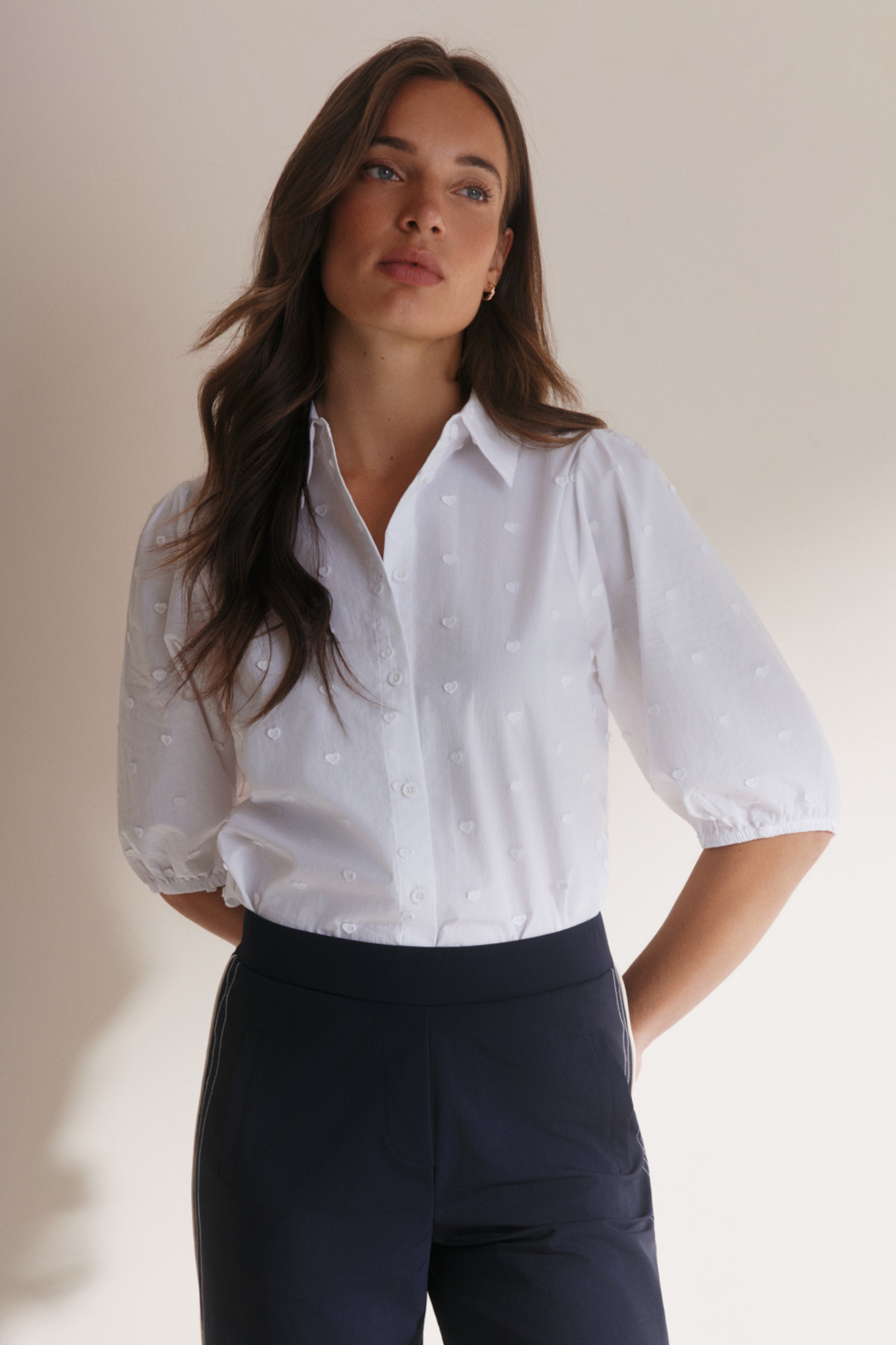 De Blouse Eve Simple White van Lady Day is een elegante blouse met Klassieke kraag. Pofmouwen en een doorknoopsluiting geven een vrouwelijke twist. Perfect voor werk en etentjes.