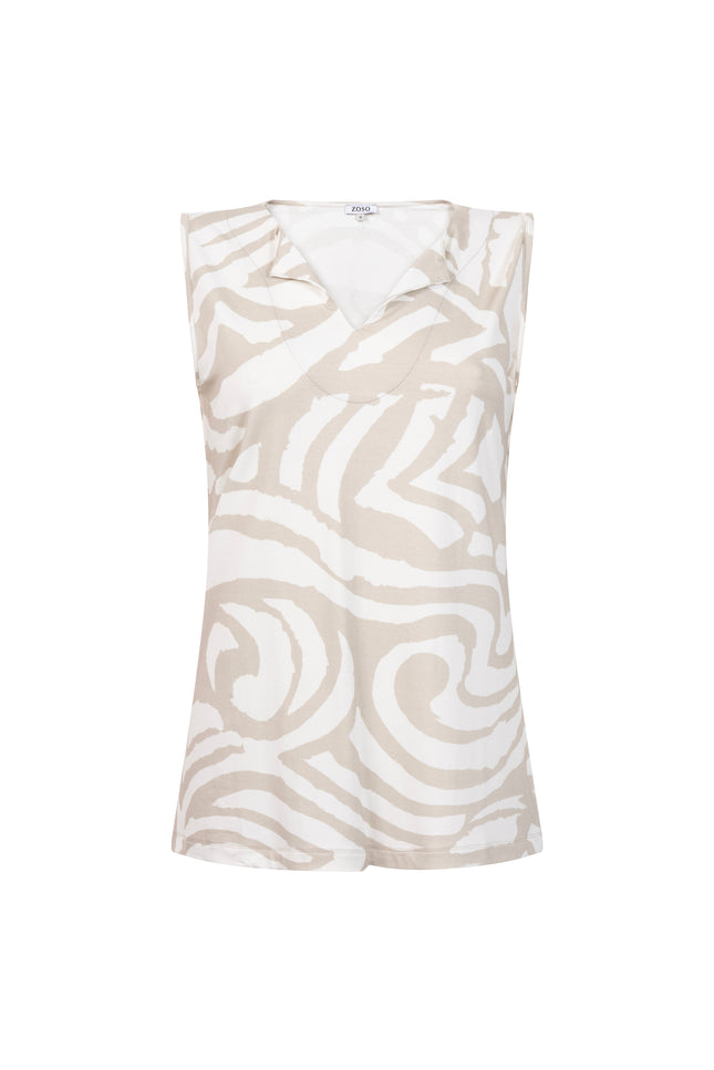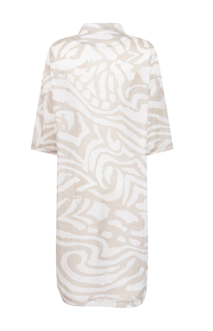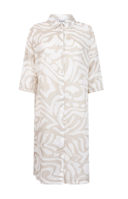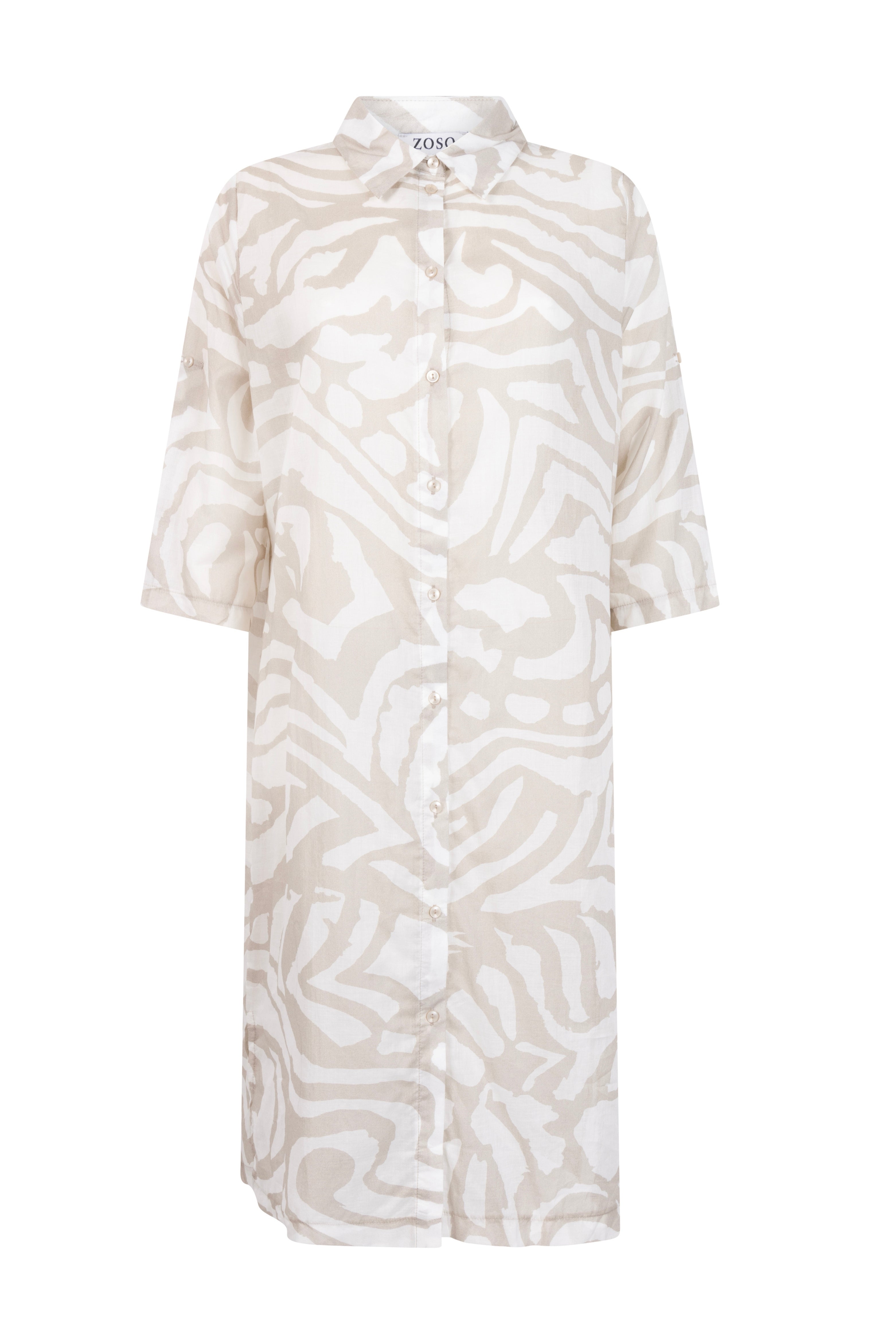 Blouse Evelien Sand van Zoso is een luchtige doorknoopblouse in zandkleur met witte print. Dankzij de rechte pasvorm en opgerolde mouwen is dit item perfect voor een stijlvolle, relaxte zomerdag.