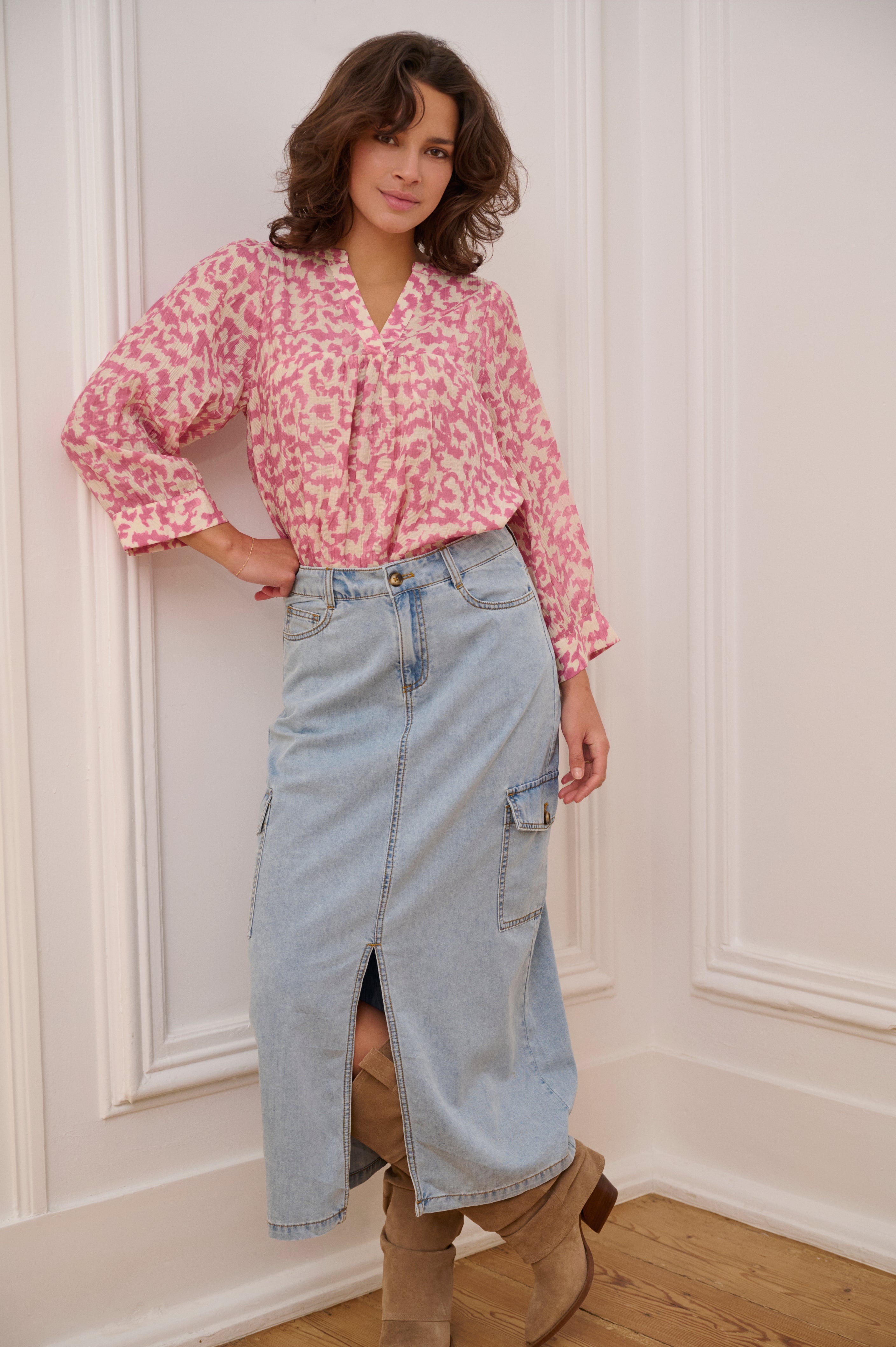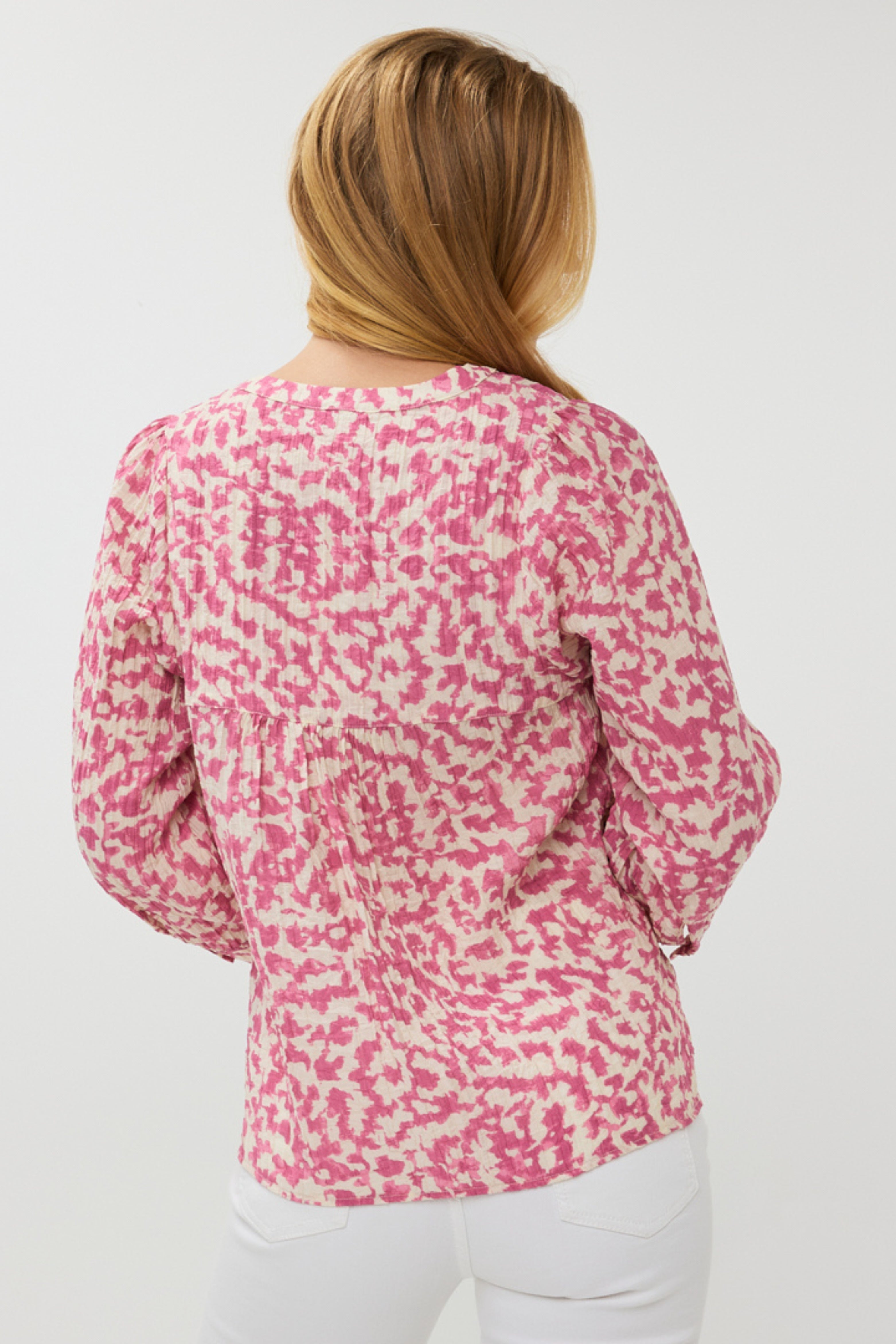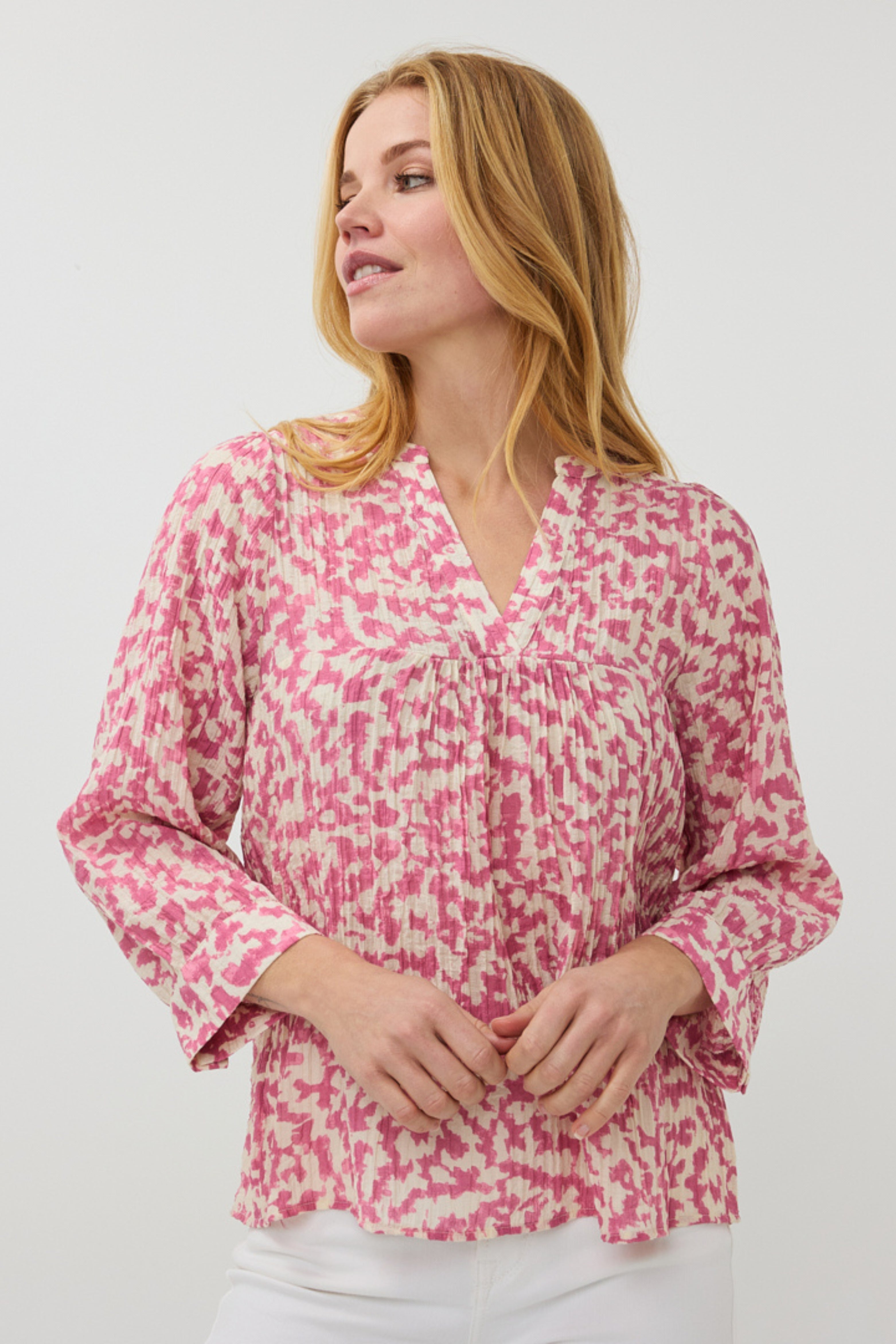 De Blouse Floral Retreat van Esqualo heeft een luchtige pasvorm en een verfijnde bloemenprint in zachte tinten. De subtiele plooien en V-hals geven een vrouwelijke touch, terwijl de soepele stof zorgt voor ultiem draagcomfort. Perfect te combineren met een jeans of rok voor een moeiteloos stijlvolle look!
