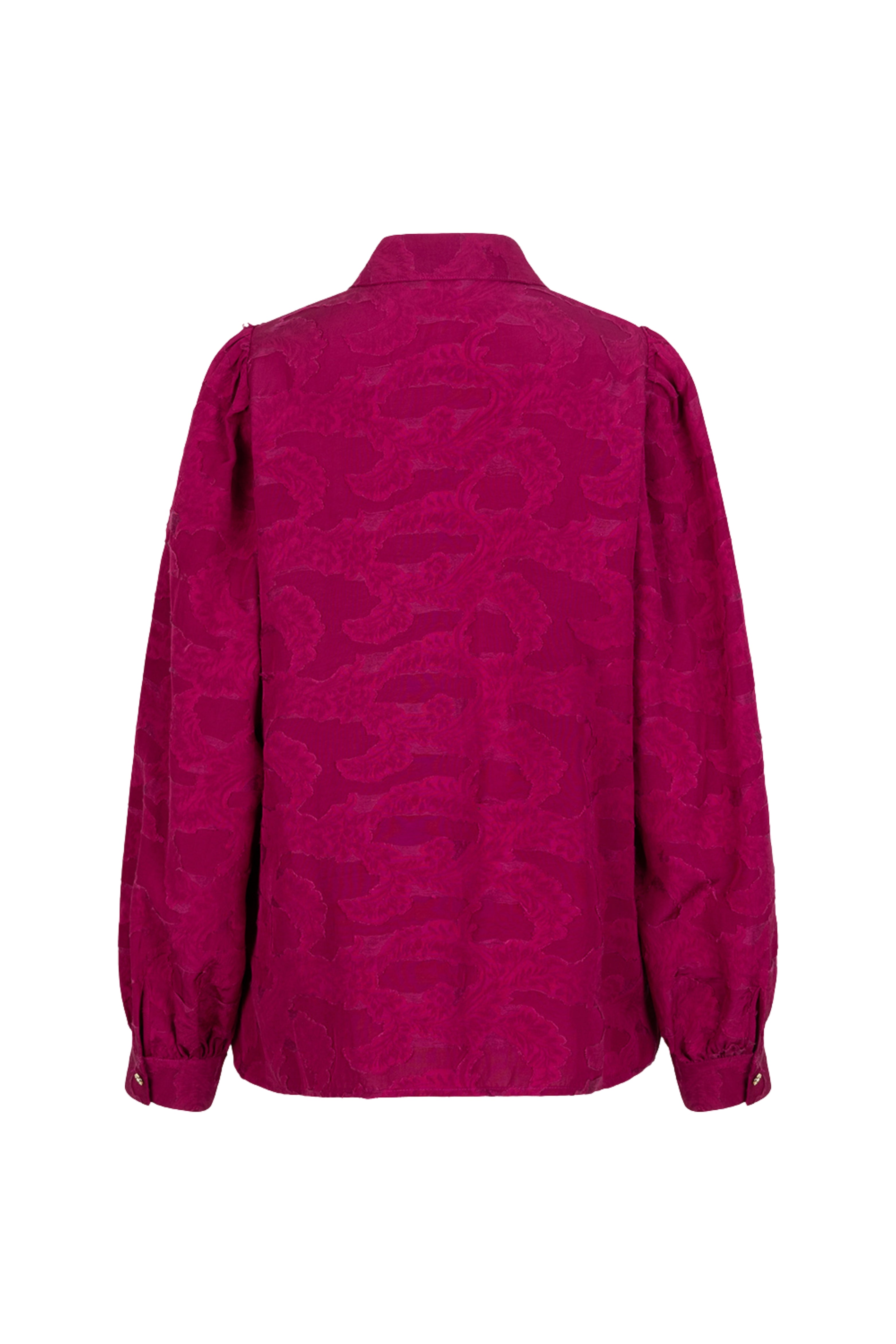 De Blouse Flower Jacquard Maroon van EsQualo is uitgevoerd in een rijke maroon kleur met subtiel bloemmotief. De elegante knopen en verfijnde jacquardstructuur geven deze blouse een stijlvolle en vrouwelijke uitstraling.
