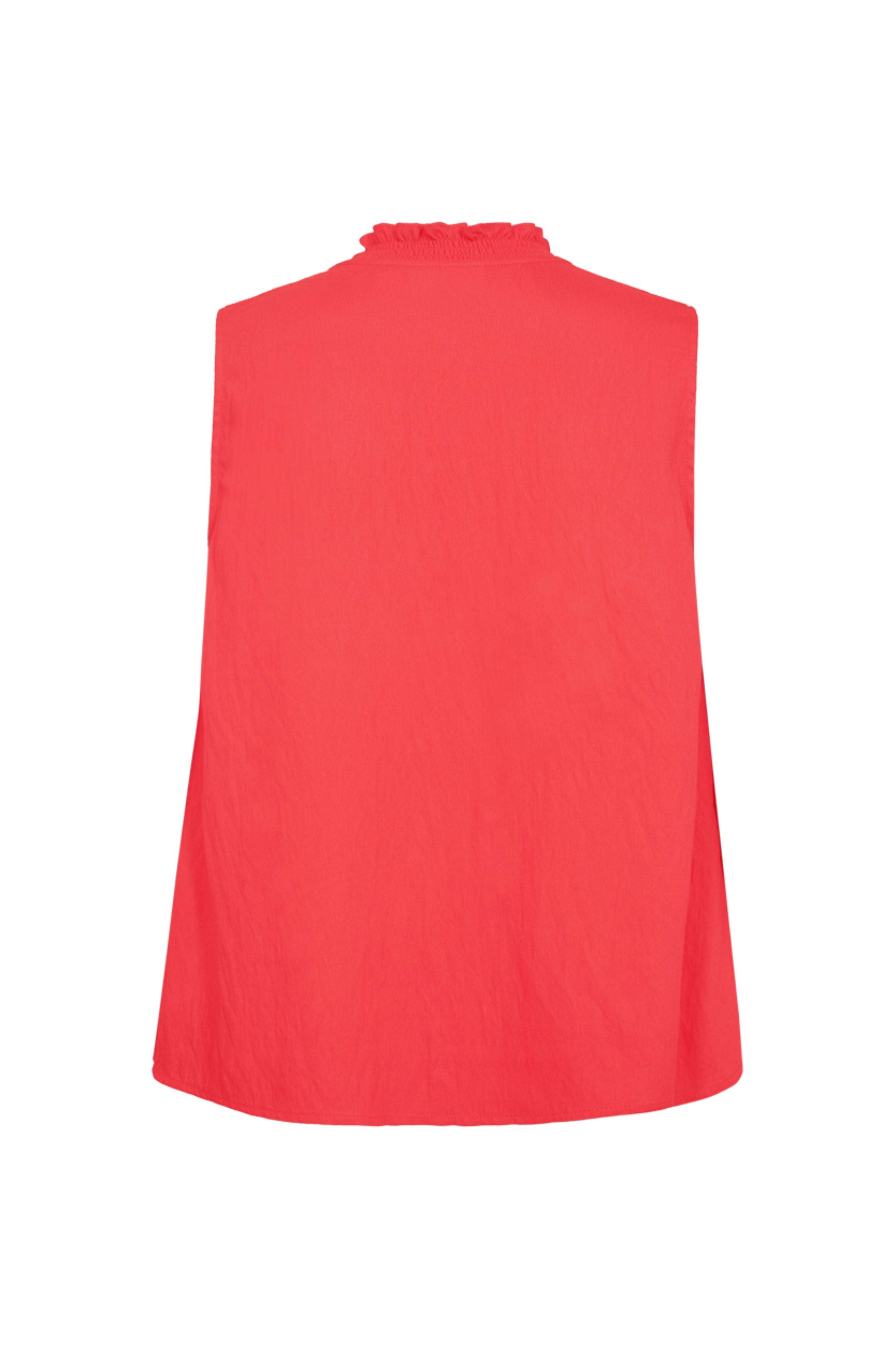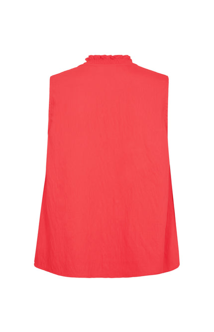 De Fqally Blouse in Bittersweet van Freequent is een luchtige, mouwloze top met elegante plooitjes en een subtiel opstaand kraagje. Perfect voor zomerse dagen of als kleurrijke layering piece. Vrouwelijk, fris en moeiteloos te combineren!