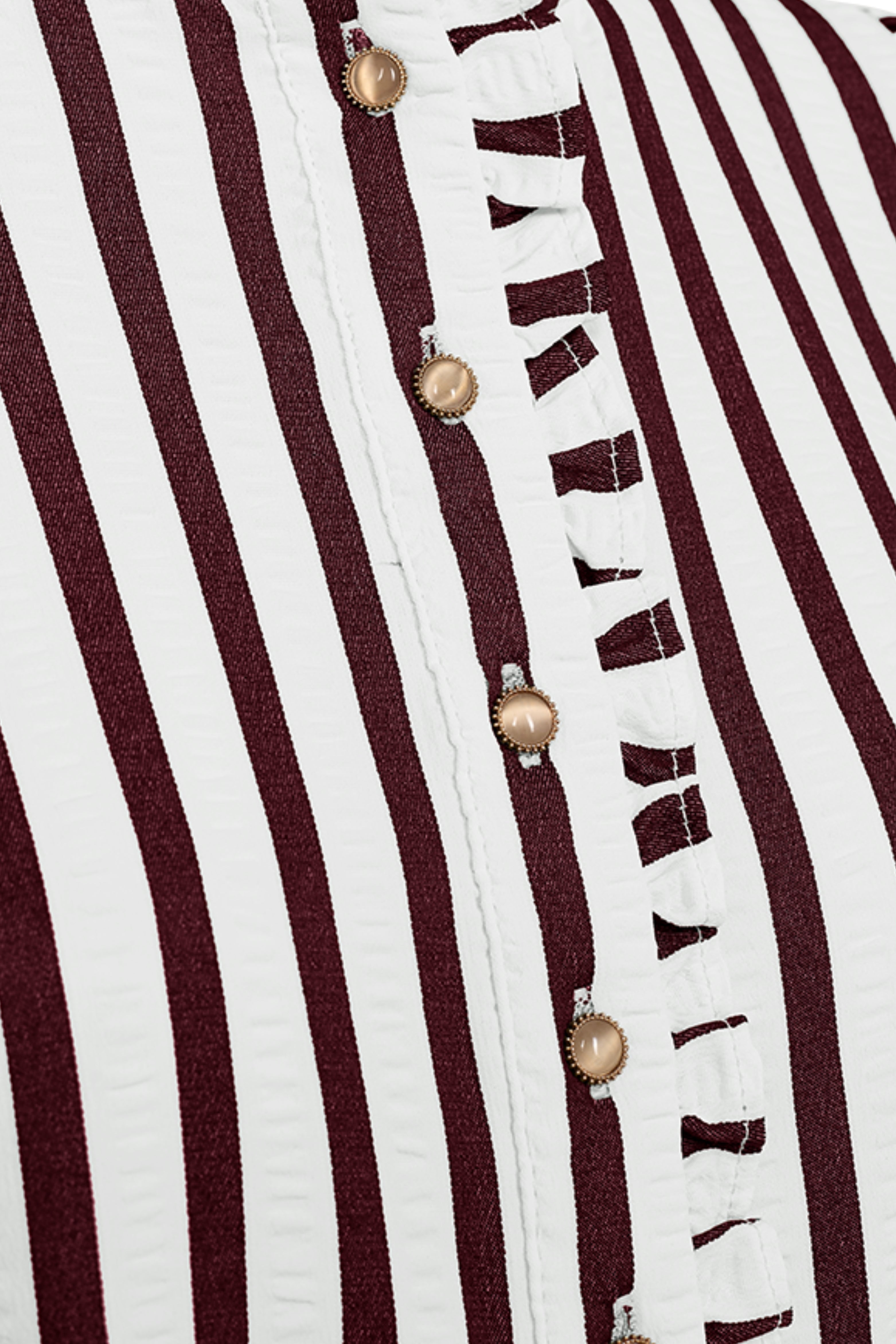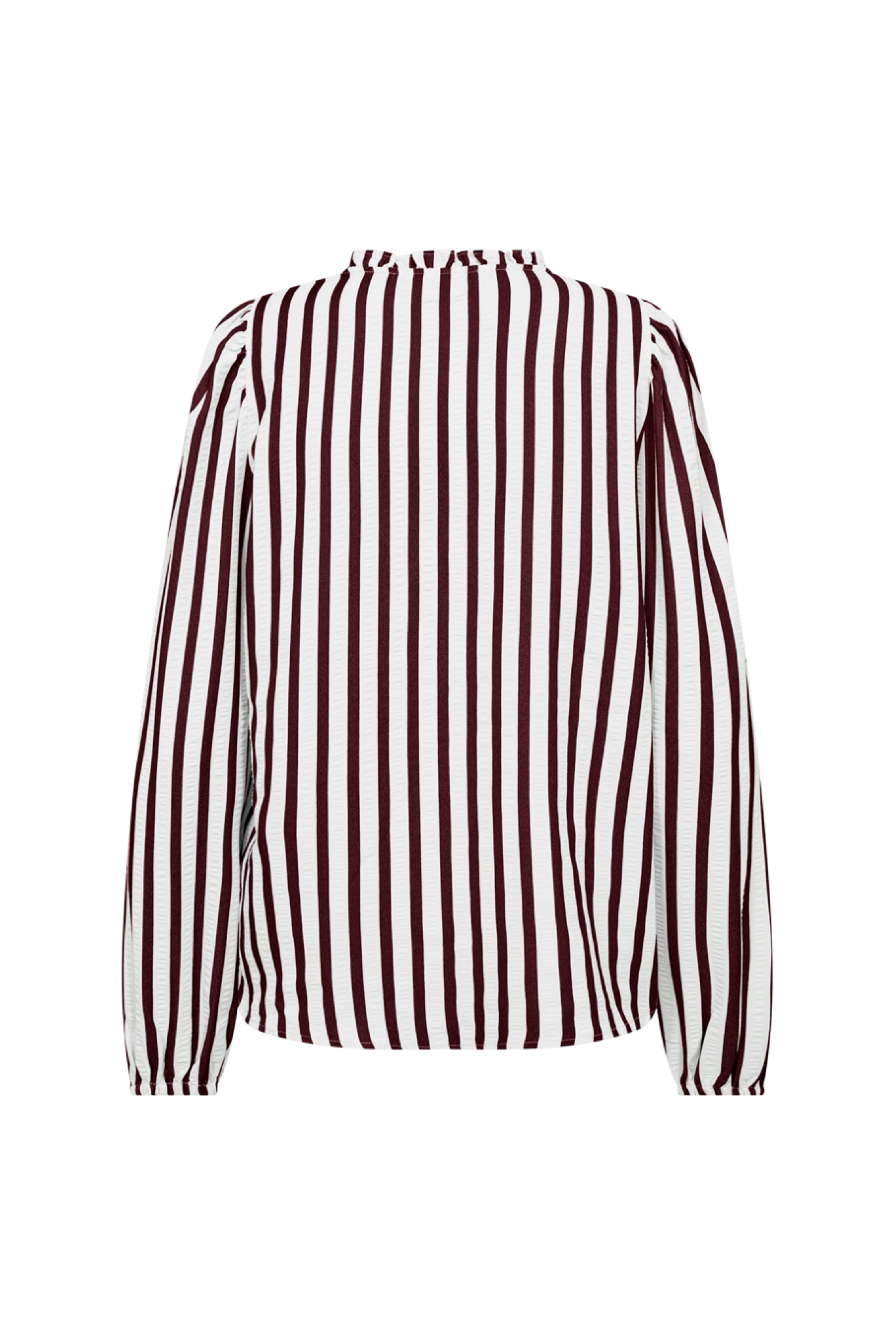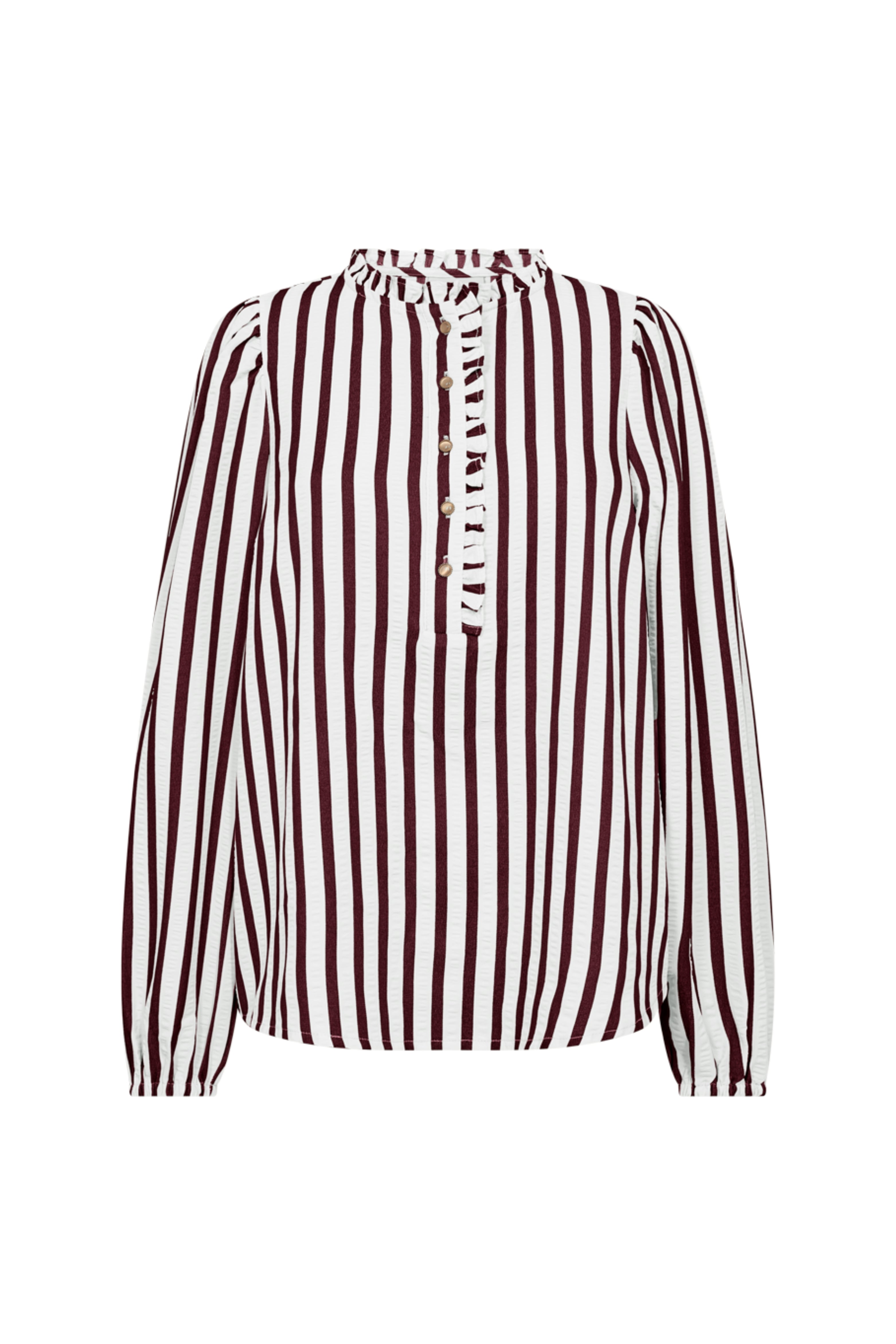De Blouse Fqnoto Star Offwhite Port Royale van Freequent is een luchtige blouse met verticale strepen. De V-hals met knoopdetail en rechte pasvorm maken dit item perfect voor een elegante, casual look.