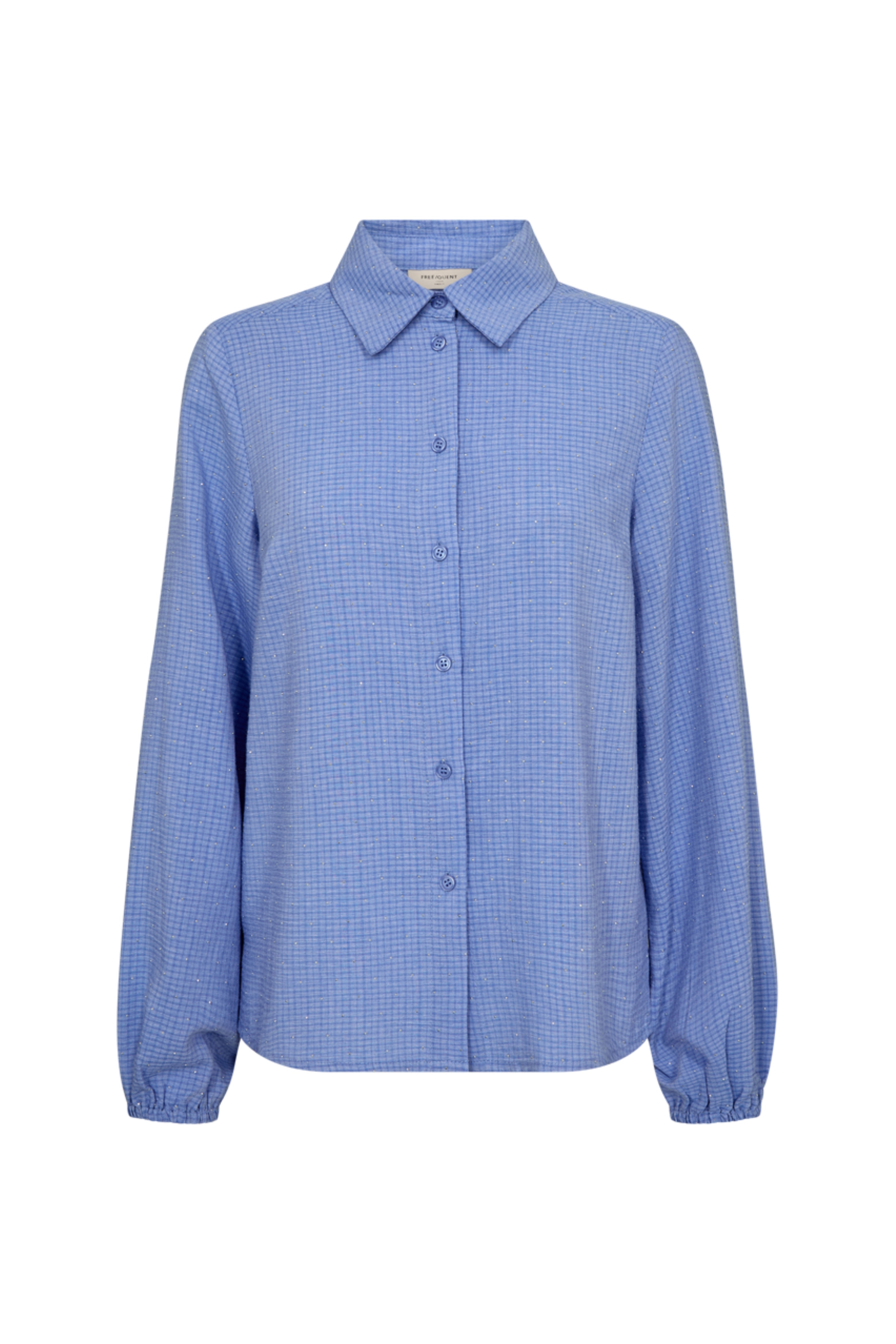 De Blouse Fqshine Wedgewood Melange van Freequent is een luchtige blouse in blauw melange met een subtiel ruitdessin. De rechte pasvorm en elastische manchetten maken dit item comfortabel รฉn stijlvol voor dagelijks gebruik.