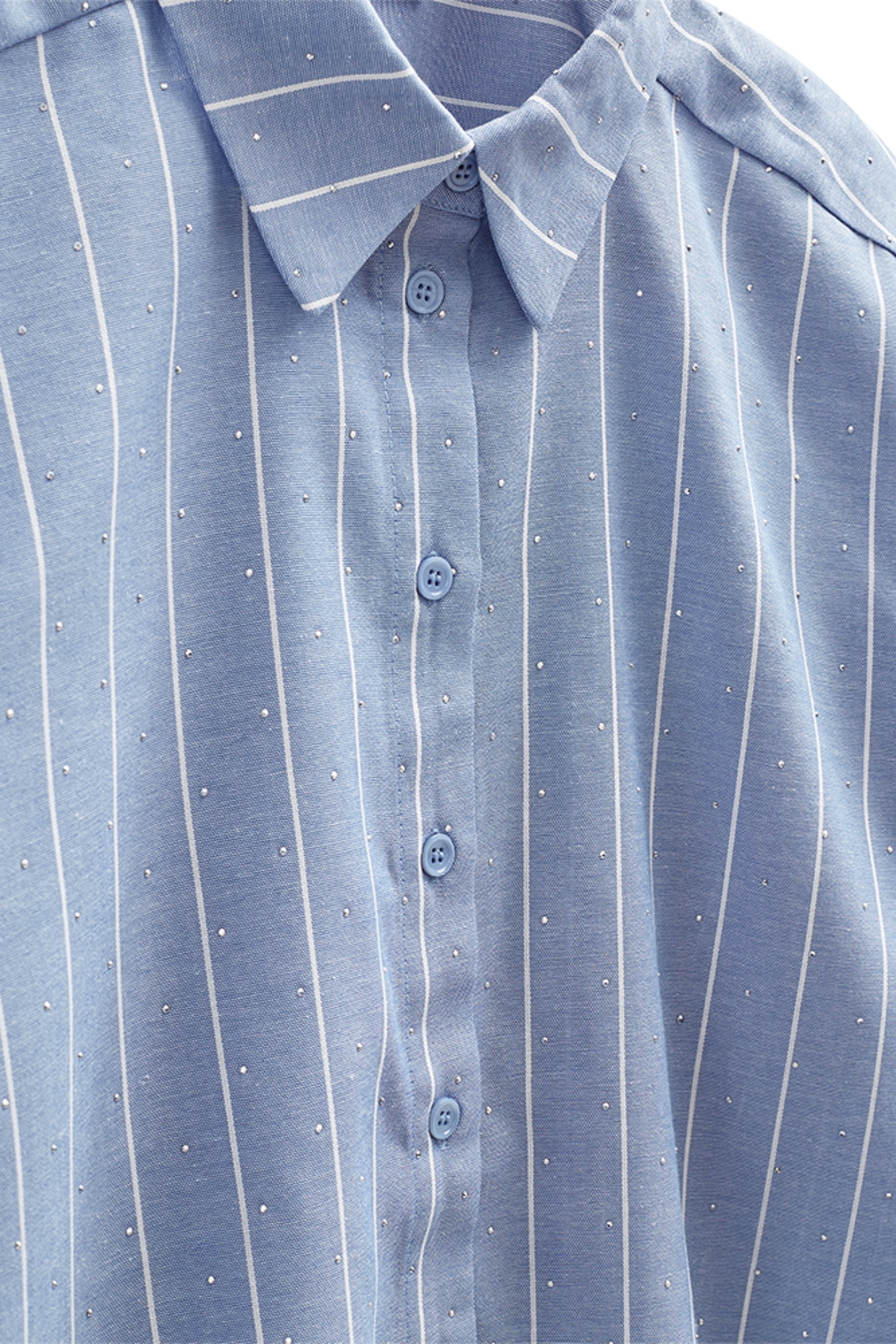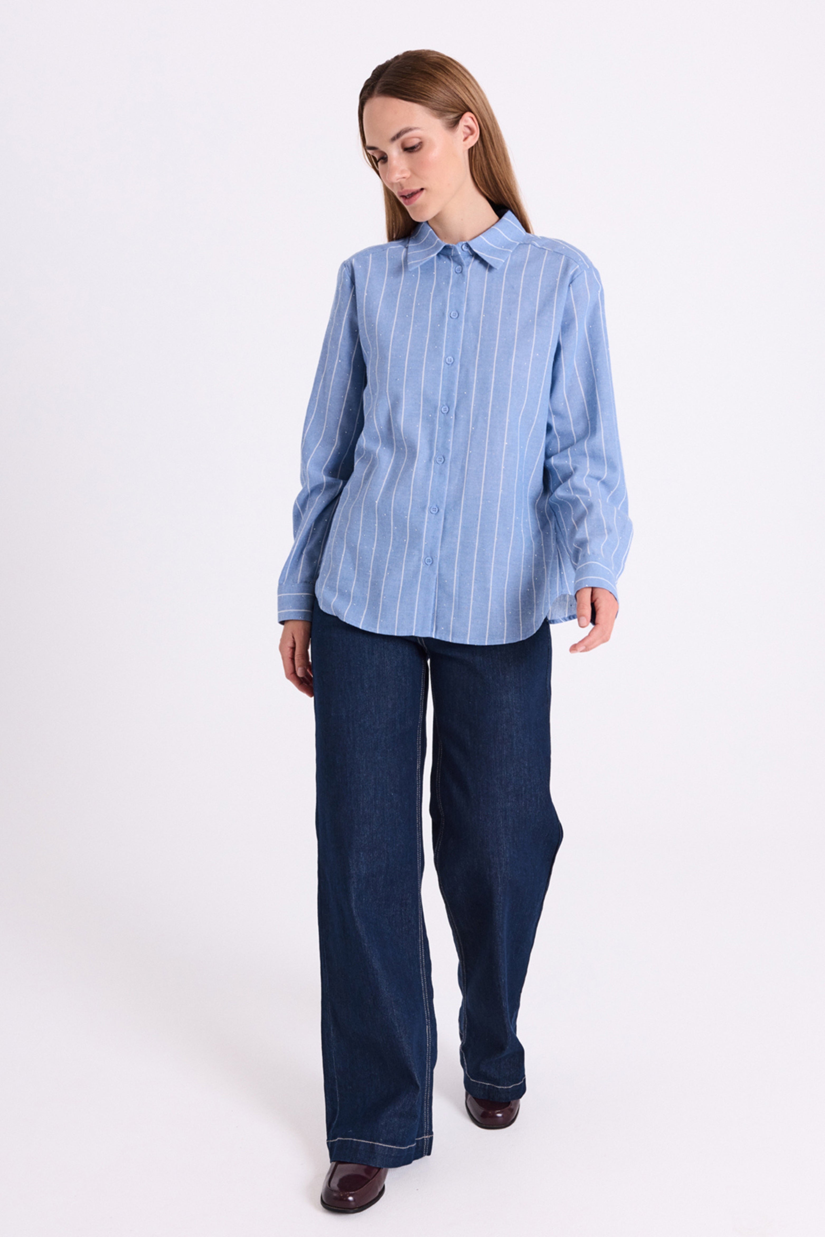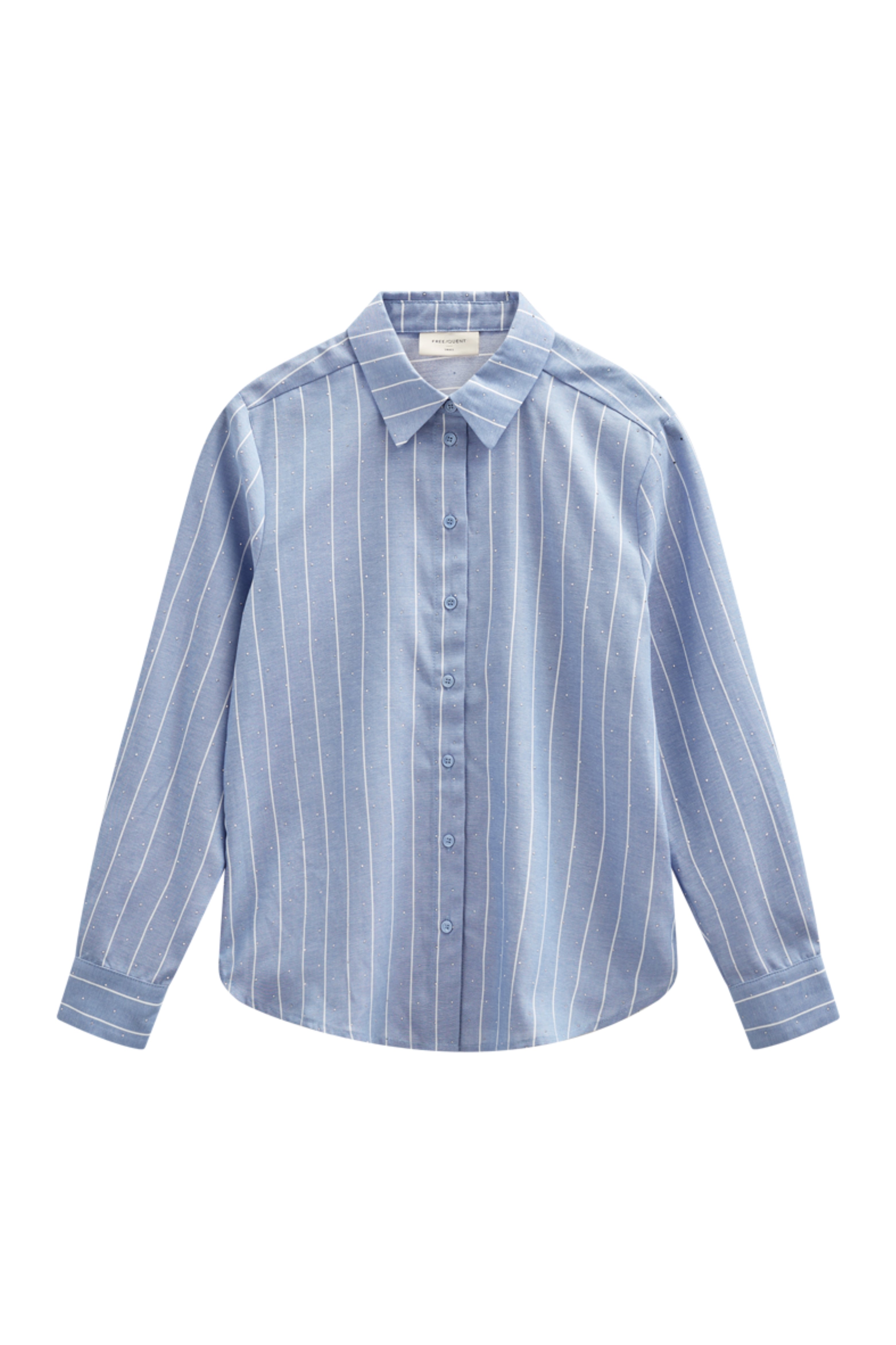 De Blouse Fqsolly Vista Blue Star Offwhite van Freequent is een vrouwelijke blouse met klassieke kraag. Luchtige katoen met krijtstreep en subtiele stipjes geeft een frisse look. Perfect voor werk en vrije tijd.
