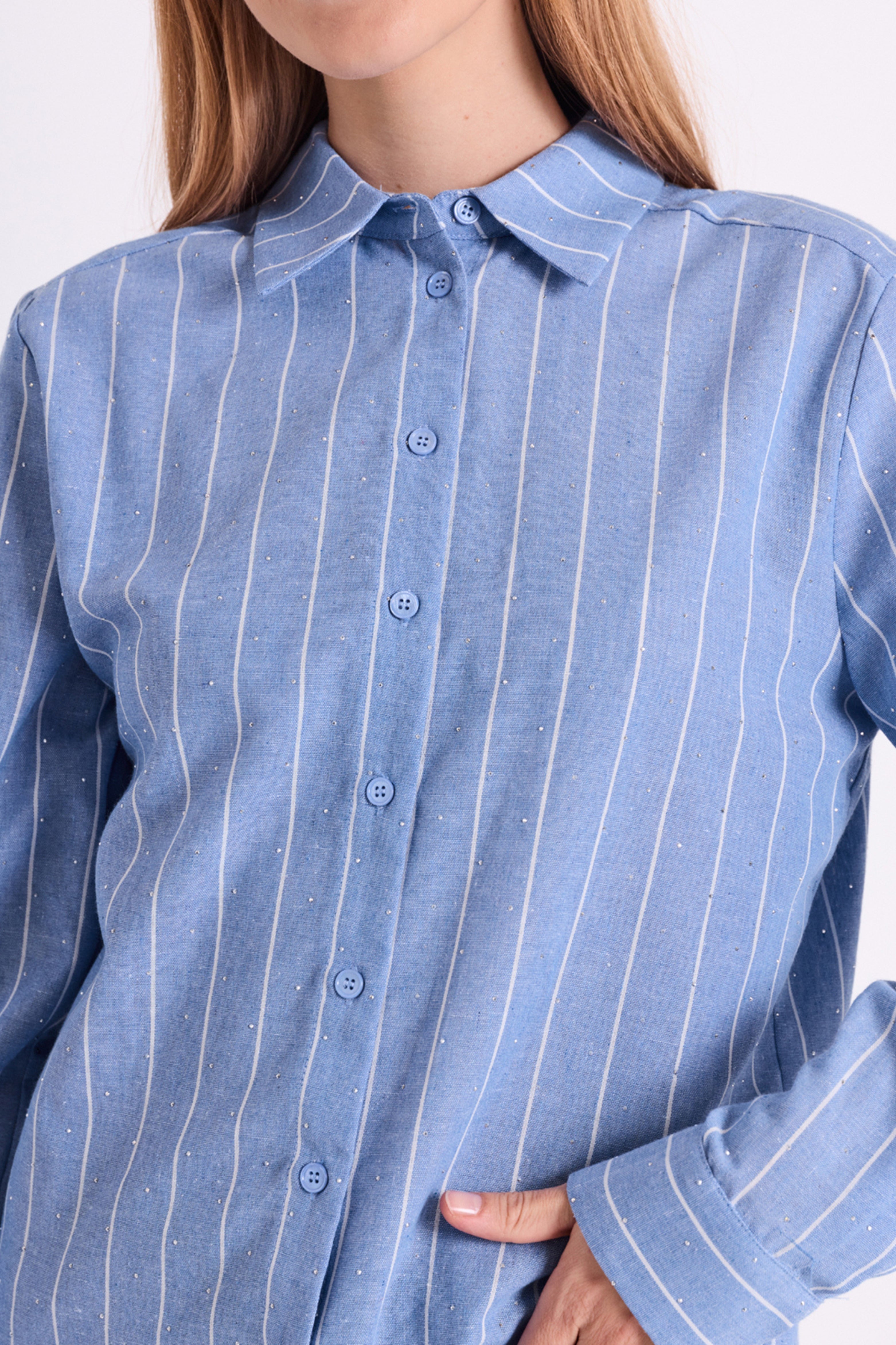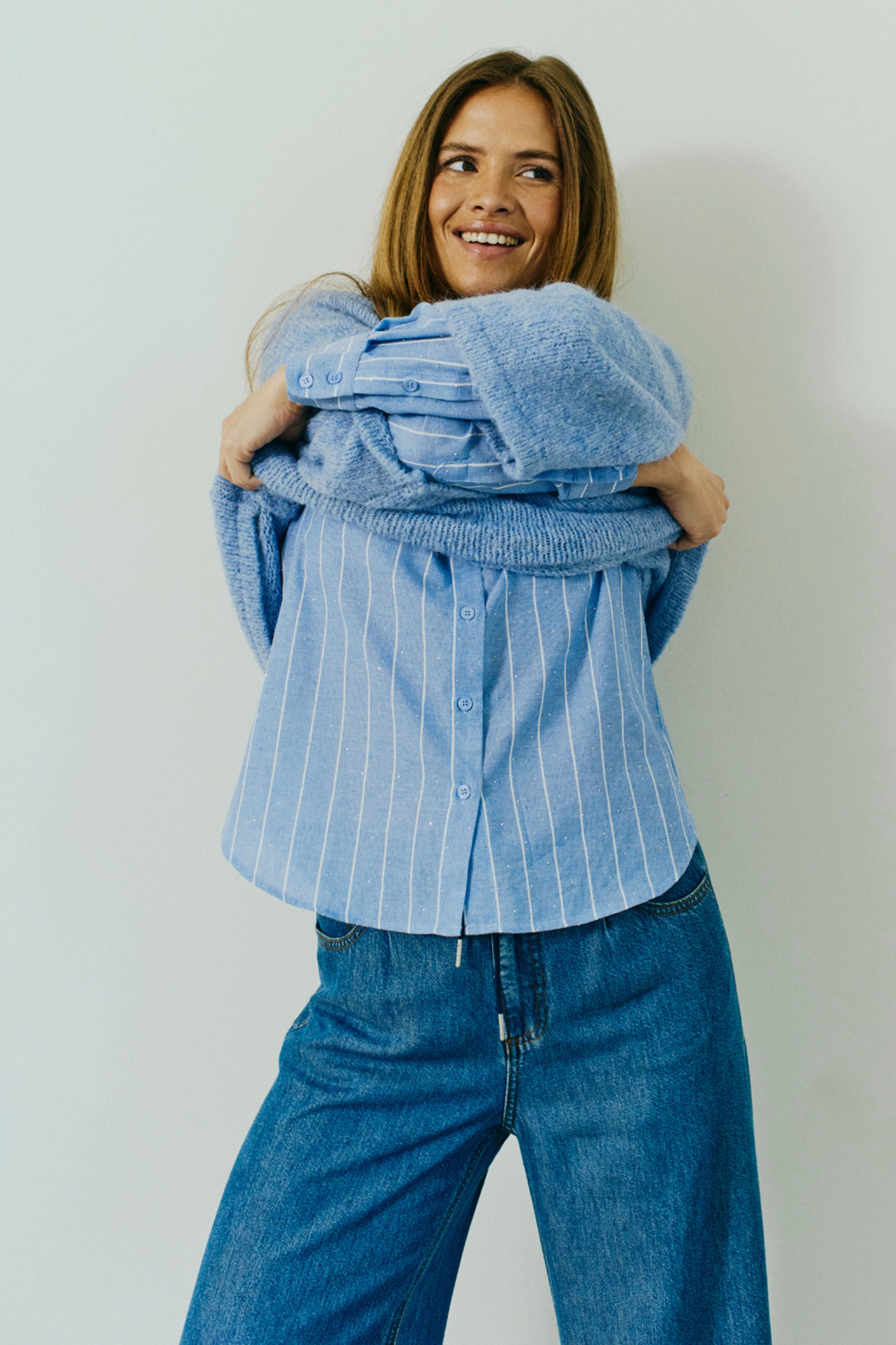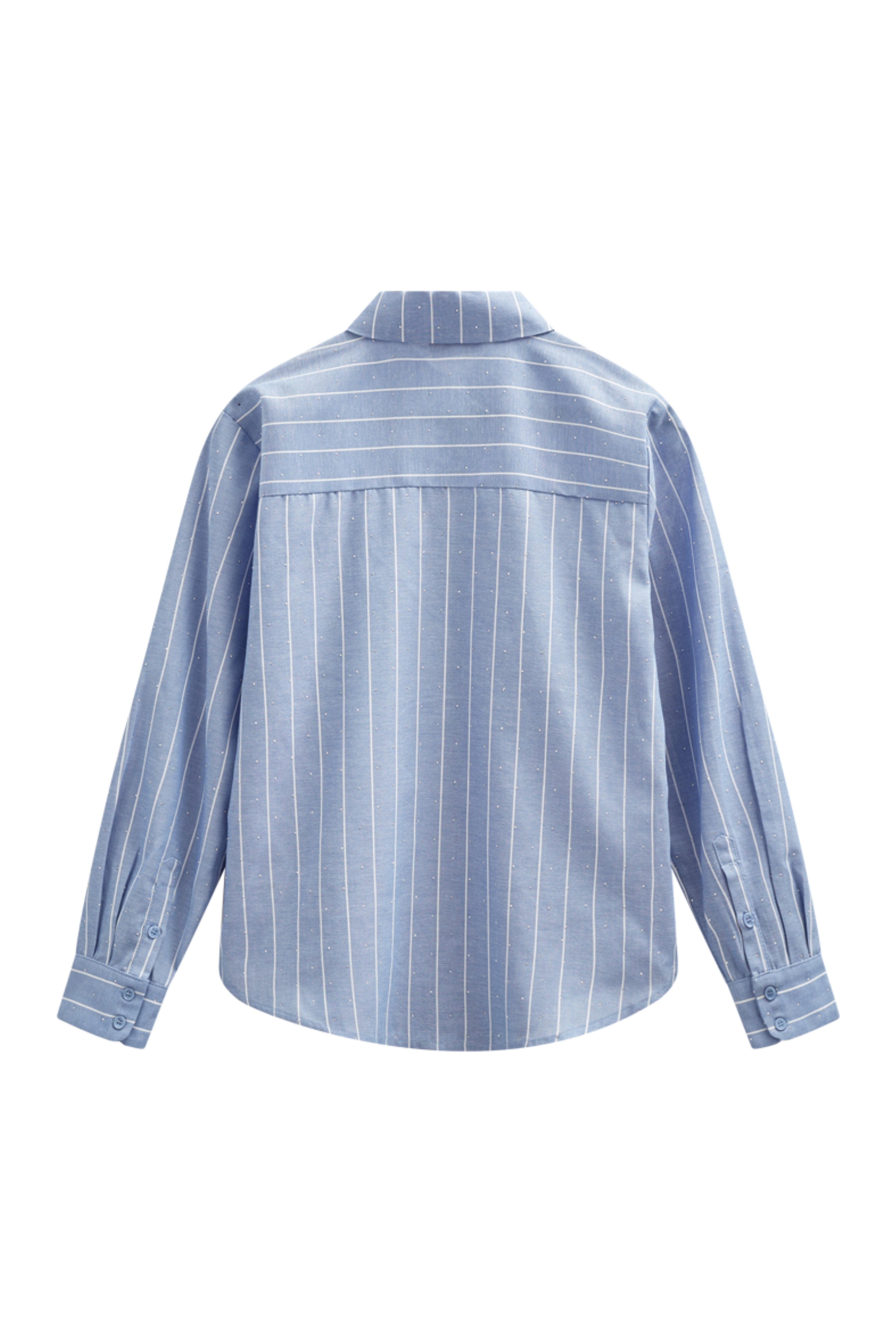 De Blouse Fqsolly Vista Blue Star Offwhite van Freequent is een vrouwelijke blouse met klassieke kraag. Luchtige katoen met krijtstreep en subtiele stipjes geeft een frisse look. Perfect voor werk en vrije tijd.