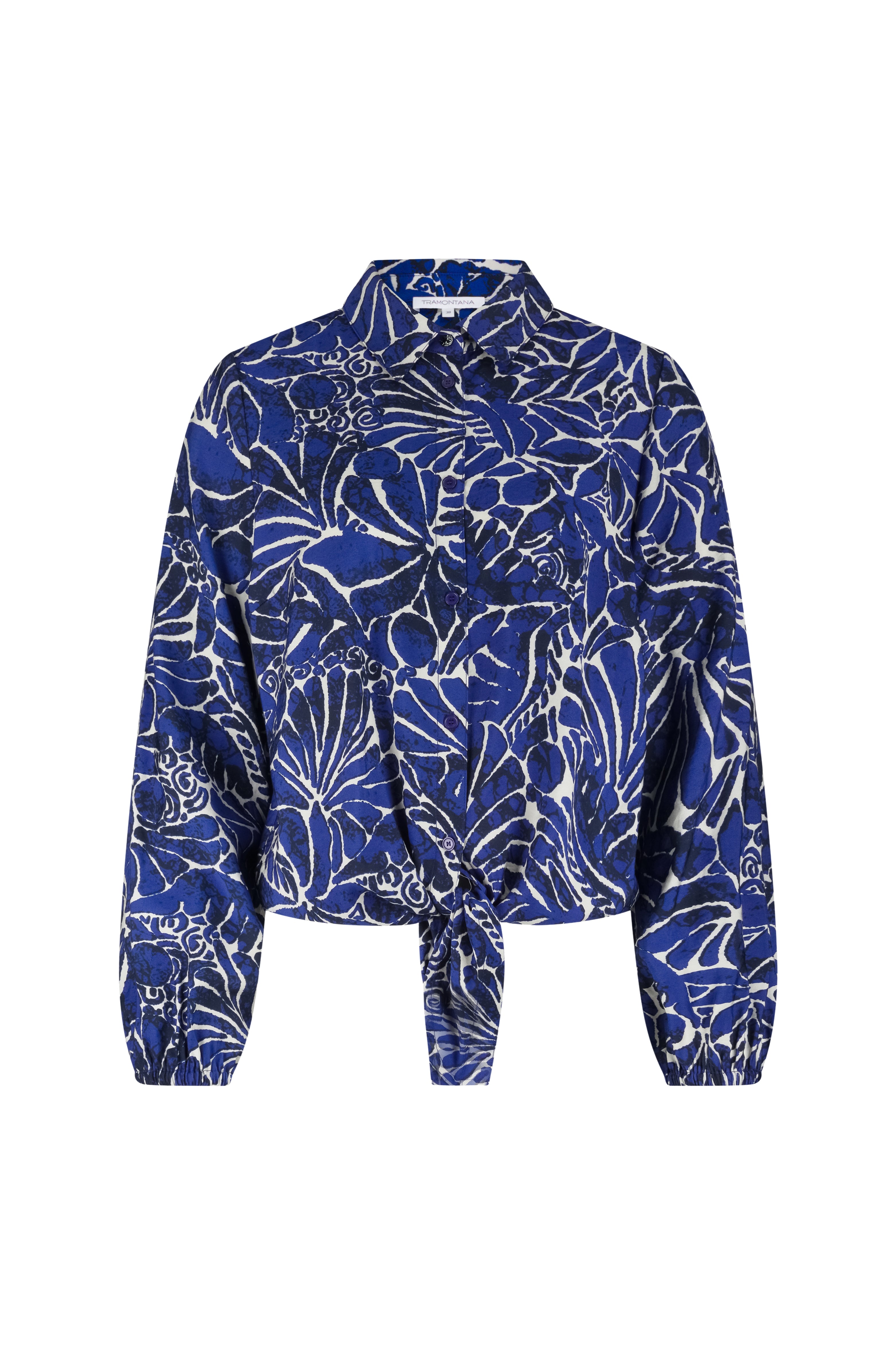De Blouse Ink Bloom Print van Tramontana is een opvallend item met een kunstzinnige bloemenprint in diepe blauwtinten. De strikdetail aan de voorzijde en de luchtige stof geven deze blouse een vrouwelijke, moderne uitstraling voor het najaar.