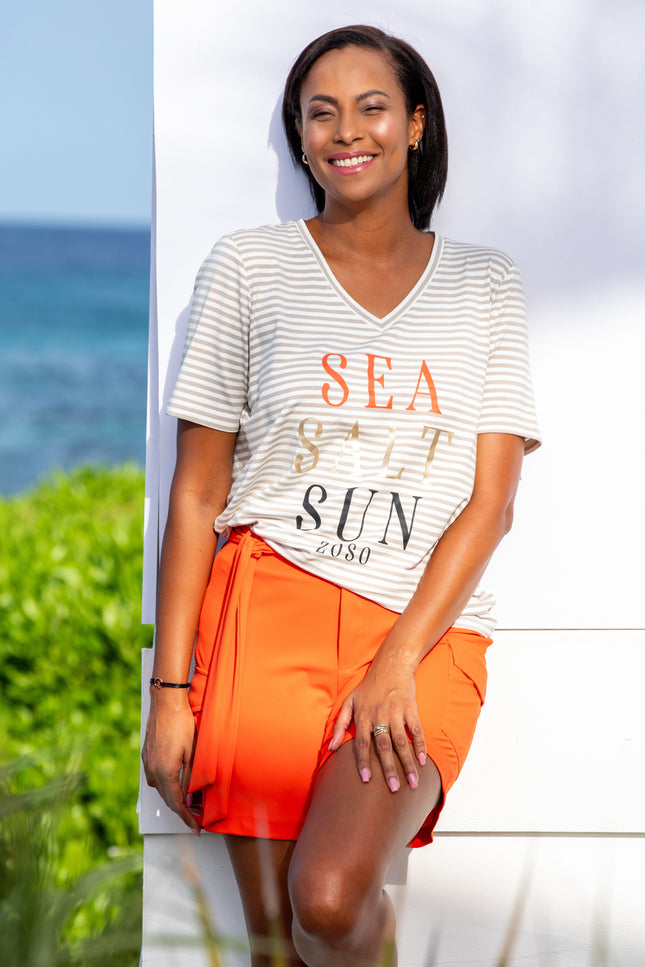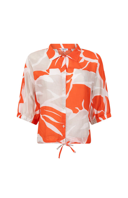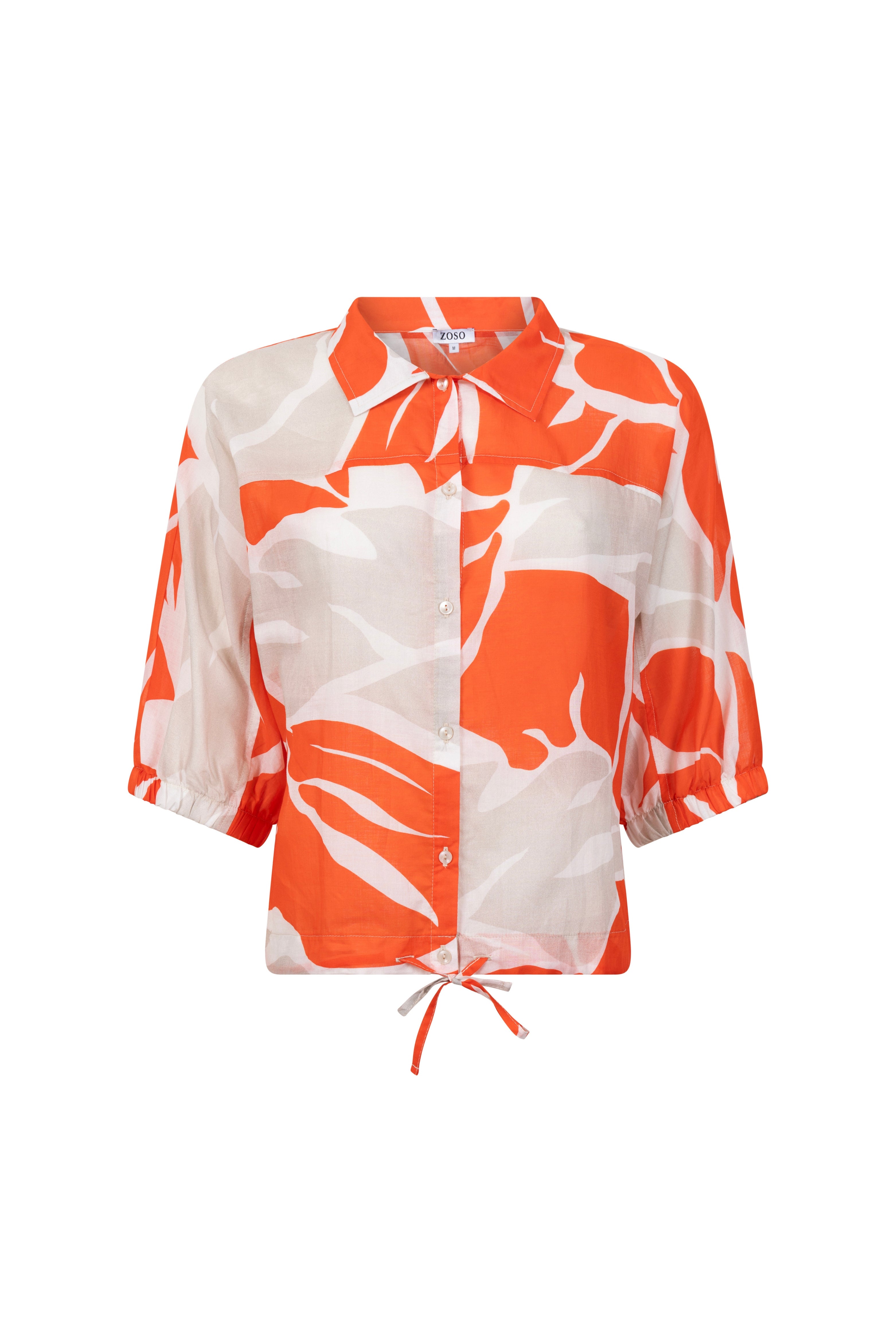 Blouse Isabel Orange Sand van Zoso is een luchtige blouse met een beige-oranjekleurige print, knoopsluiting en een verstelbaar strikkoord onderaan. Een zomerse blikvanger voor een nonchalante, vrouwelijke look.