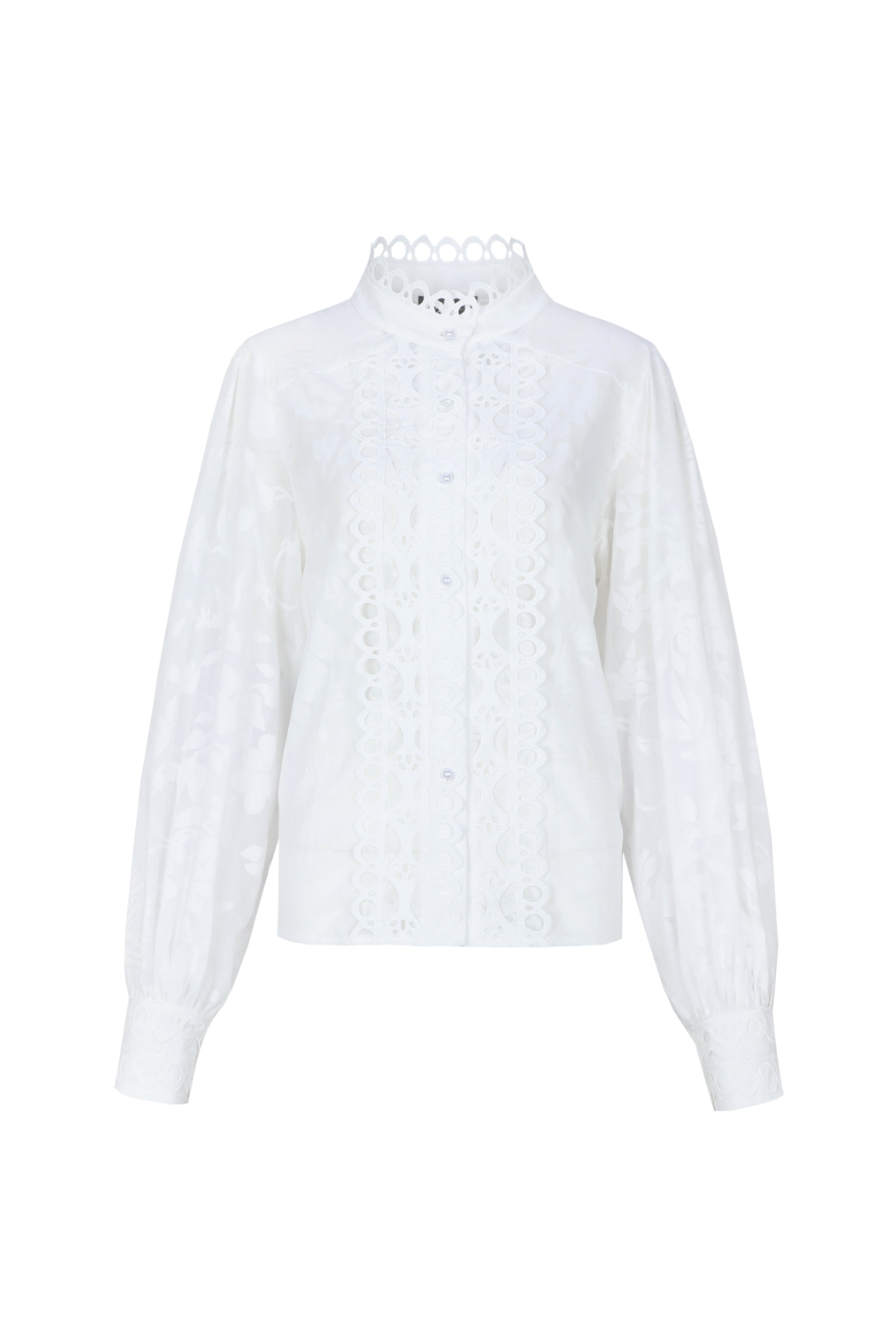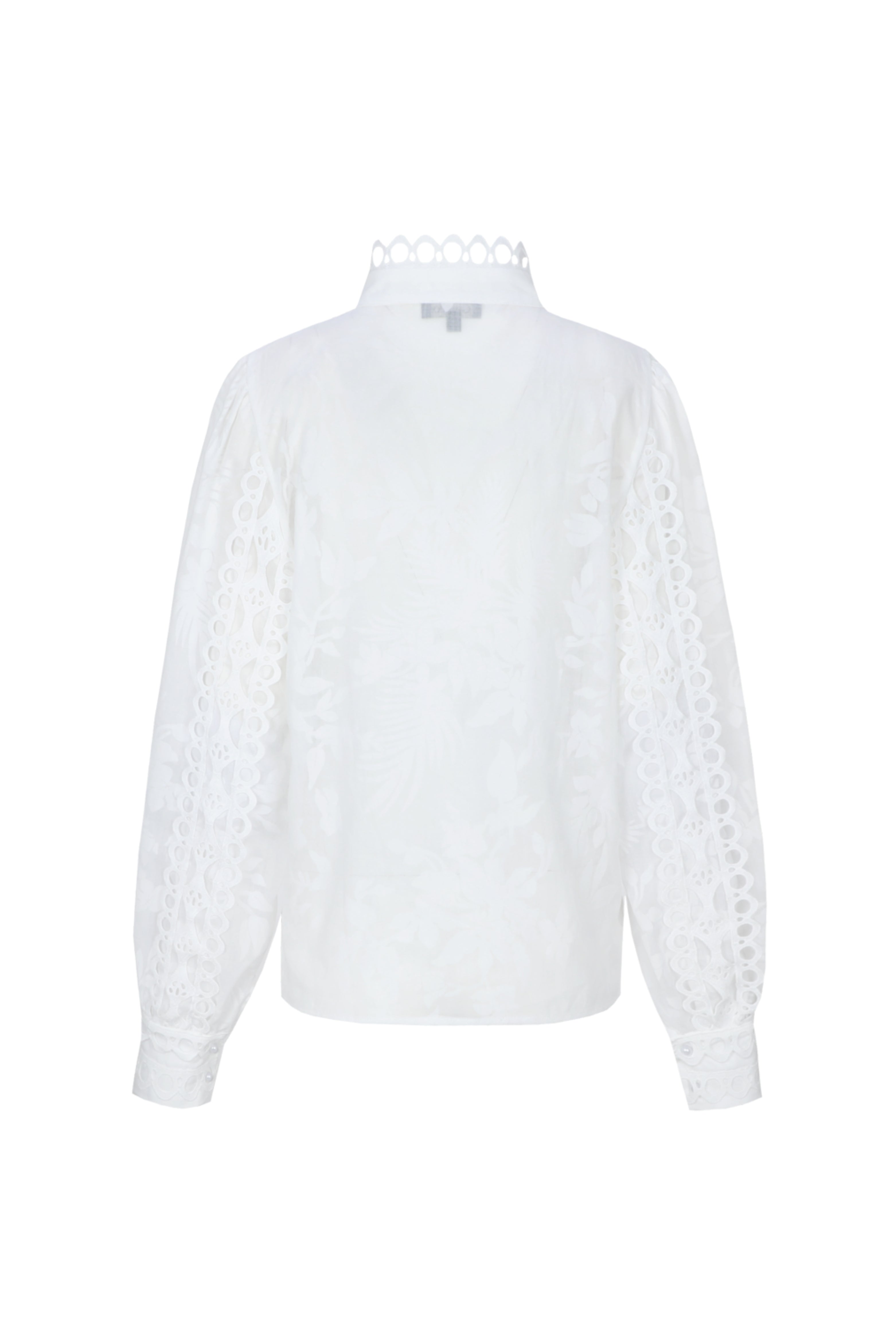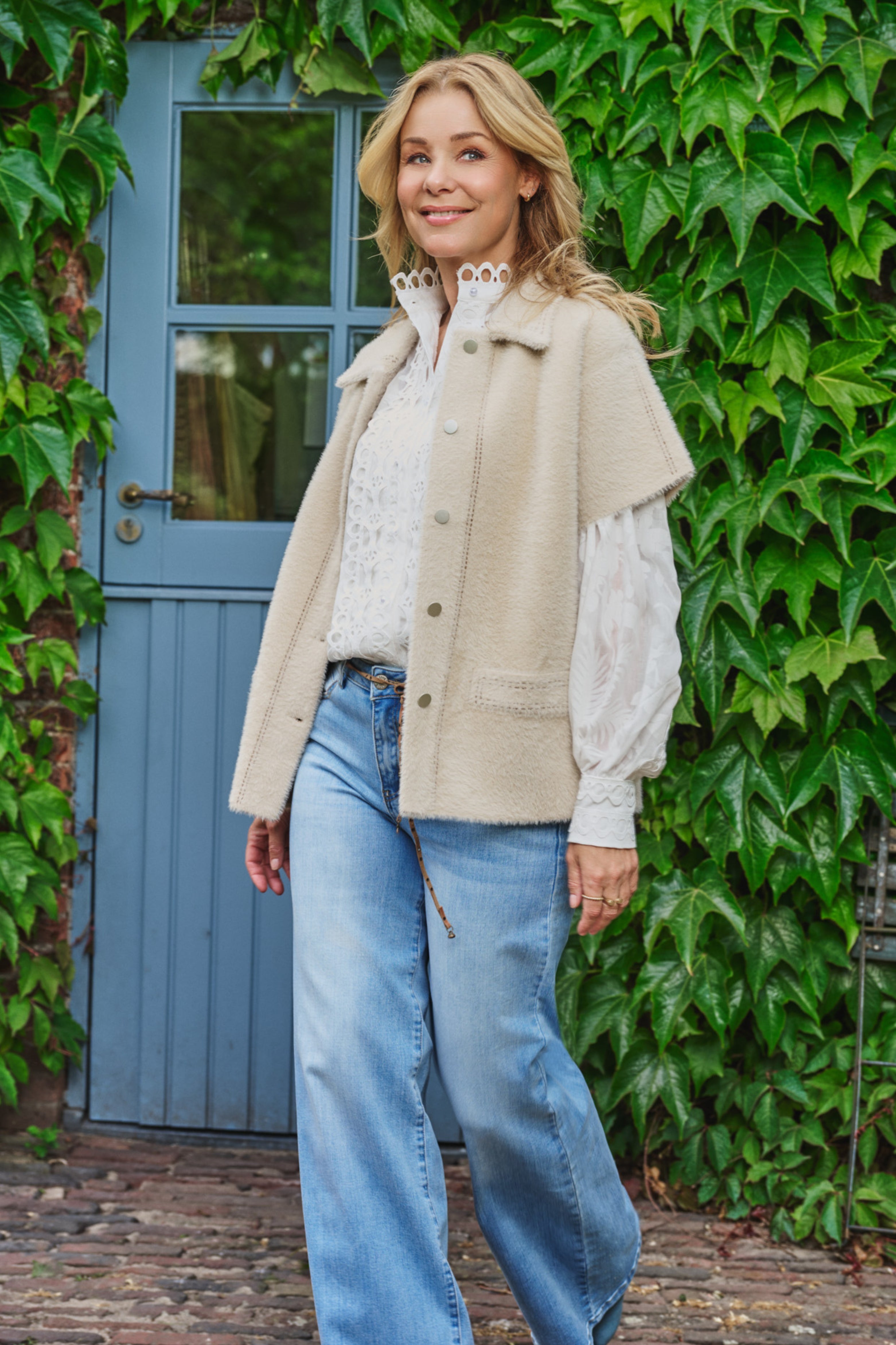 De Blouse Journey Offwhite van G-Maxx is een elegante blouse met opstaande kraag. Broderie-details en licht transparante stof zorgen voor een vrouwelijke look. Perfect voor kantoor of diner.