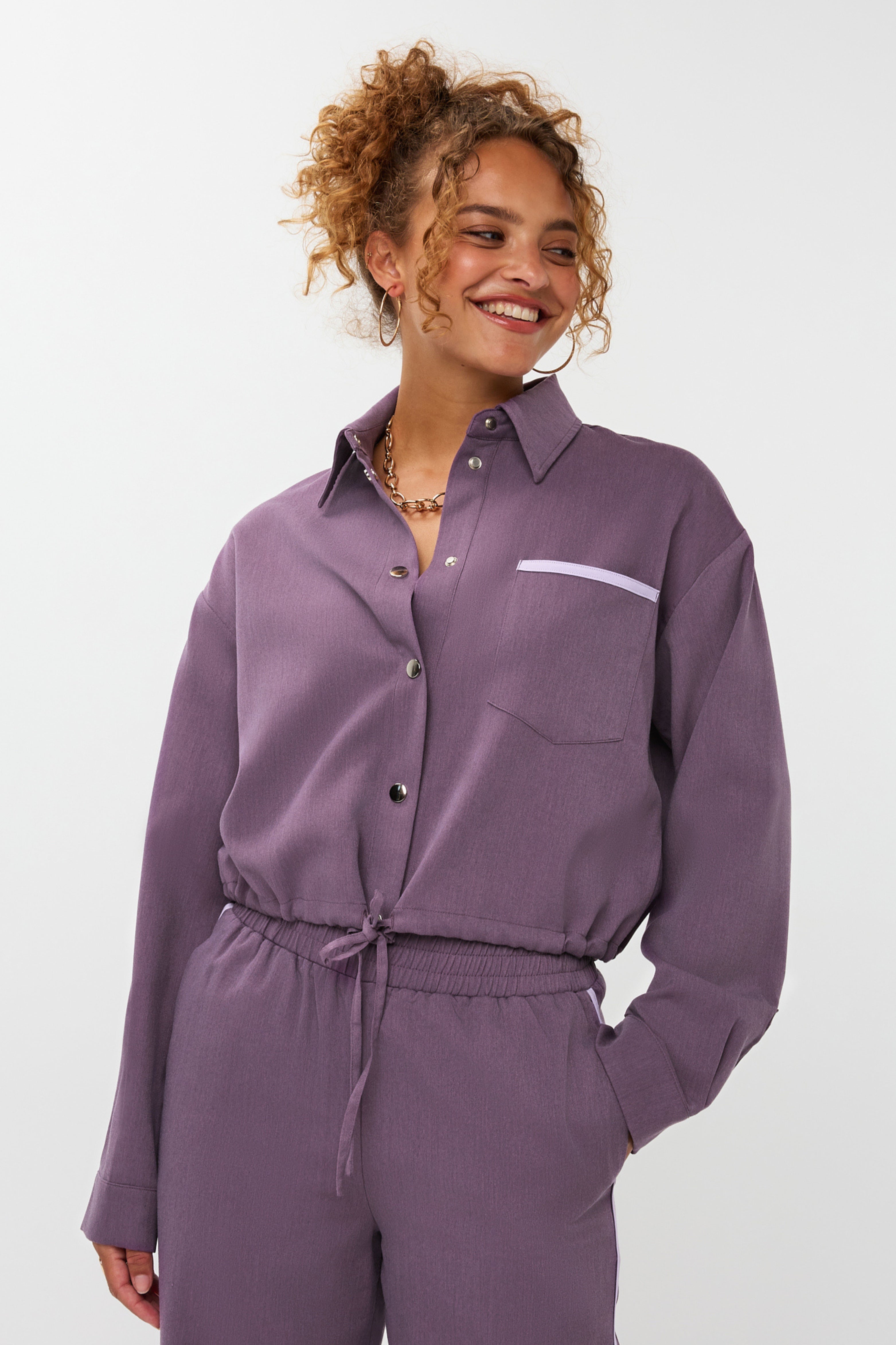 De Blouse Kess Purple van Ydence is een eigentijdse blouse in een rechte fit, uitgevoerd in een zachte paarstint. De klassieke kraag en opvallende knoopsluiting geven een tijdloze touch, terwijl het subtiel contrasterende borstzakdetail zorgt voor een speels accent.