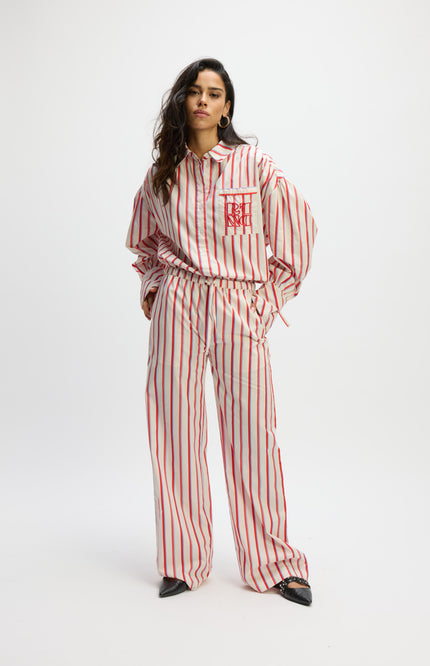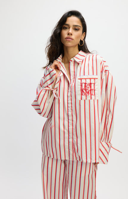 De Lara Blouse Red van Refined Department is een stijlvolle en speelse toevoeging aan je garderobe. De verticale rode en witte strepen geven deze blouse een klassieke en tijdloze uitstraling, terwijl de unieke strikdetails aan de mouwen zorgen voor een moderne en vrouwelijke twist.