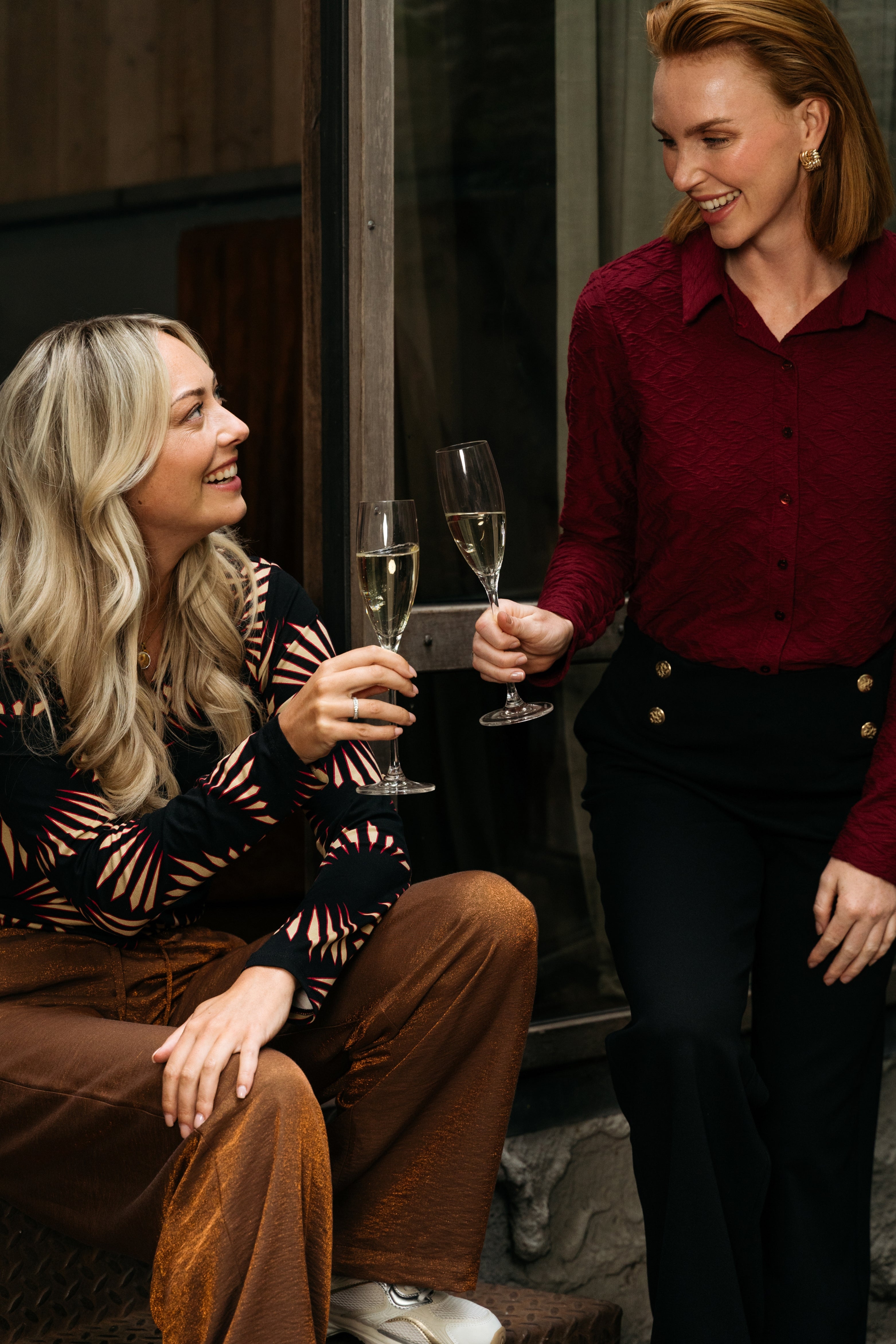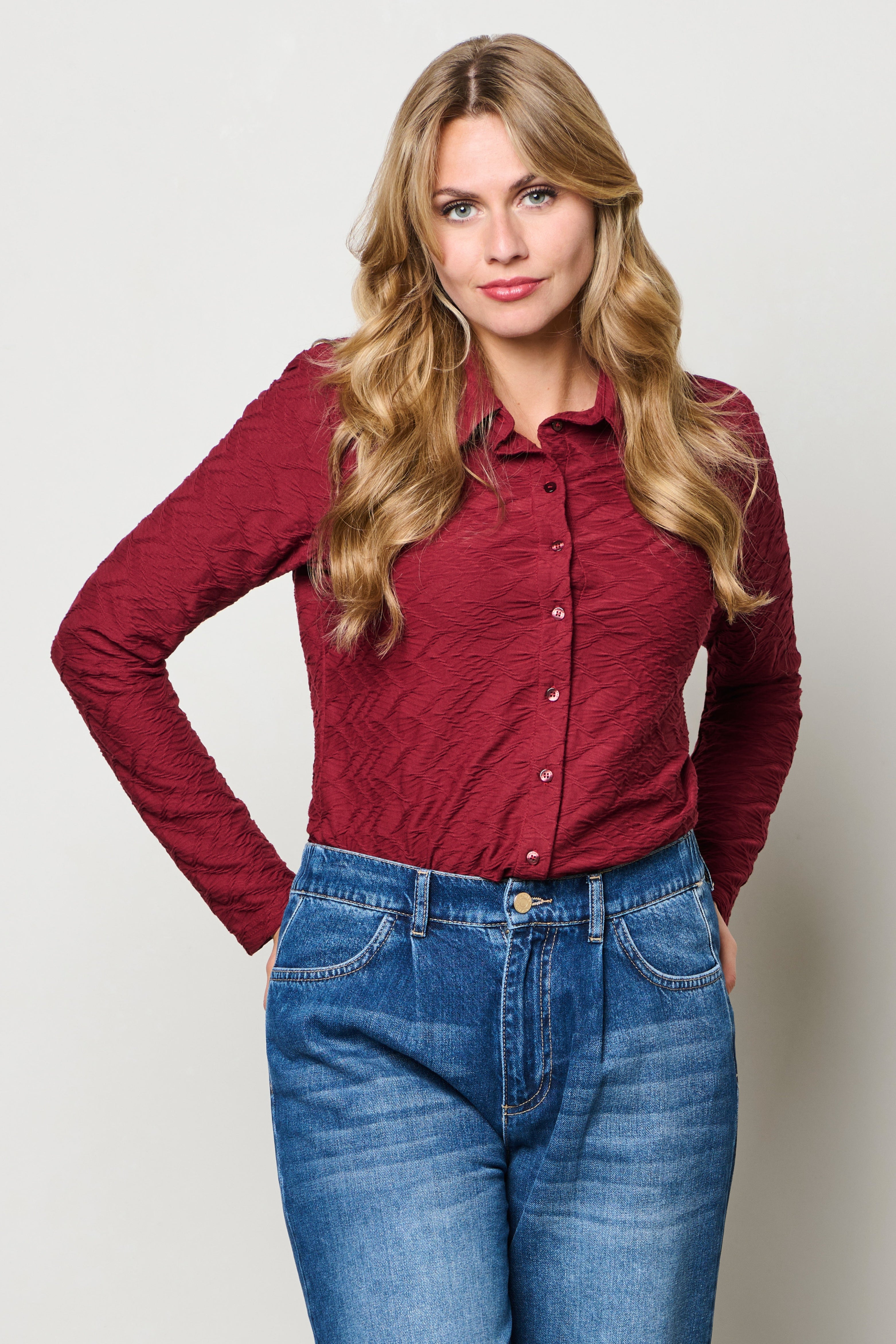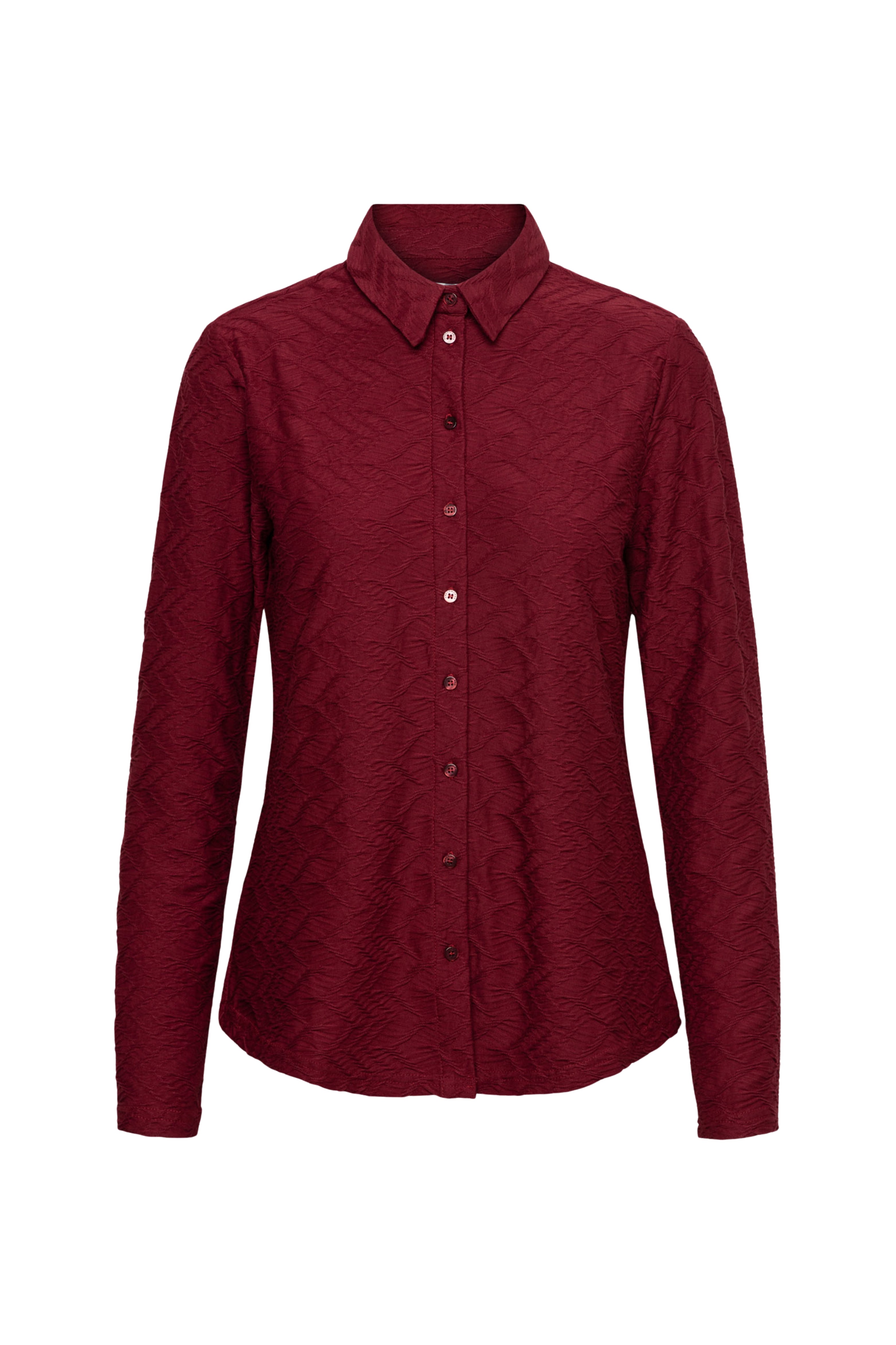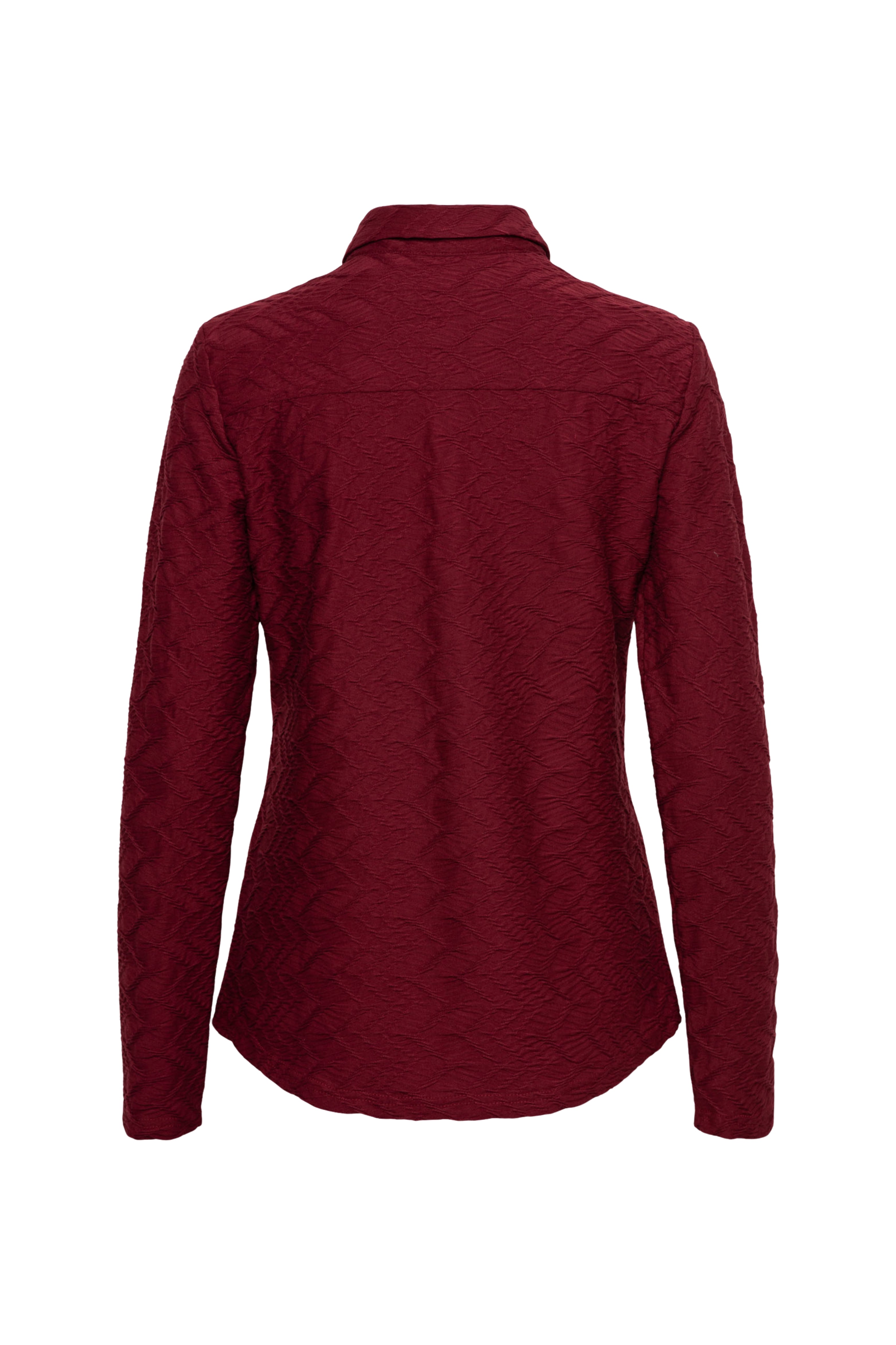 De Blouse Lotte Jacquard Wine Red van &Co Woman combineert elegantie en comfort. De jacquard geweven stof geeft een luxe structuur, terwijl de diepe wijnrode kleur een stijlvolle, vrouwelijke look creëert.