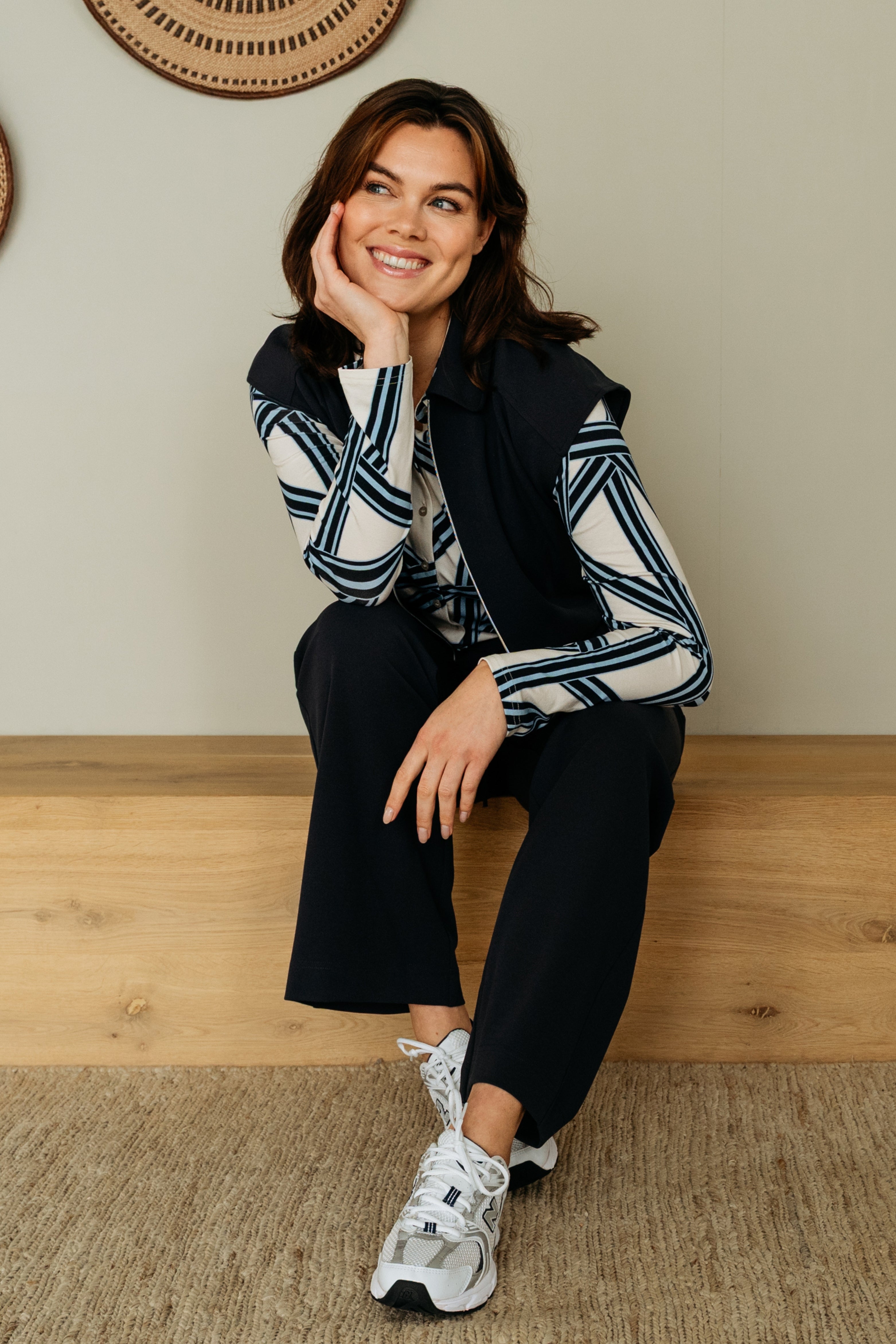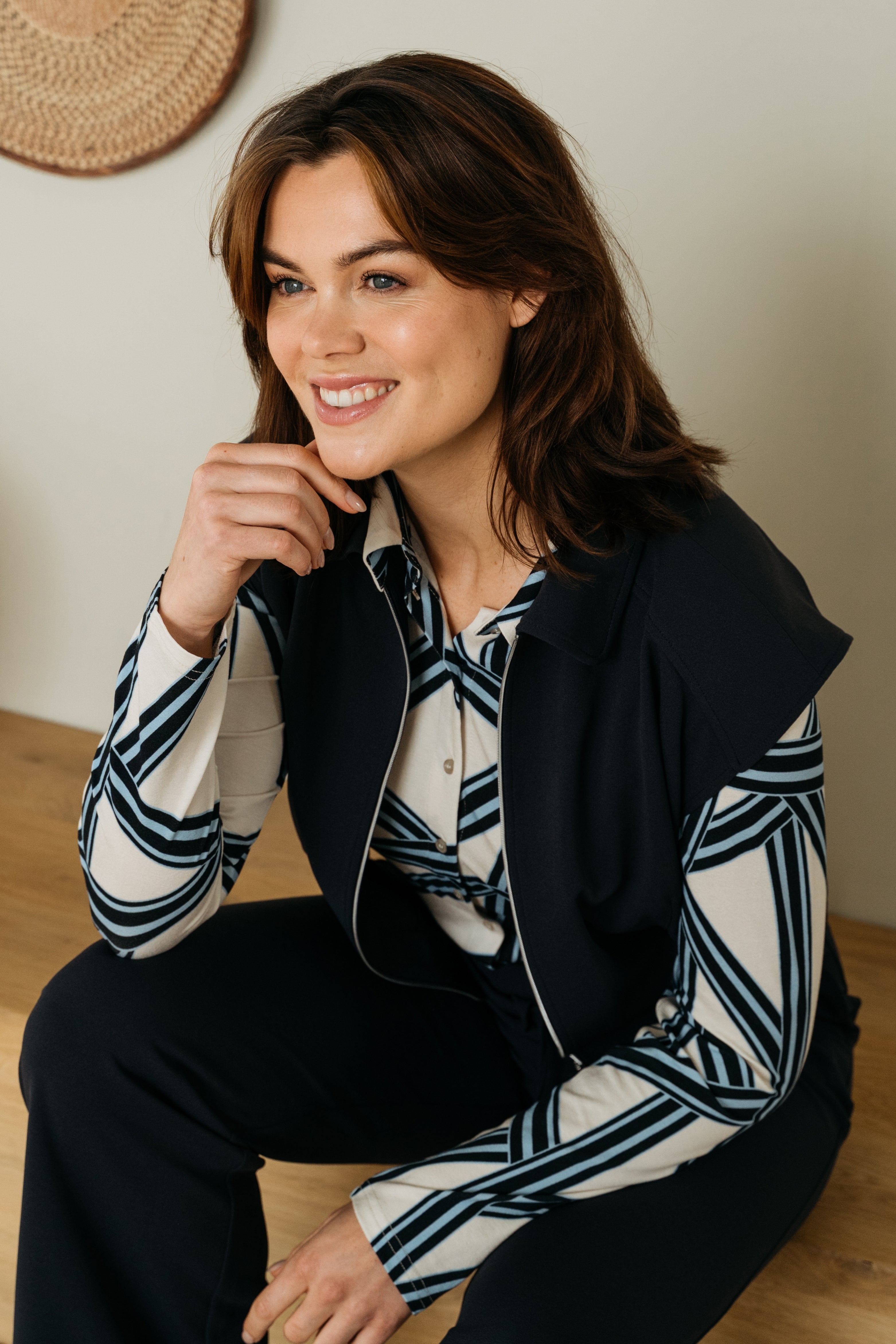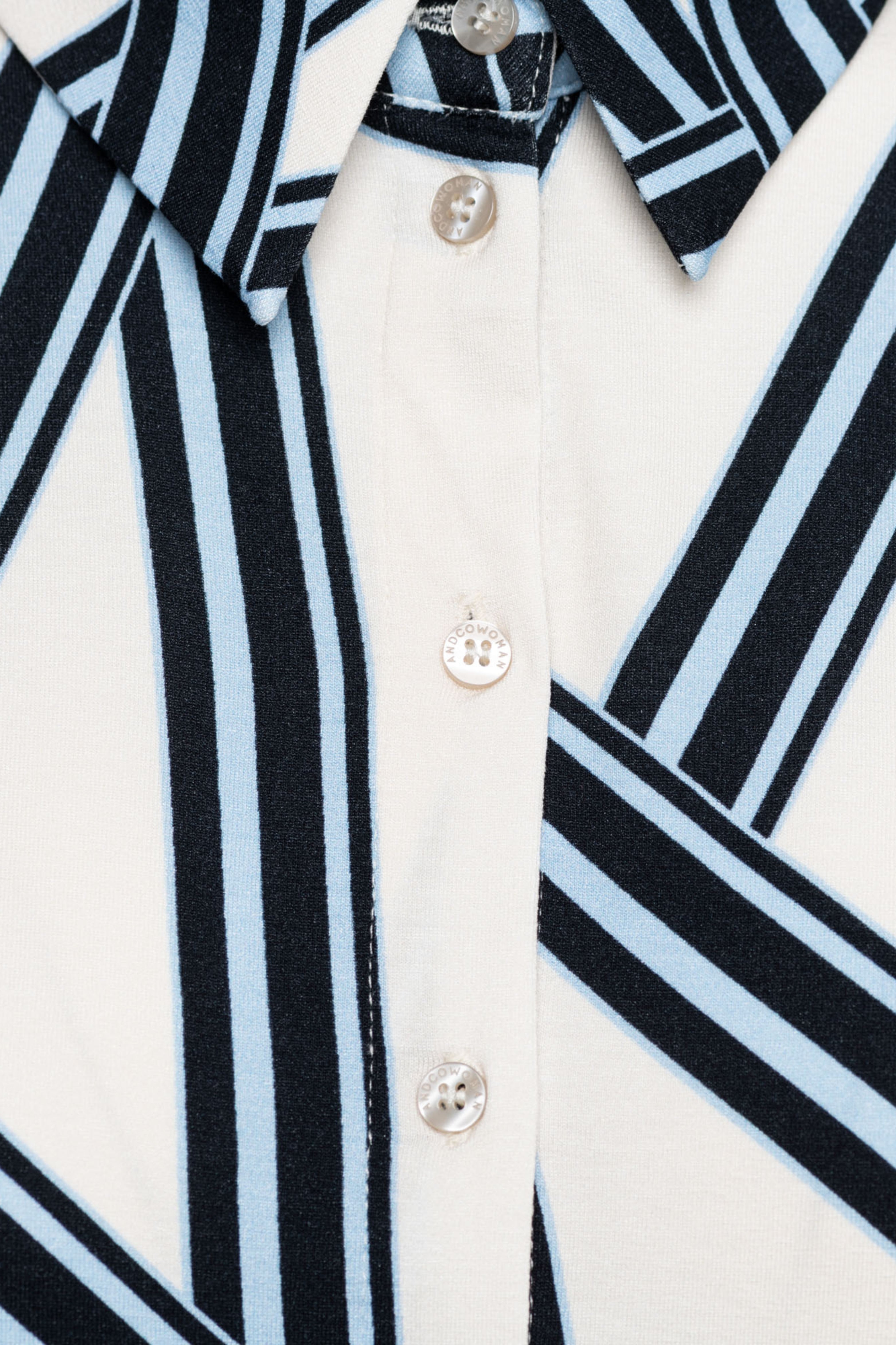 De Blouse Lotte Line van &Co Woman is een stijlvolle blouse met een grafisch lijnenspel. De contrasterende print geeft dit item een moderne uitstraling, terwijl de klassieke snit zorgt voor tijdloze elegantie.