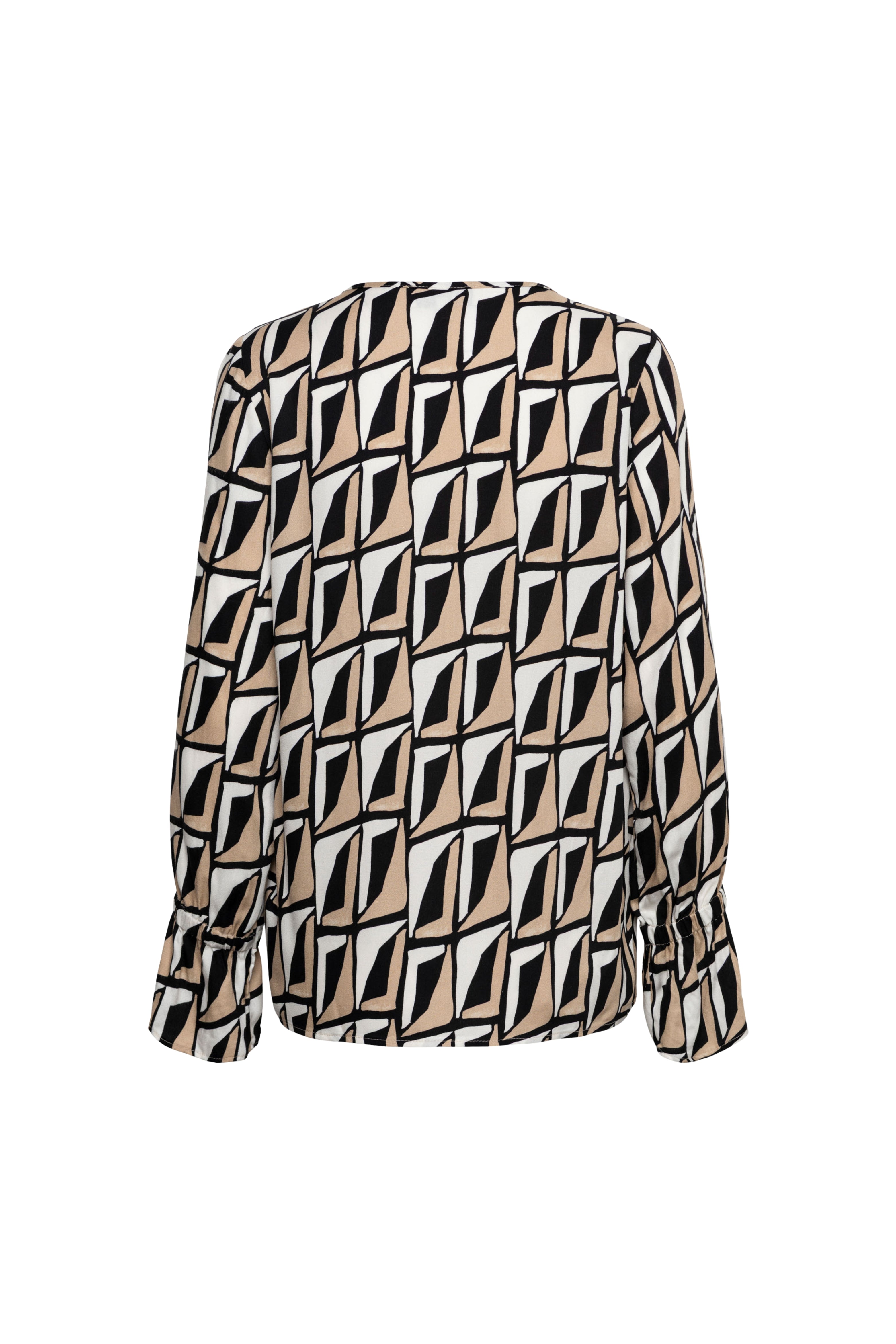 De Blouse Melina Sunset Multi van &Co Woman is een elegante blouse met een grafisch all-over dessin in warme tinten. De sierlijke v-hals met strikdetail en de soepele stof geven dit item een vrouwelijke, verfijnde najaarsuitstraling.