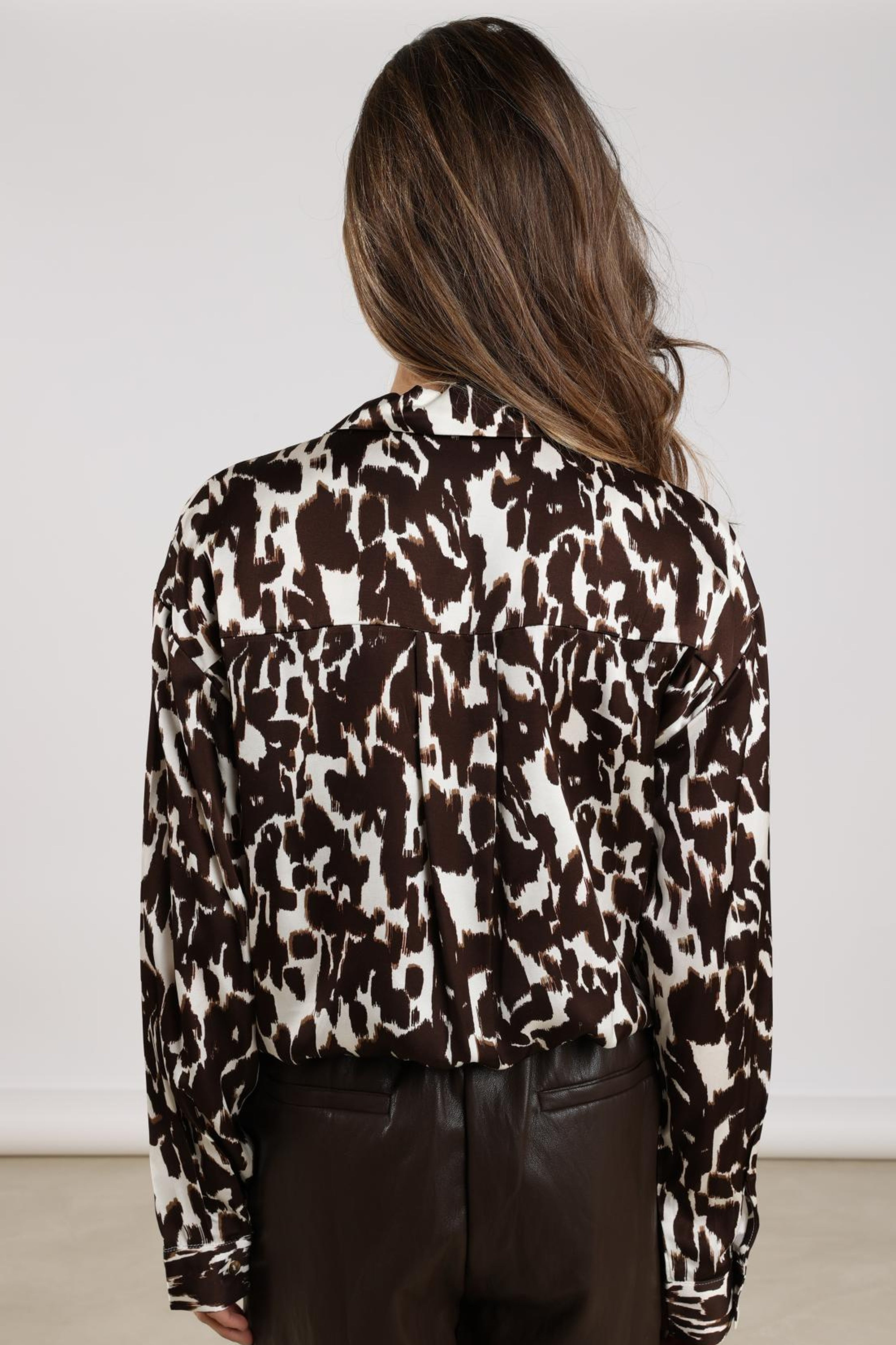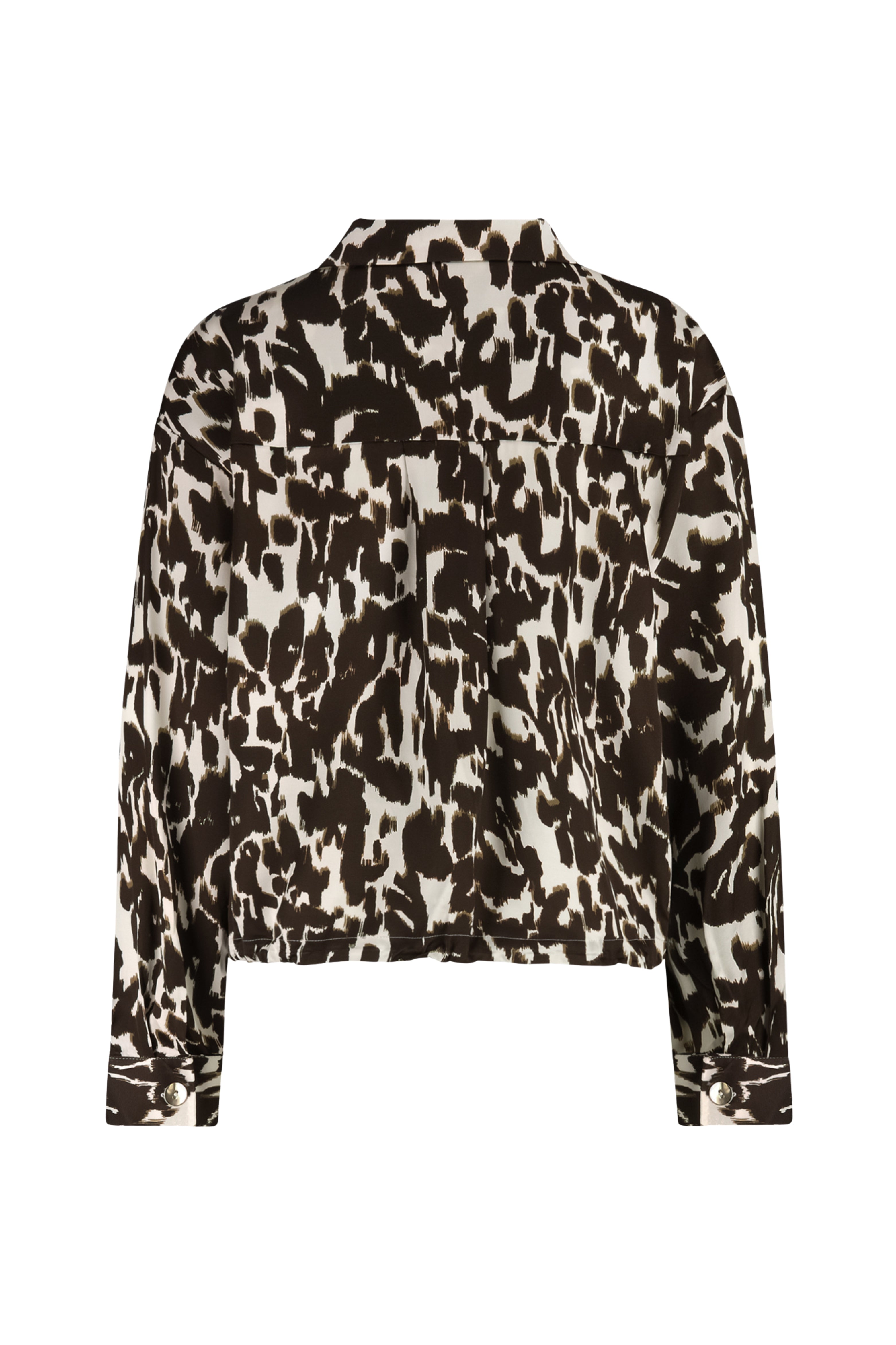 De Blouse Newport Offwhite Dark Chocolate van Nukus is een stijlvolle blouse met een opvallende dierenprint. Het contrast van offwhite en donkerbruin geeft de blouse een moderne en speelse uitstraling.