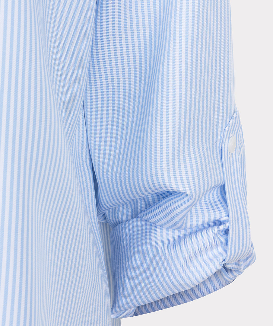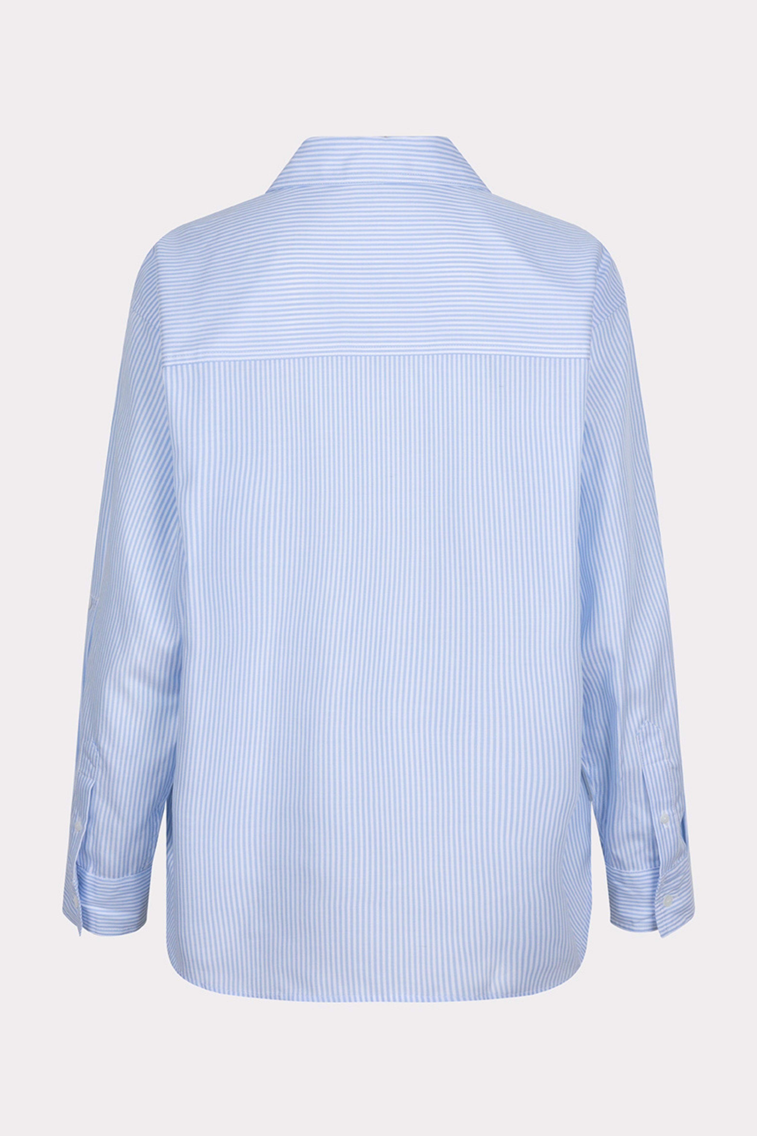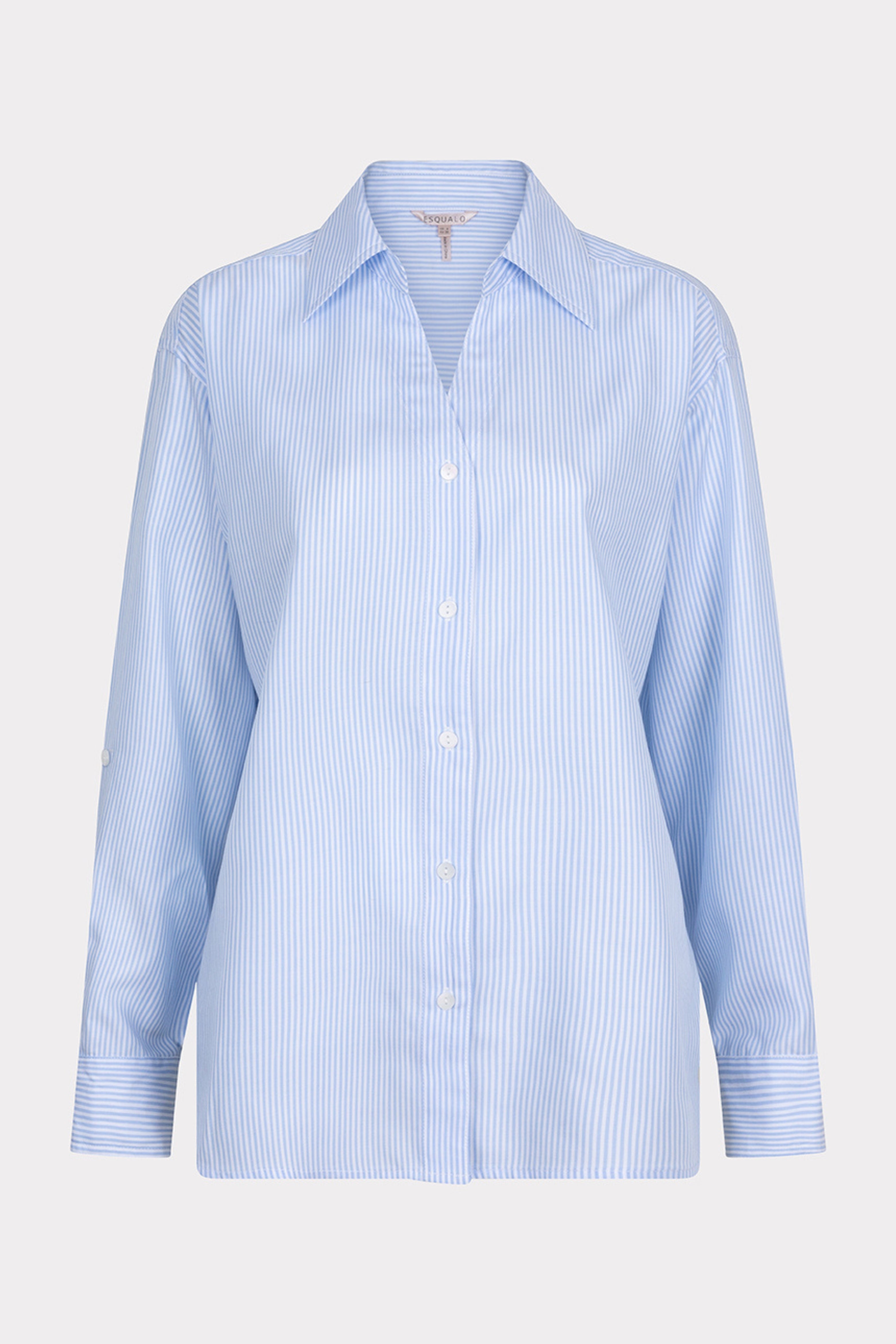 De Blouse Oversized Striped Blue White van Esqualo is een klassieke blouse met een moderne oversized pasvorm. De subtiele blauw-witte strepen en een tijdloze kraag zorgen voor een stijlvolle en veelzijdige look, geschikt voor zowel zakelijke als casual outfits.