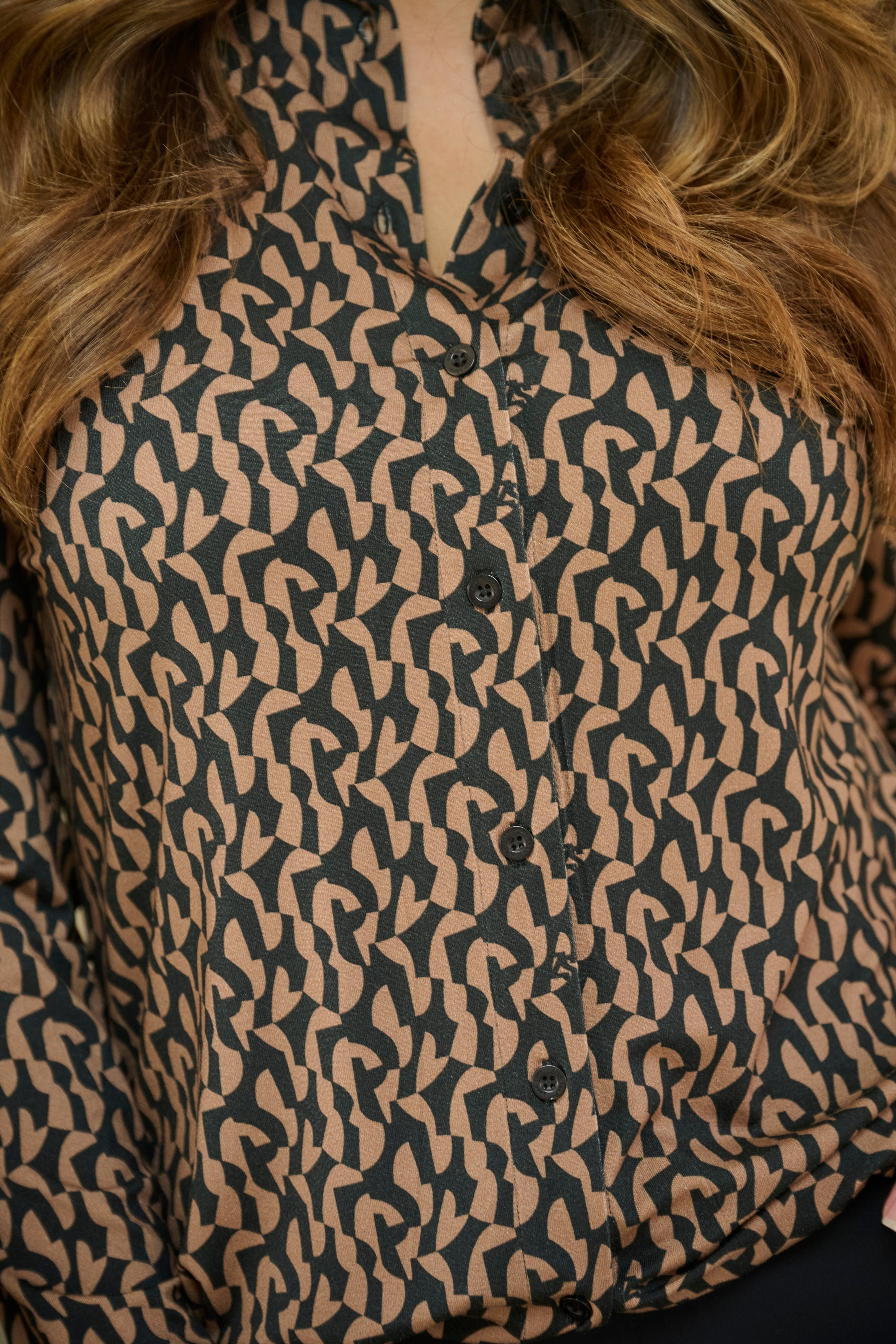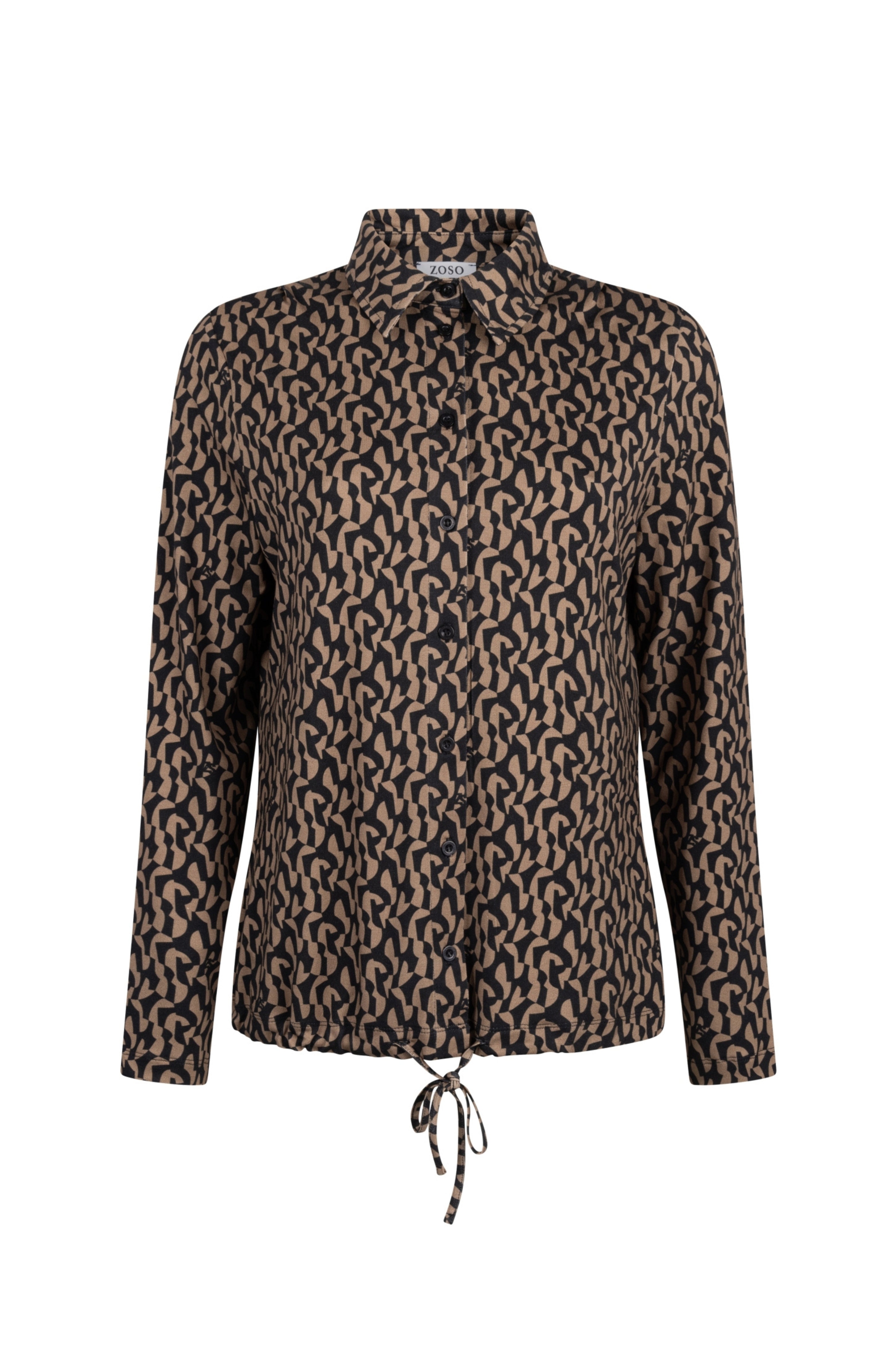 De Blouse Pia Camel Black van Zoso heeft een eigentijdse uitstraling dankzij de all-over print. Met de knoopsluiting en het strikkoord onderaan creëer je moeiteloos een casual of juist geklede look.