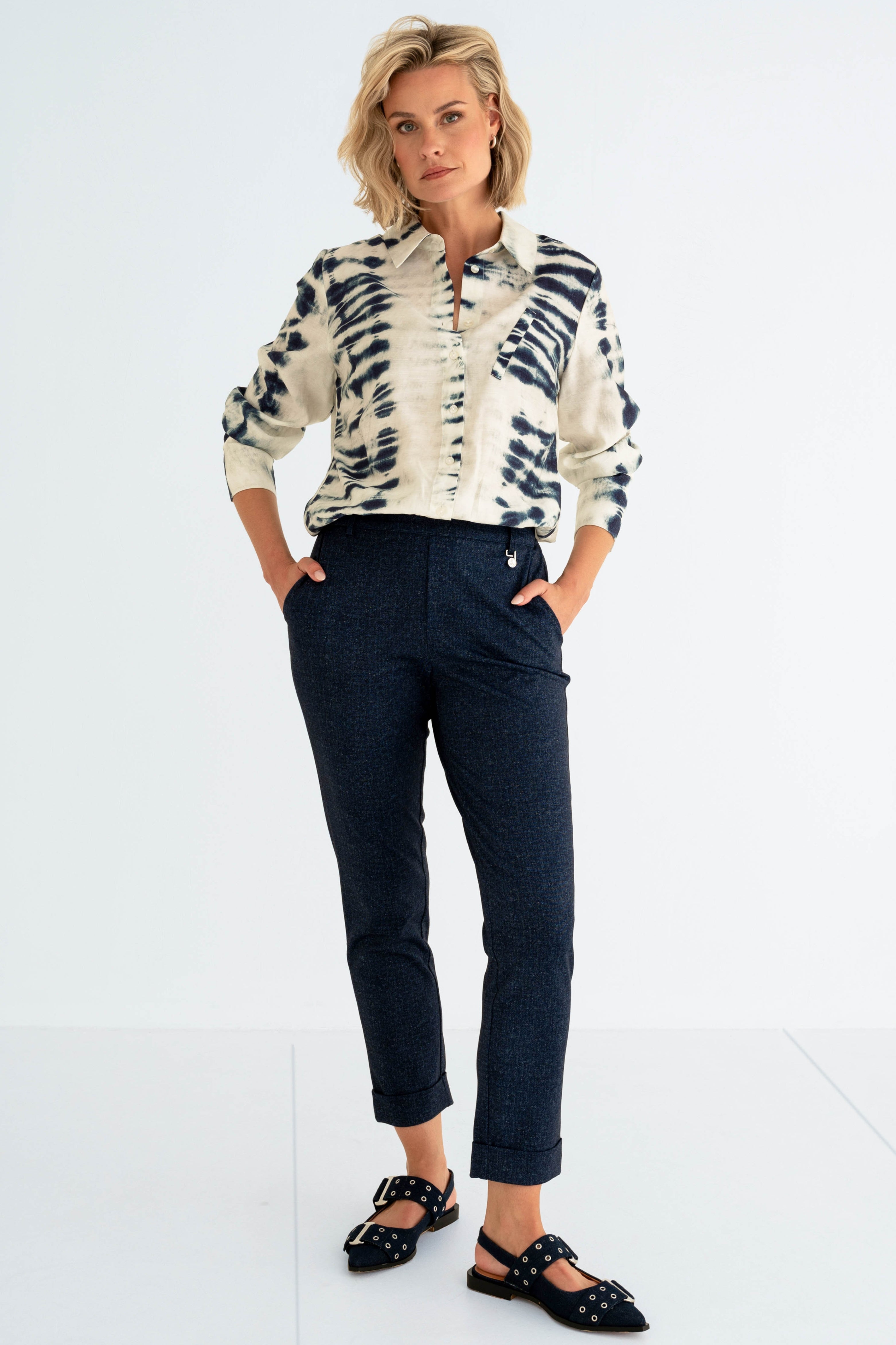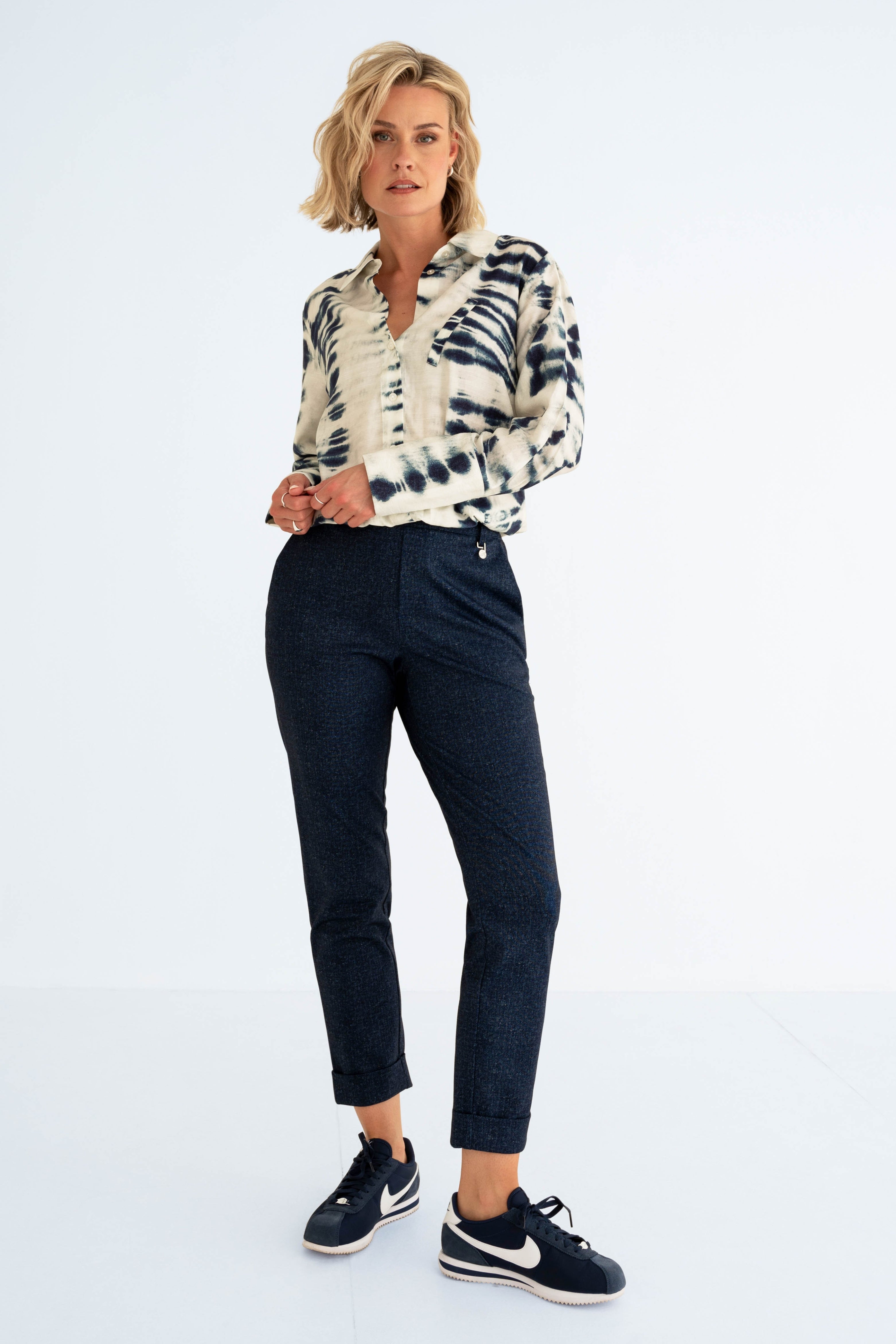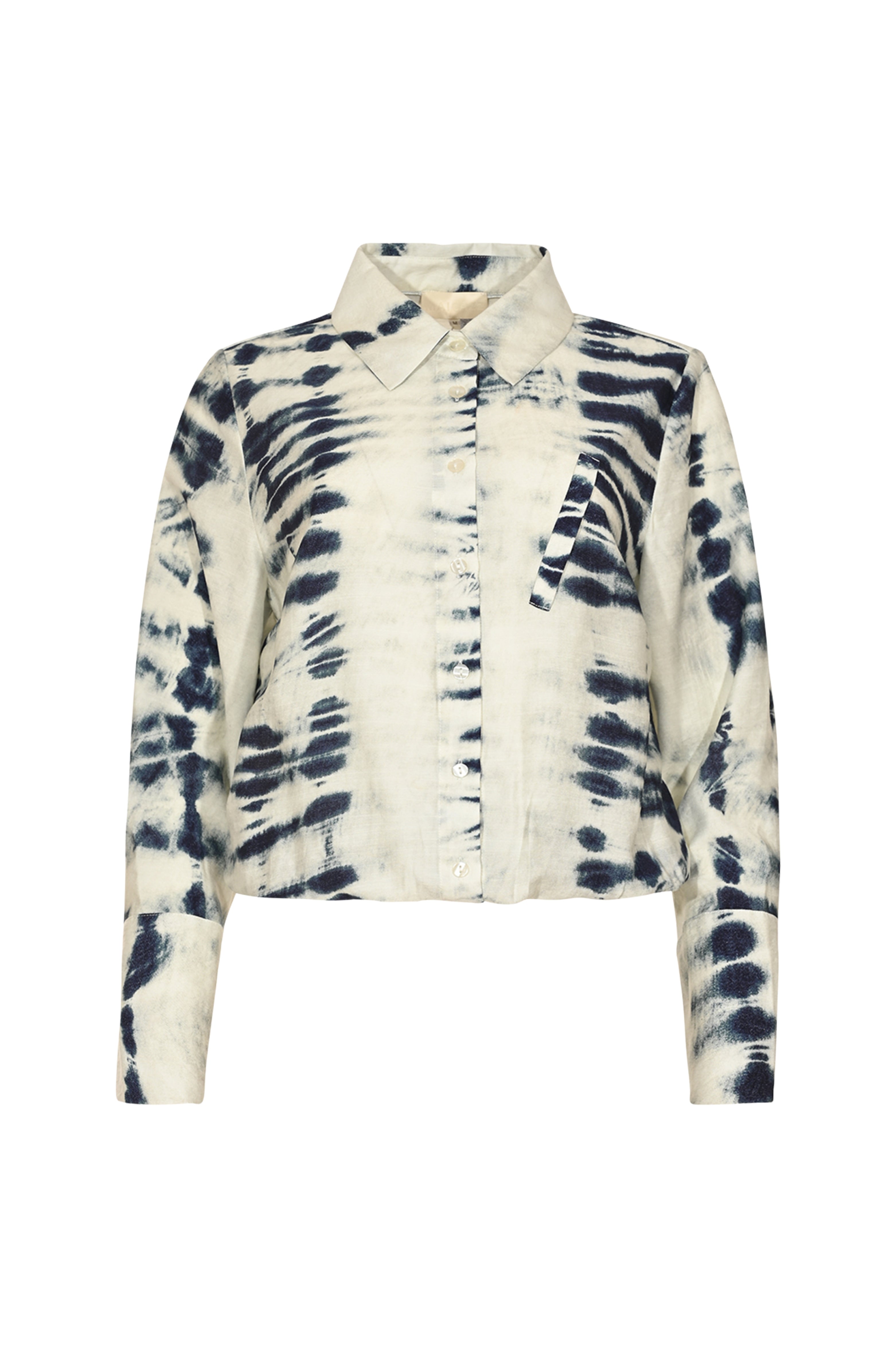 De Blouse Polly Faded Blue is een trendy eyecatcher met een speelse tie-dye look. Het korte, rechte model en de zachte blauwtinten geven de blouse een frisse en eigentijdse uitstraling. Perfect om casual te dragen of stijlvol te combineren.