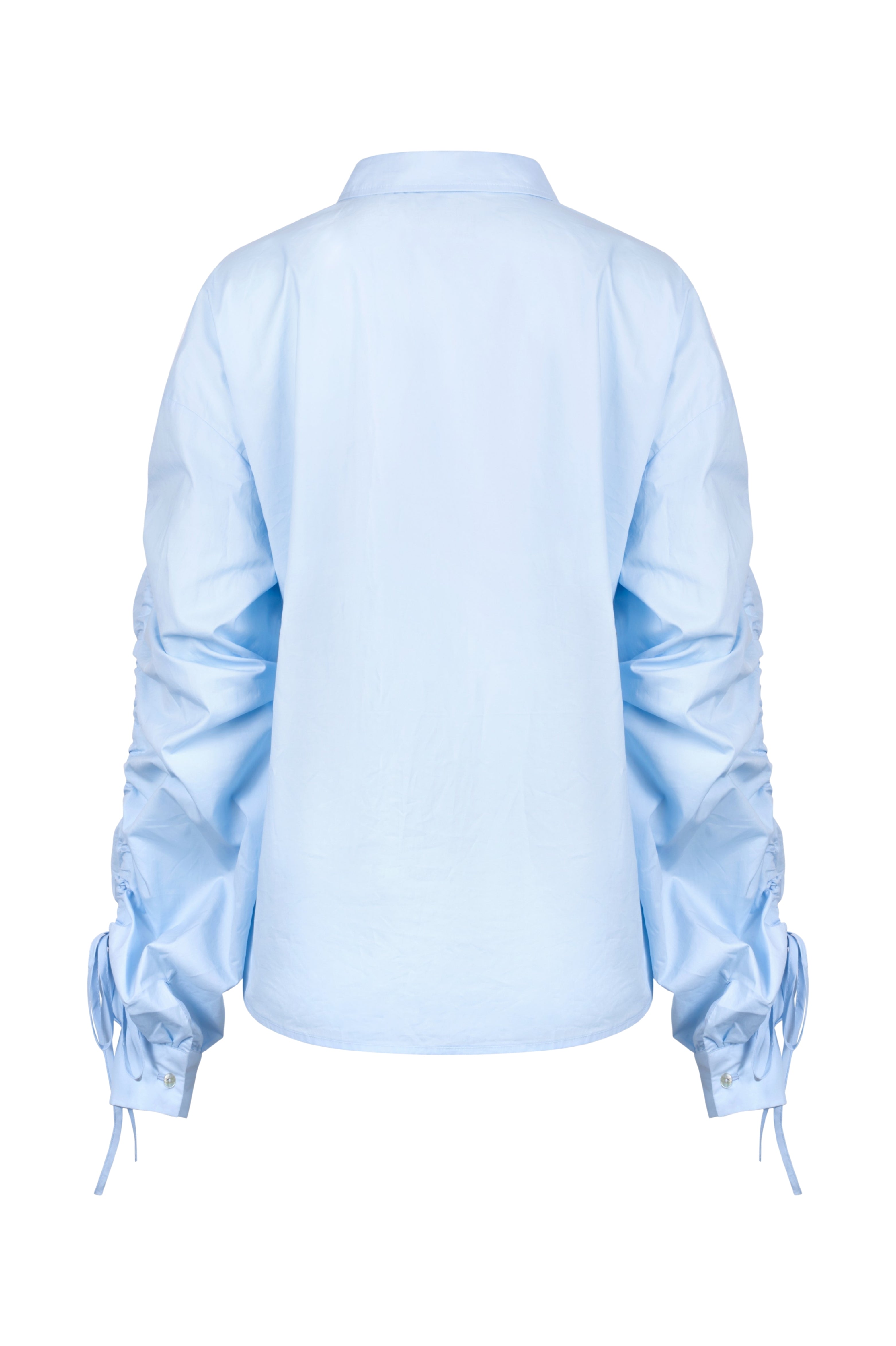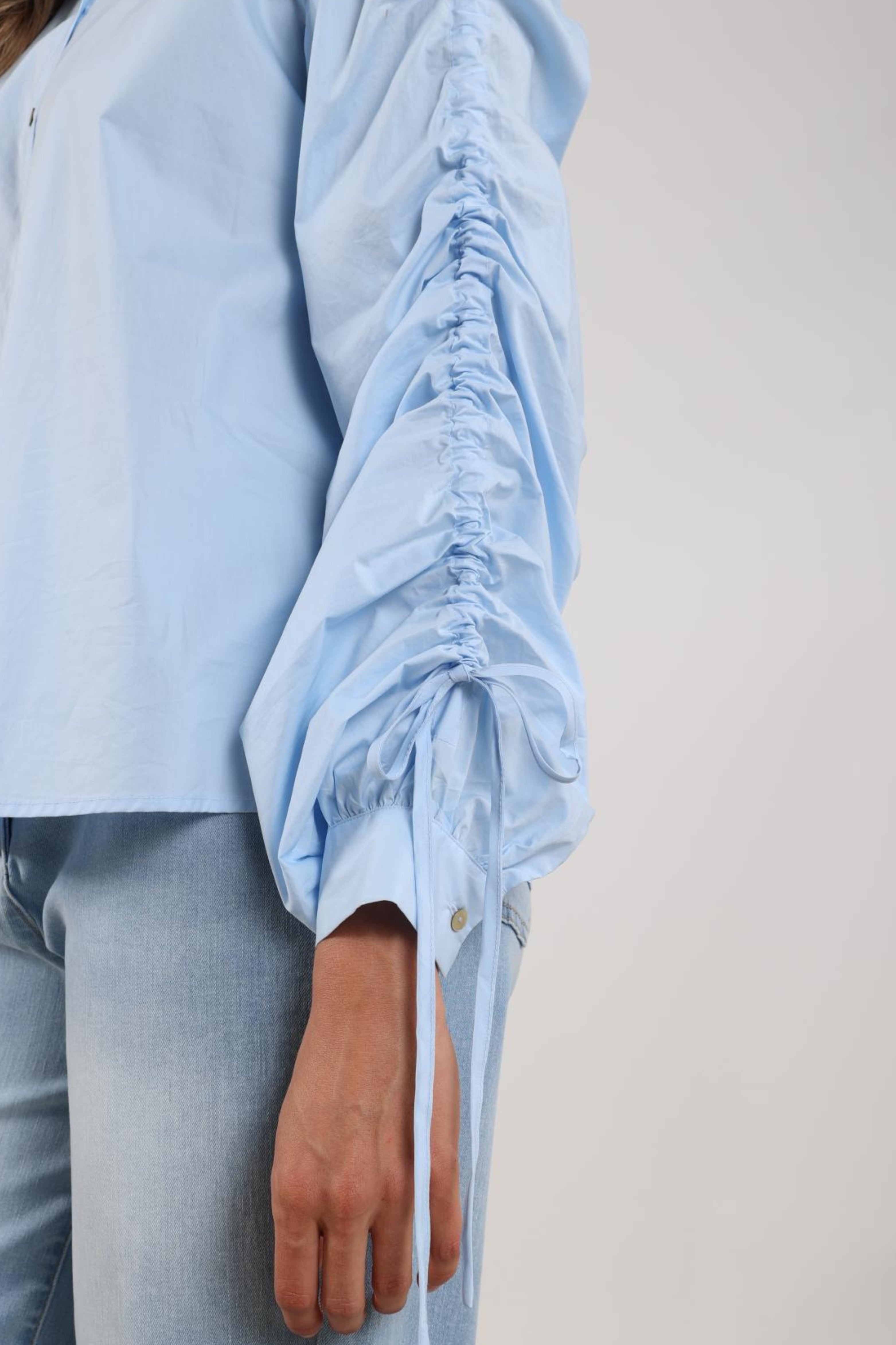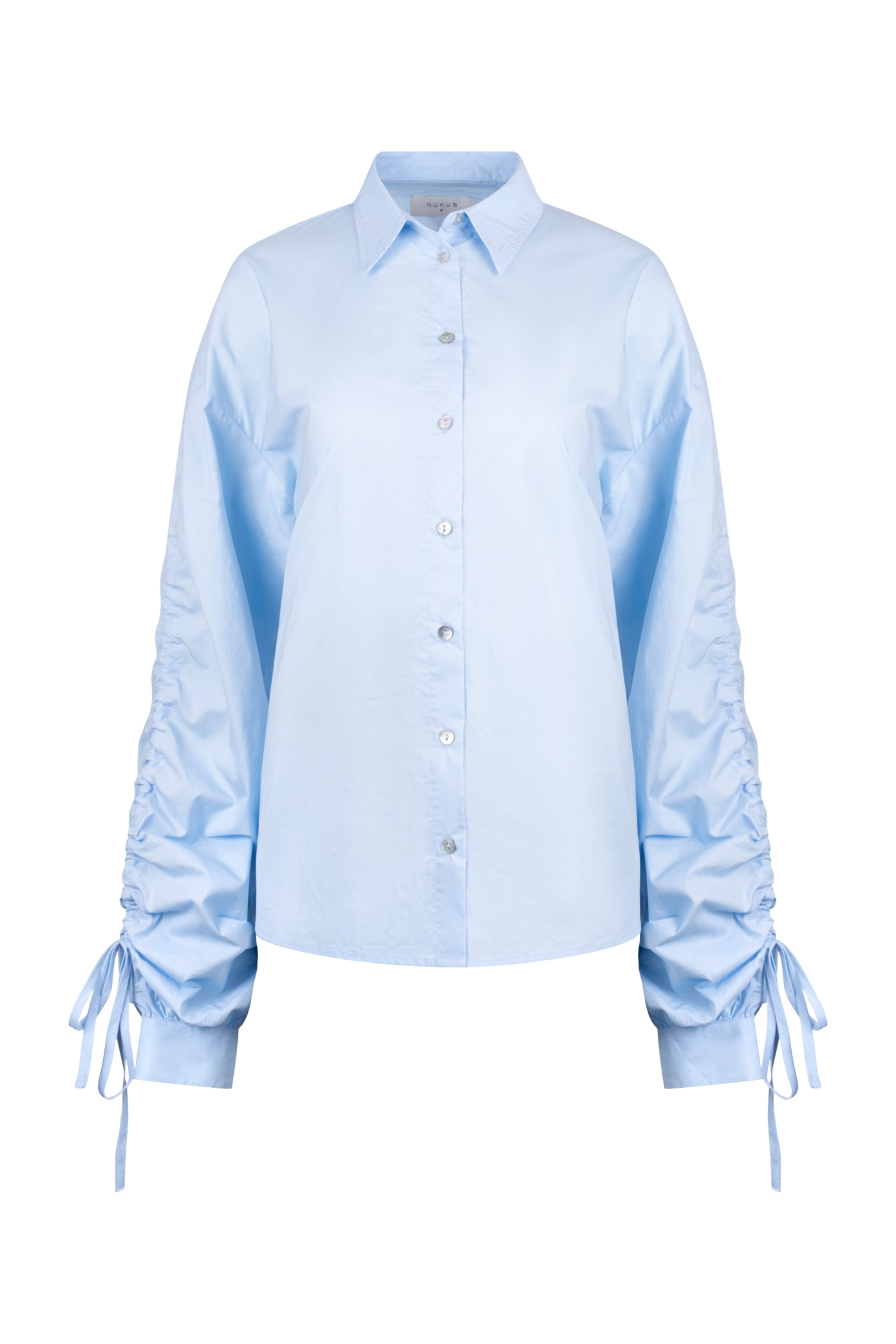 De Blouse Rosa Cloudy van Nukus is een stijlvolle blouse met een frisse, lichte uitstraling en opvallende rimpeldetails langs de mouwen. De soepelvallende stof en tijdloze snit maken dit item perfect voor zowel casual als geklede looks.
