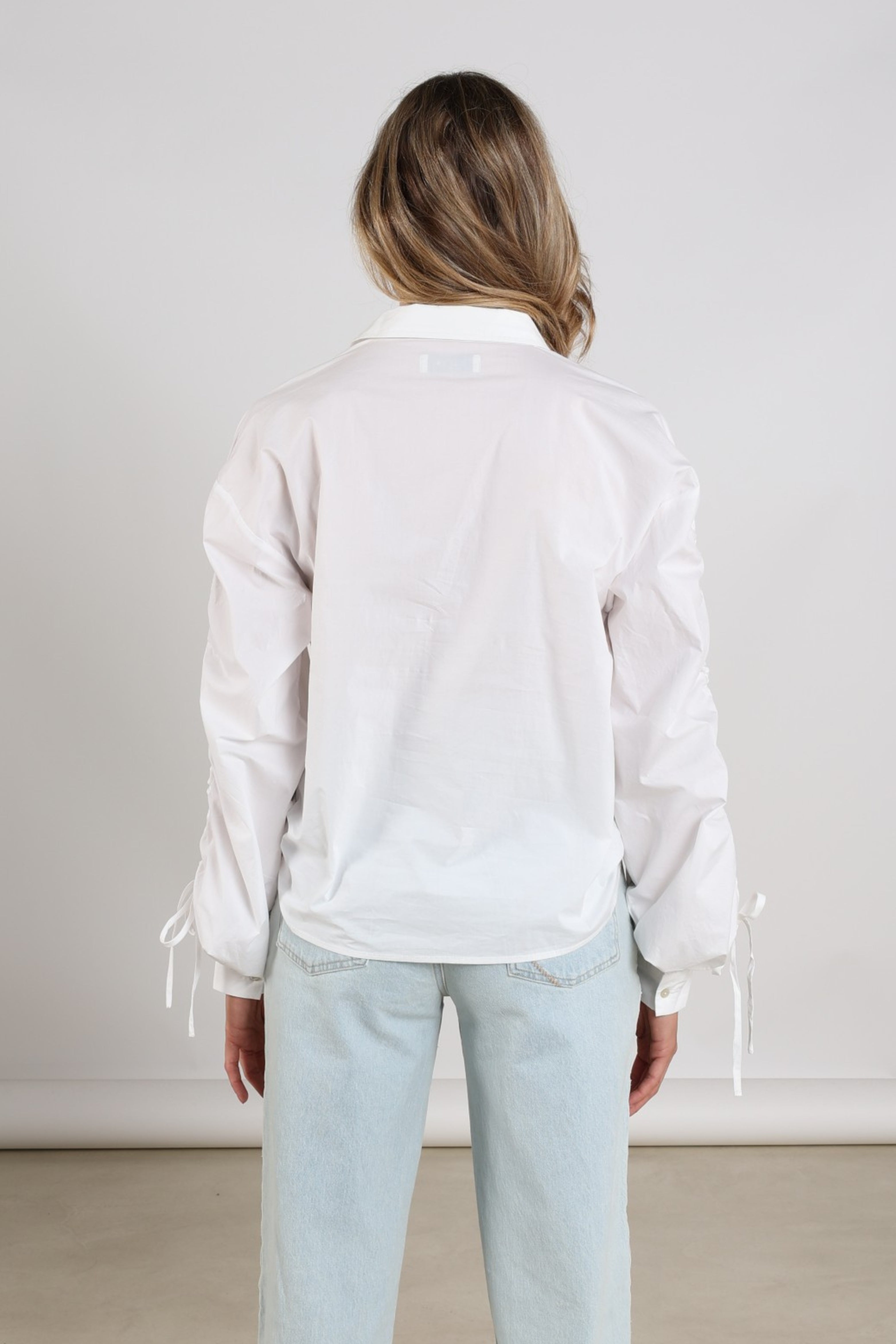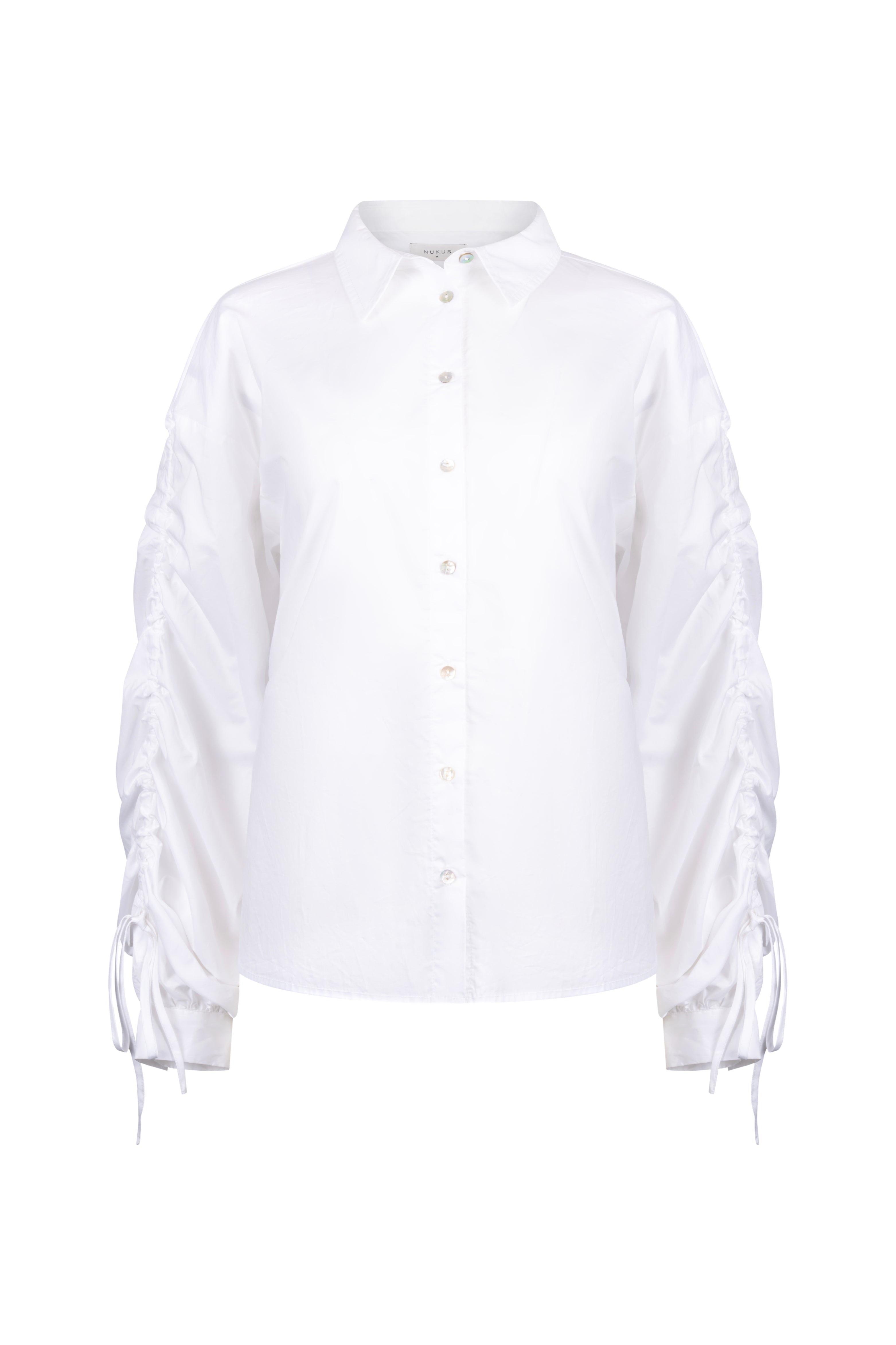 De Blouse Rosa Offwhite van Nukus is een modieuze blouse met klassieke kraag. Volumineuze mouwen met strikkoorden zorgen voor een speels accent en de rechte pasvorm valt mooi om het lichaam. Perfect voor werk en weekend.