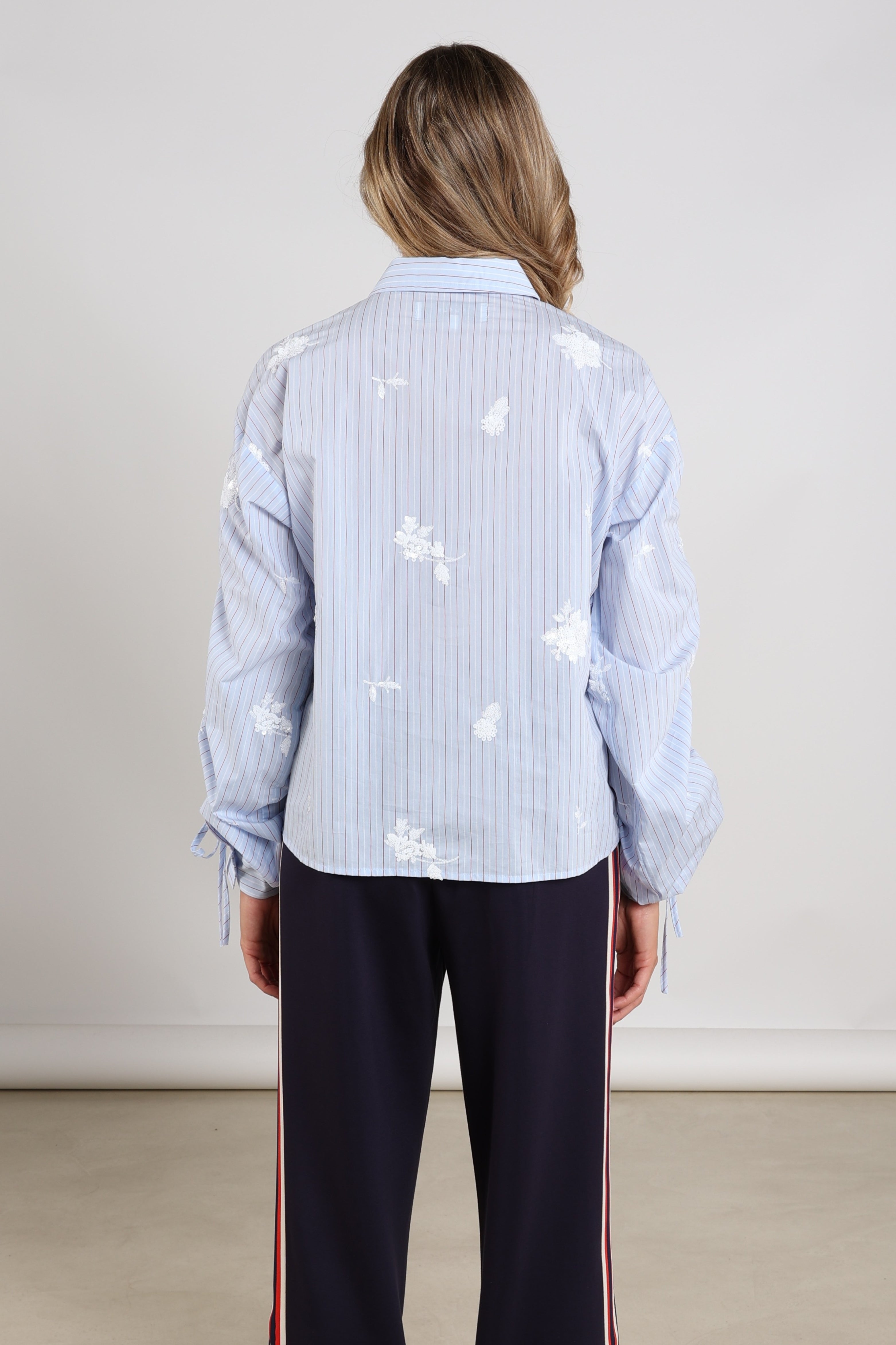 • Geraffineerde mouwen met strikkoorden