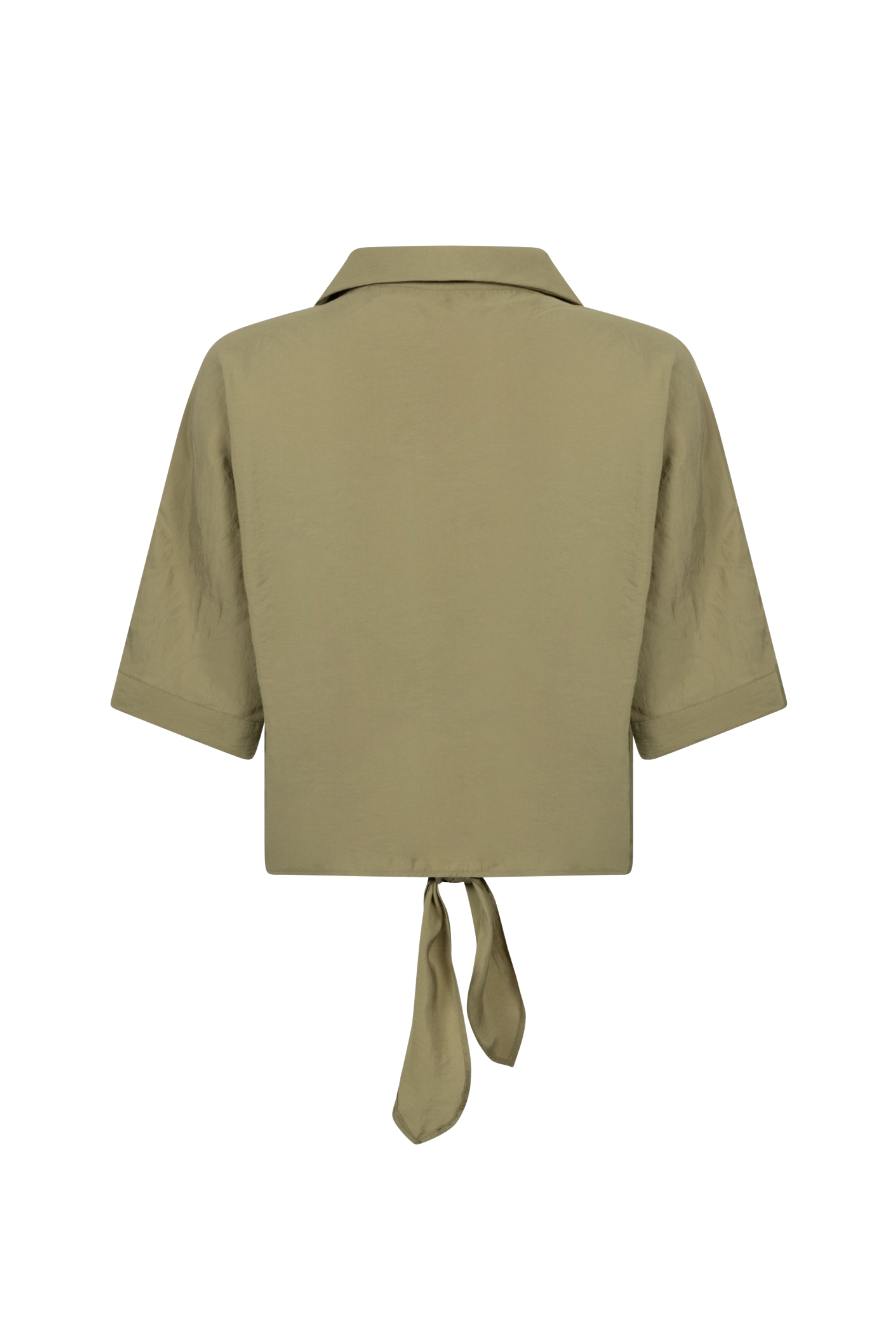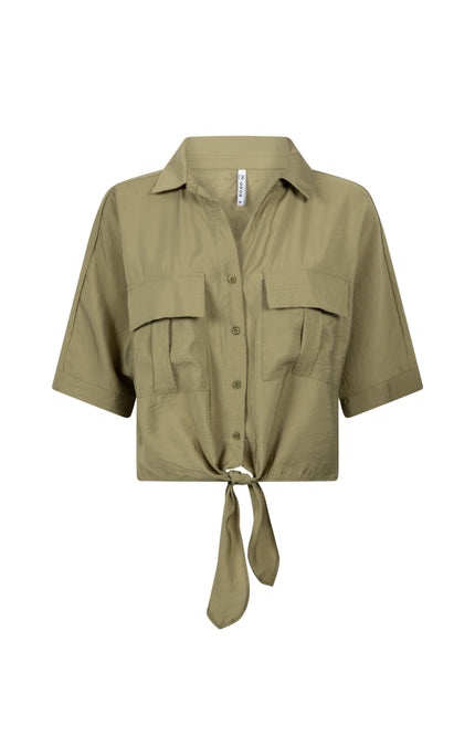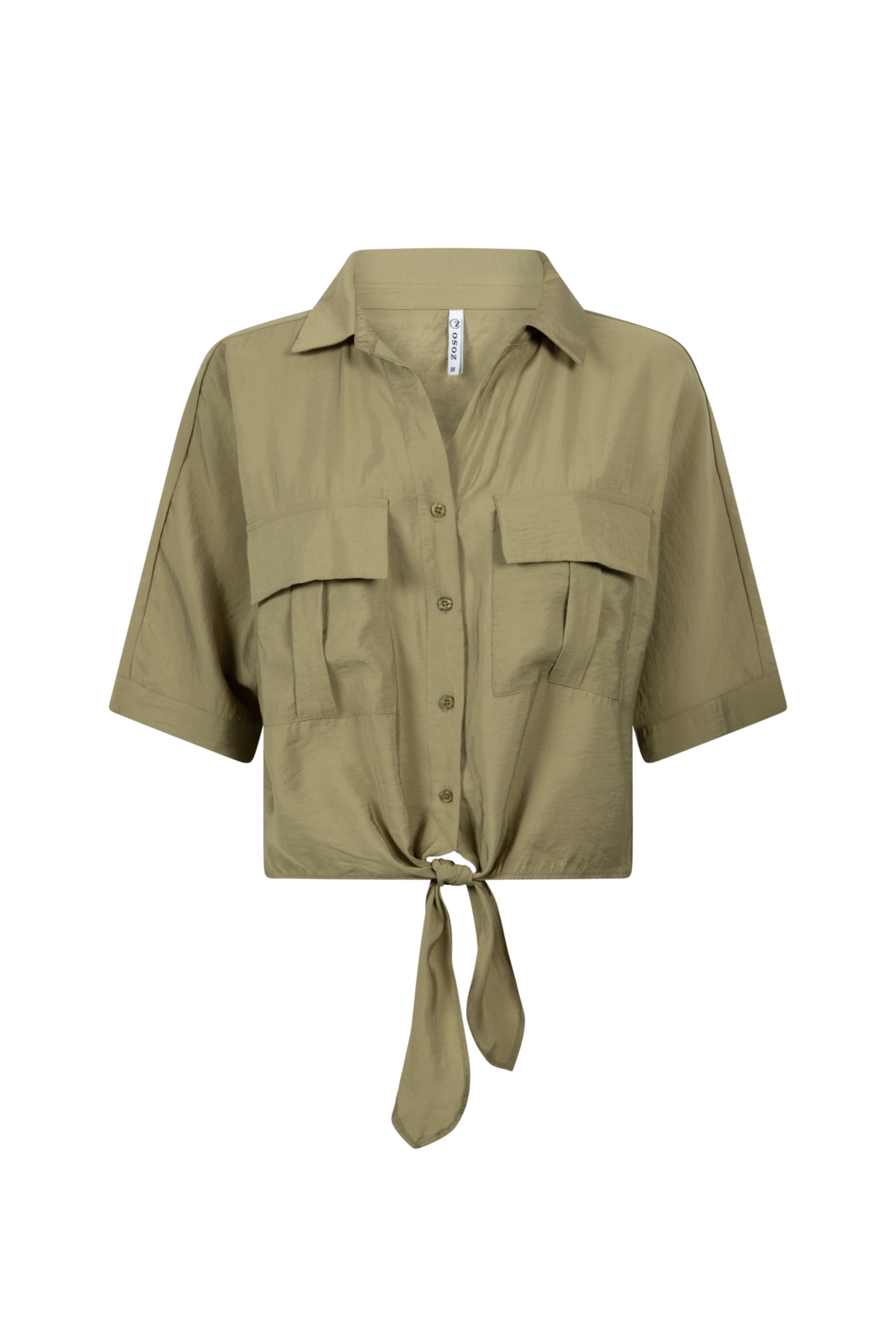 De Blouse Rosalie Green van Zoso is een luchtige zomerblouse met striksluiting en losse pasvorm. De opgestikte zakken en korte mouwen zorgen voor een casual uitstraling.