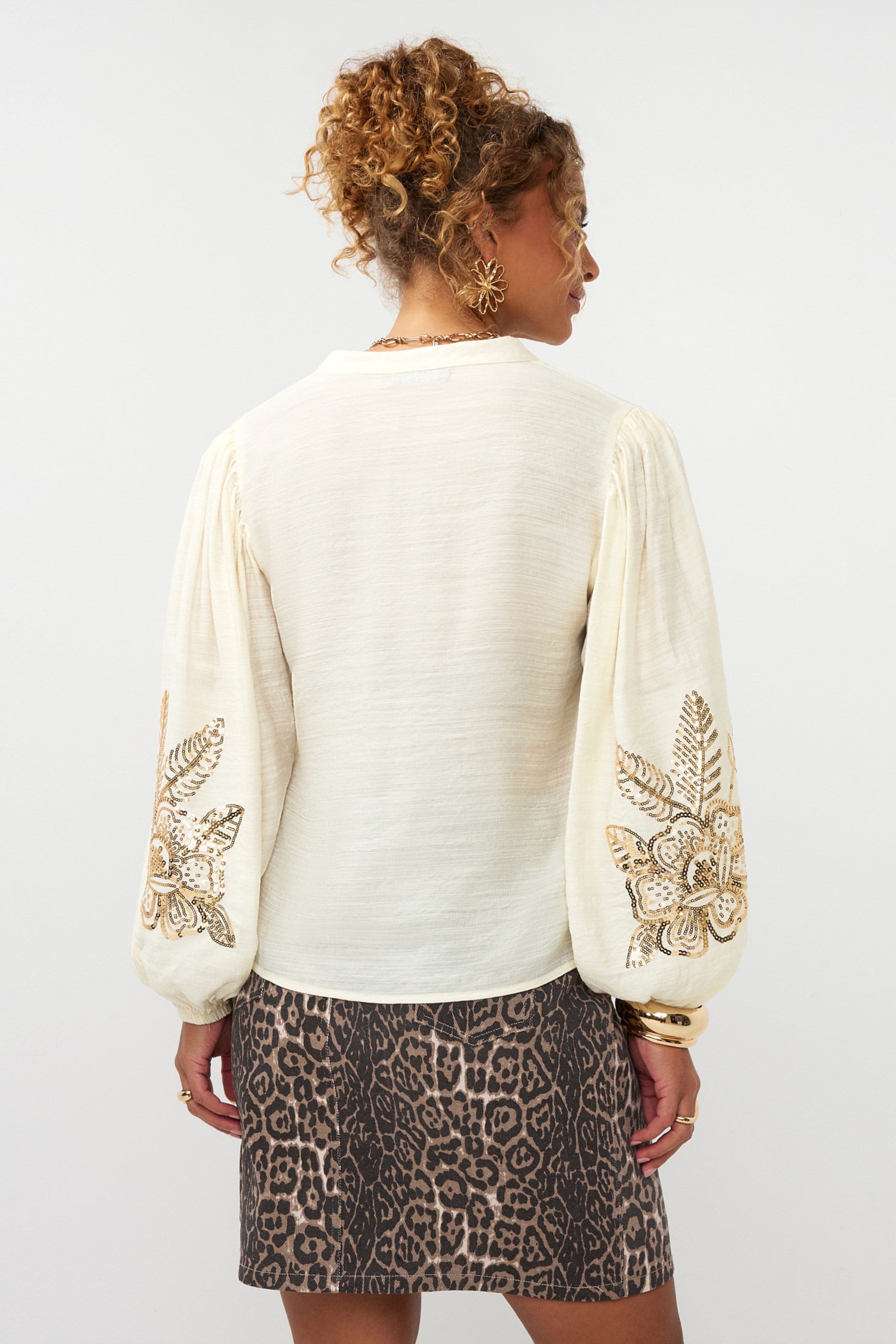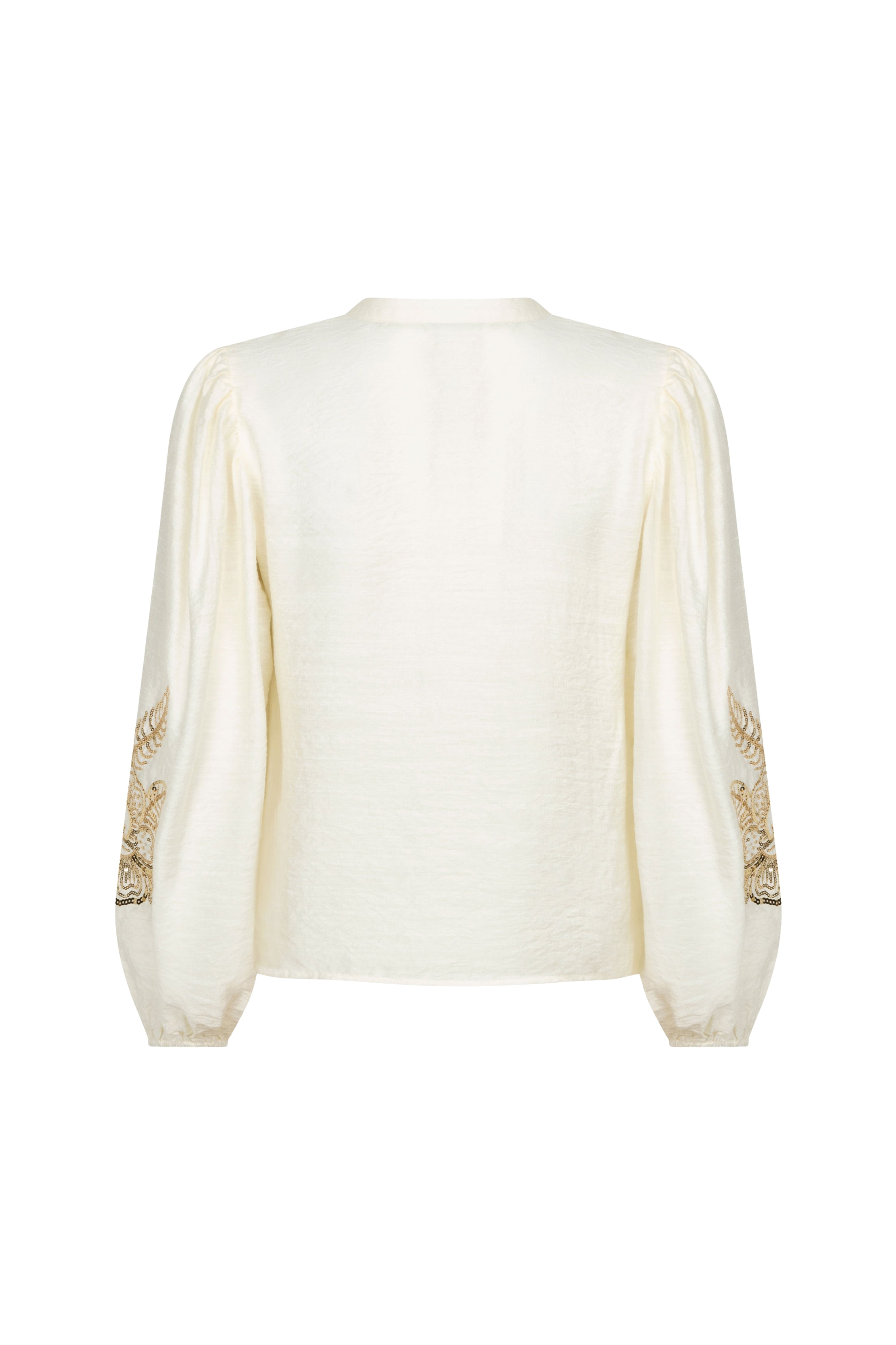 De Blouse Rose Ecru van Ydence is een stijlvolle blouse met verfijnd borduurwerk op de mouwen en een zachte satijnachtige look. Een elegant item dat elke outfit direct een luxe uitstraling geeft.