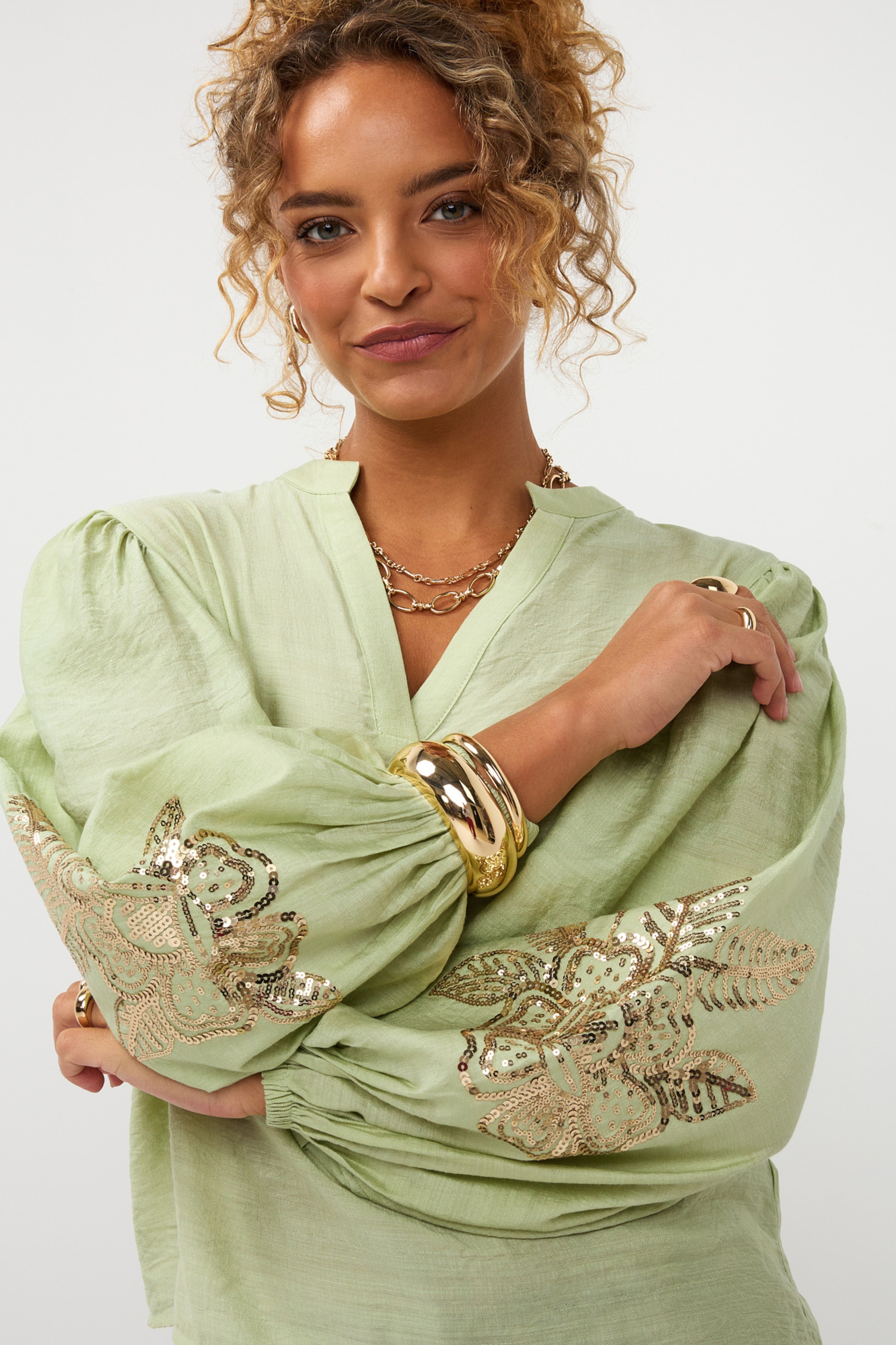 • Lange mouwen met borduursel
