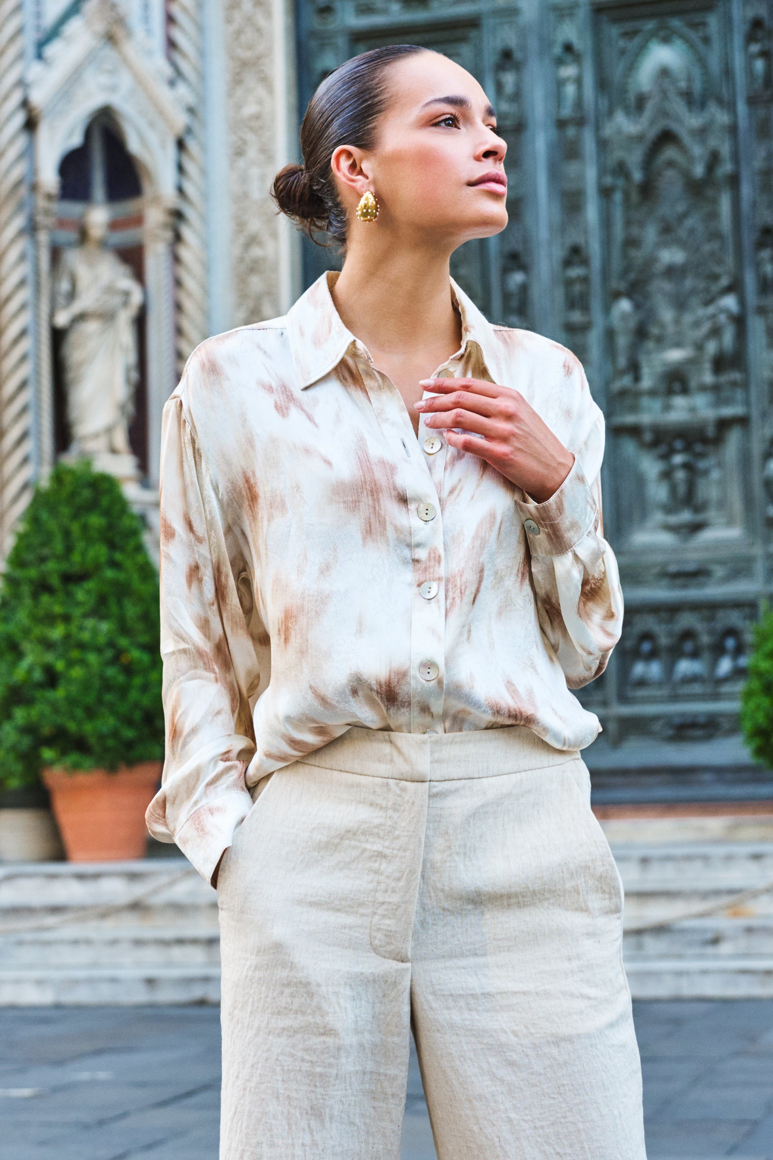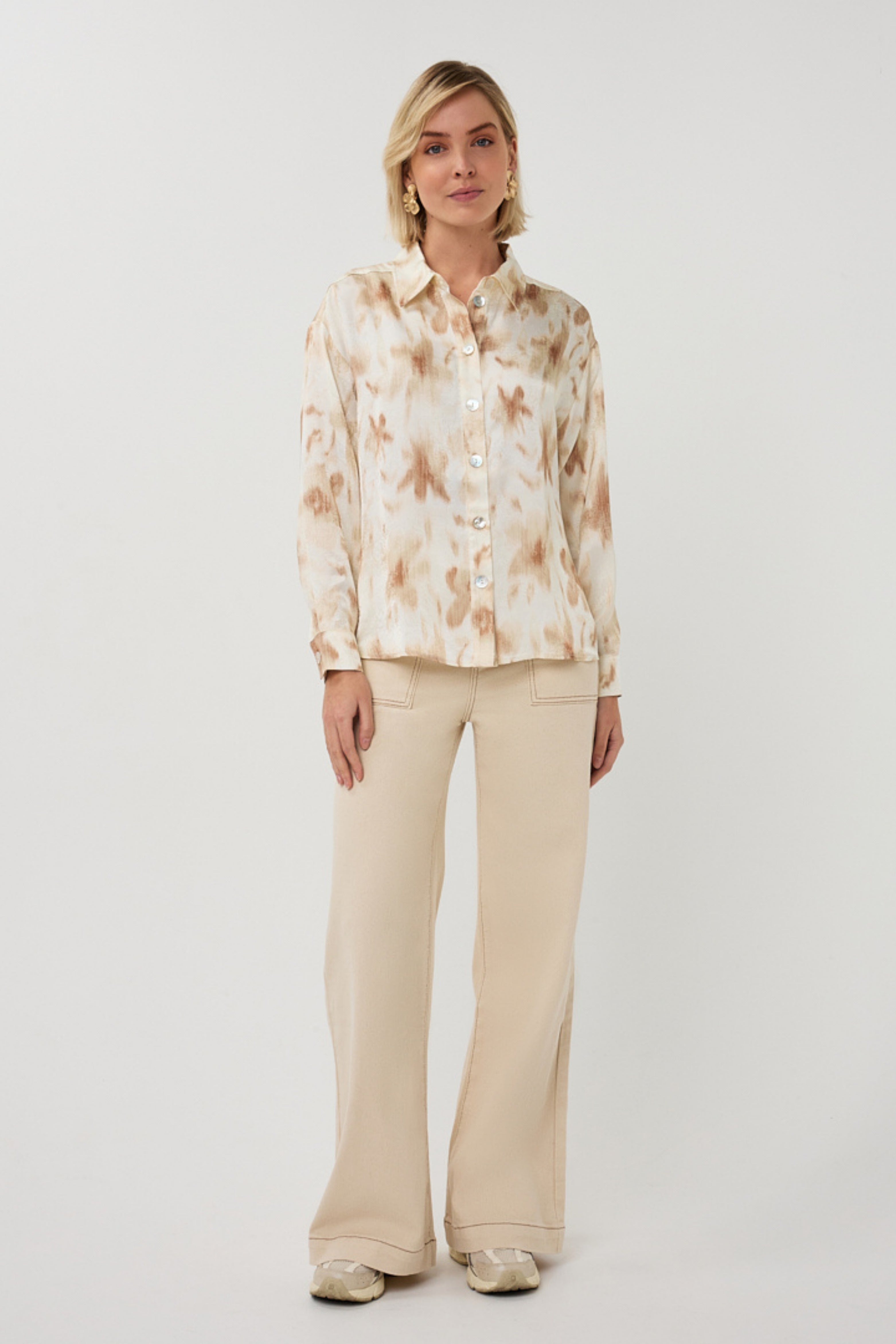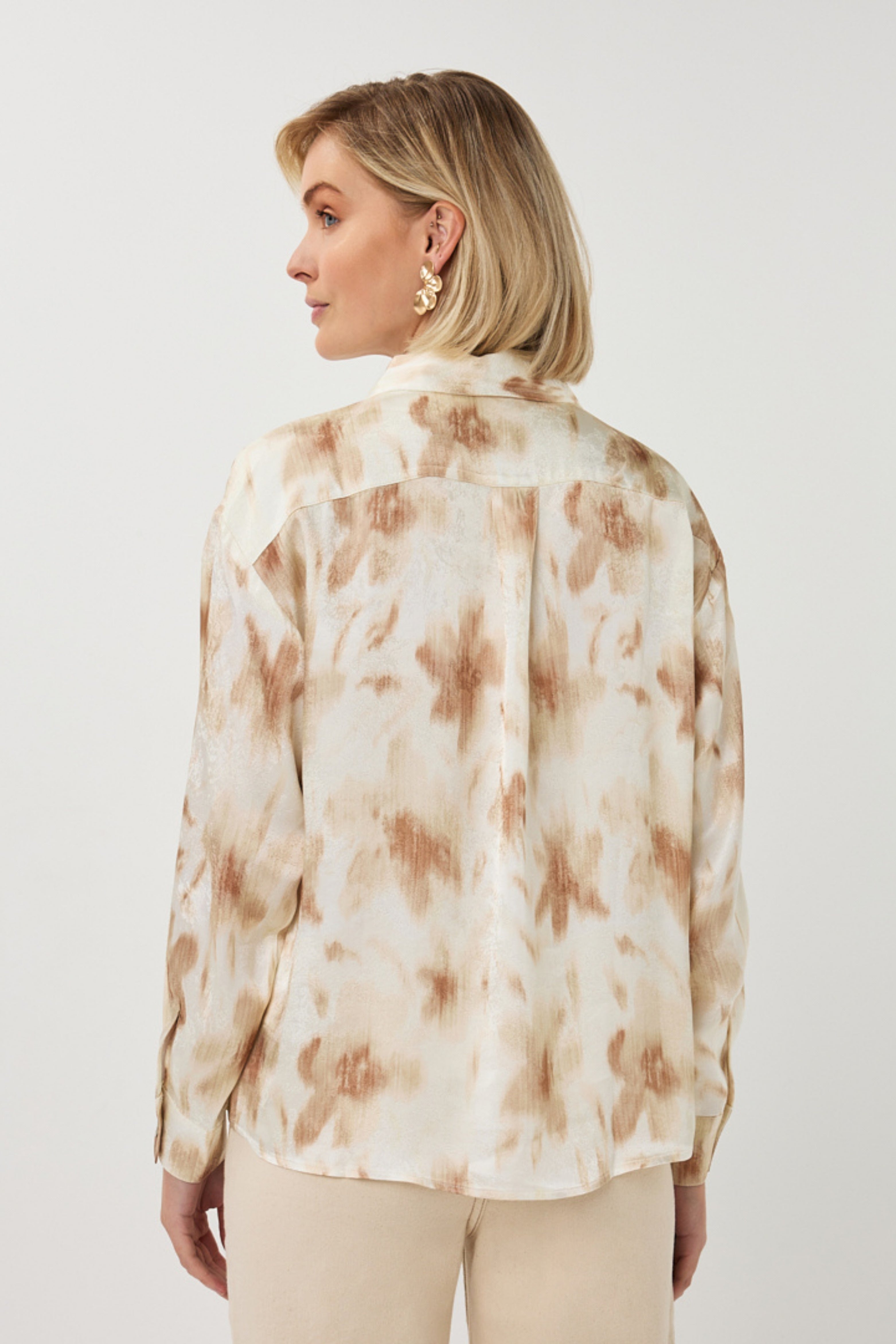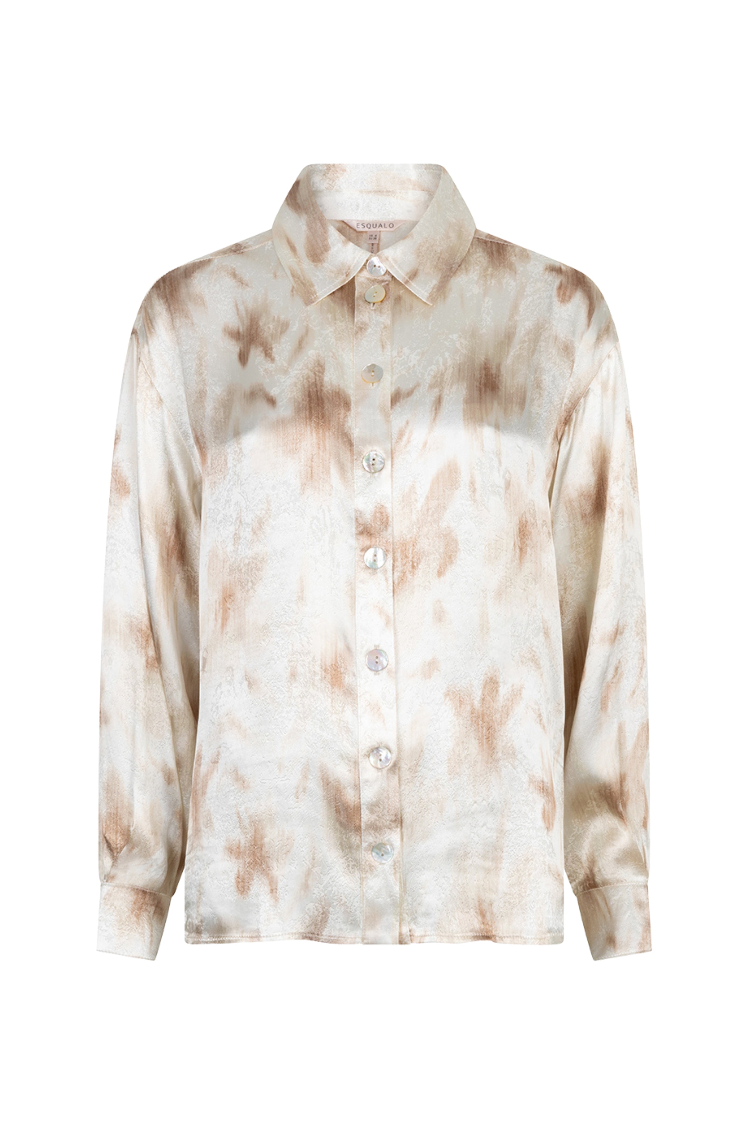 De Blouse Scarlet Flowerpower Print van Esqualo is een elegante blouse met klassieke kraag. Satijnachtige glans en doorknoopsluiting geven een chique look. Perfect voor werk en diner.