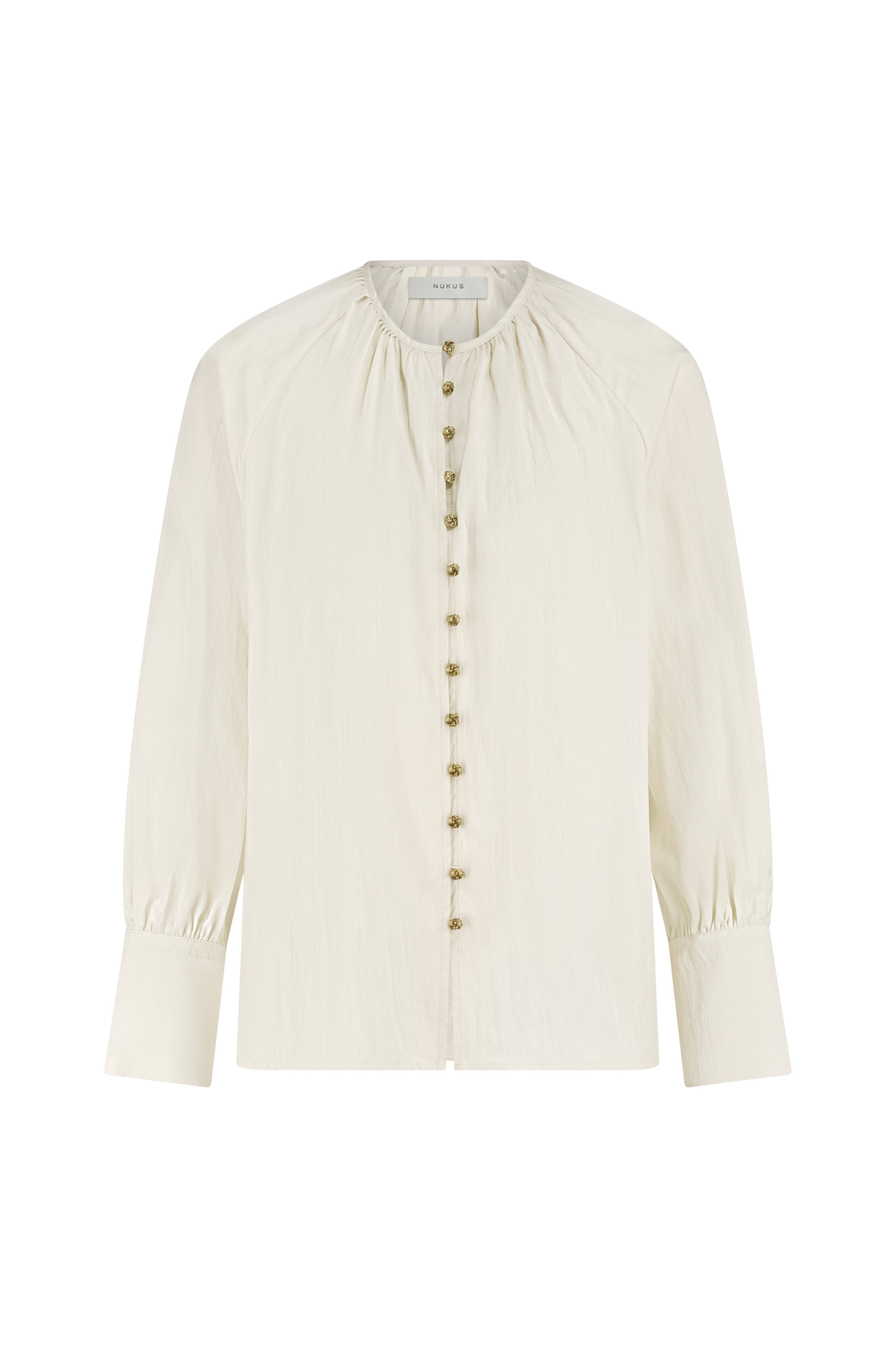 De Blouse Sterre Offwhite van Nukus is een tijdloze blouse met een elegante uitstraling. De lichte kleur, verfijnde plooien en knoopmanchetten geven dit item een vrouwelijke touch. Ideaal om eindeloos te combineren.