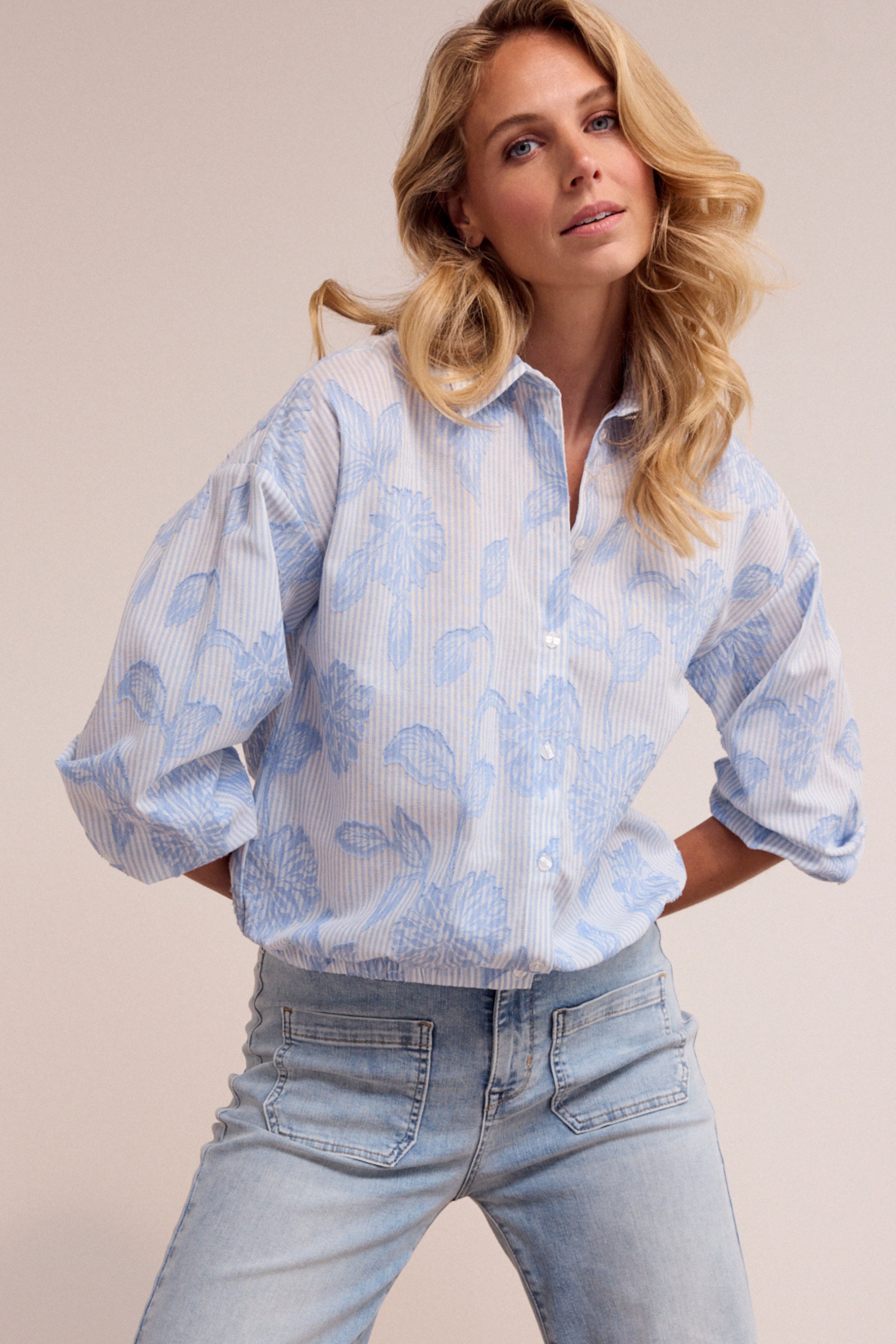 Blouse Striped Flower Pattern Breezy Blue O12-19-301 1