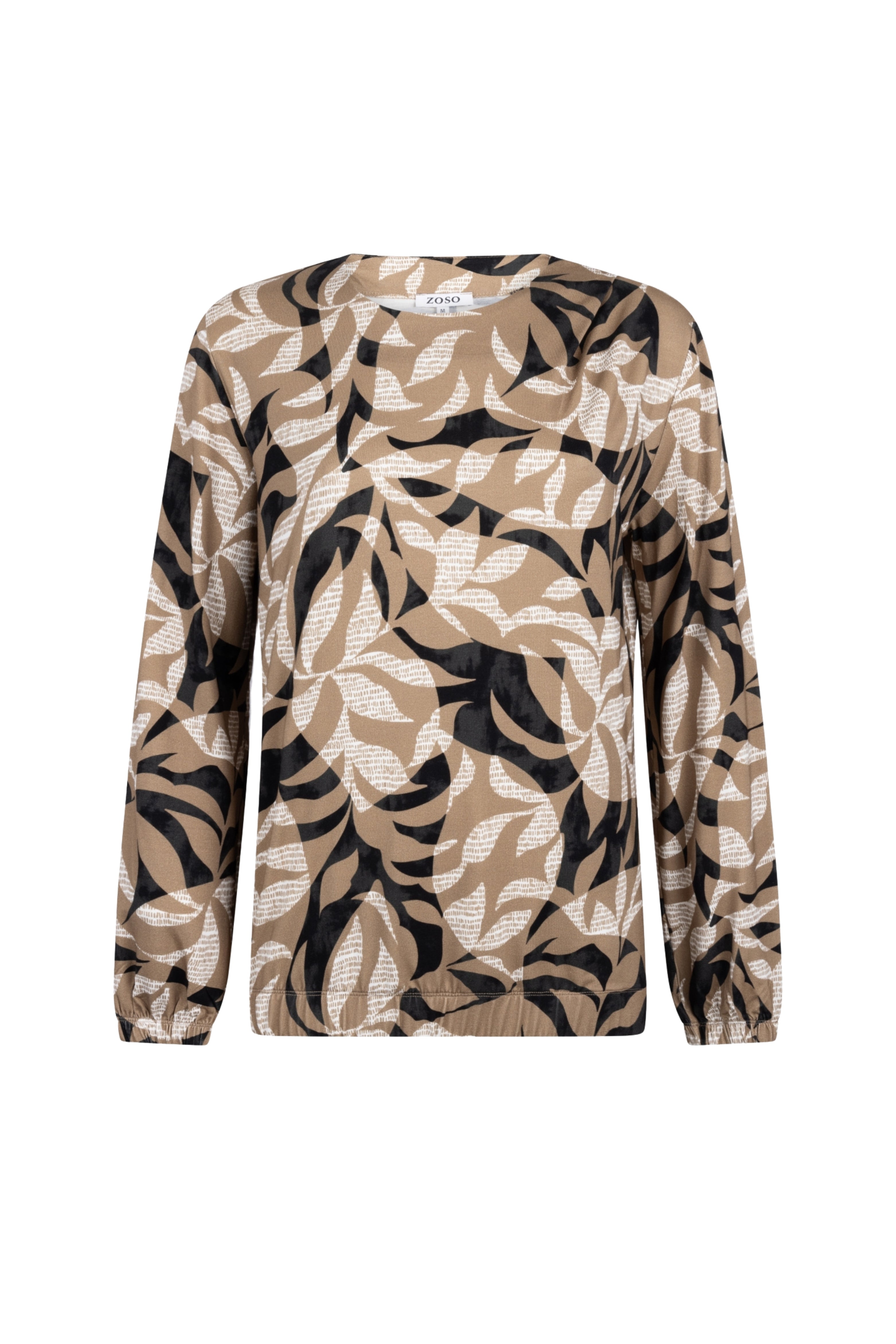 De Blouse Suzy Camel van Zoso is een trendy top met all-over bladerprint in camel en zwart. De rechte pasvorm en elastische zoom geven de blouse een comfortabele en moderne uitstraling, ideaal voor een casual chique look.