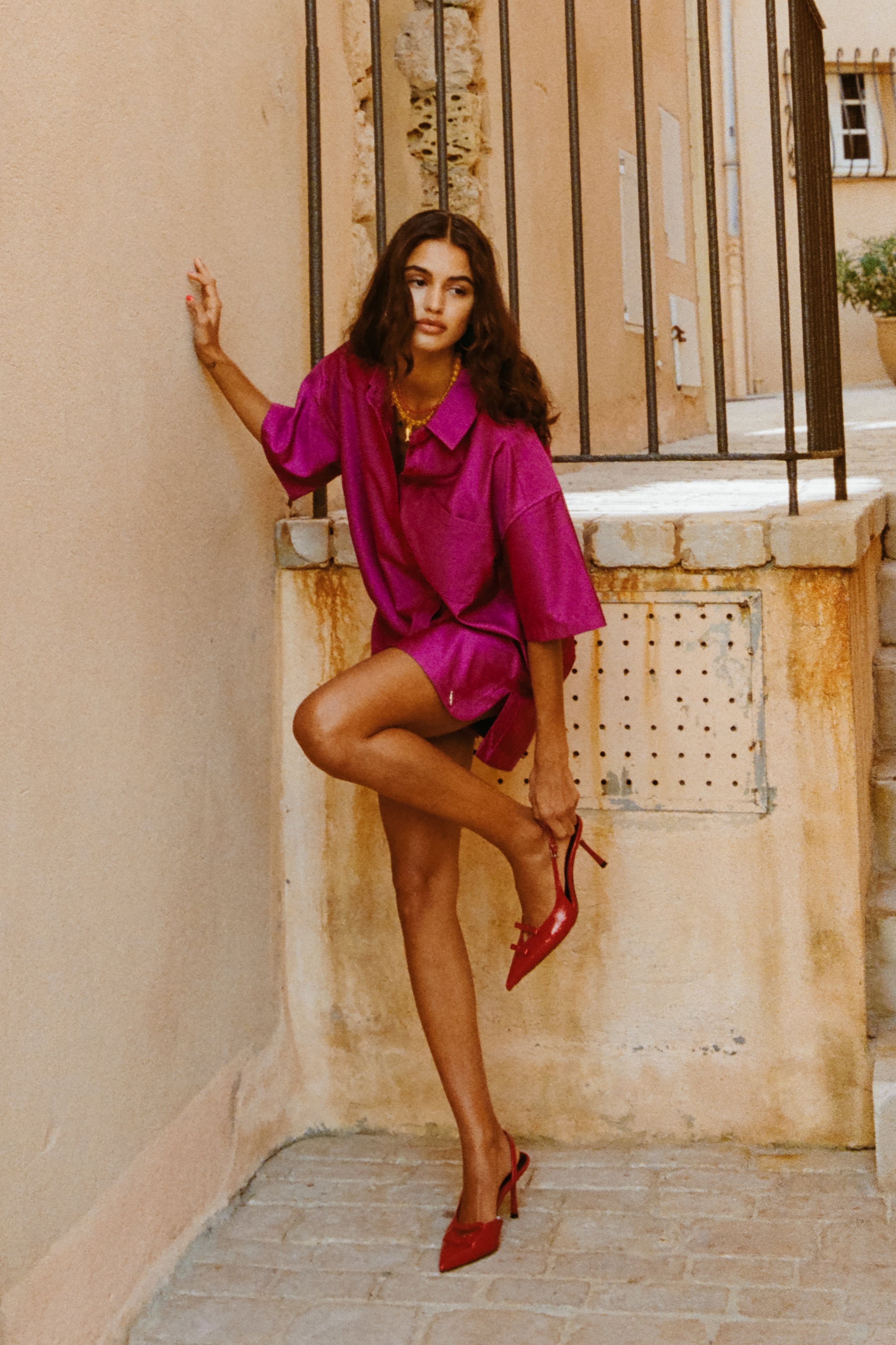 • Het model is 174 cm en draagt maat S