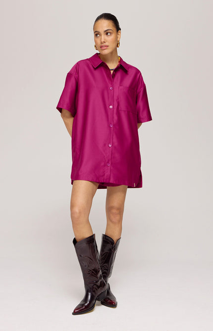 De Blouse Tessa Winetasting van Harper & Yve is een elegant item met een verfijnde glans. De rijke wijnrode kleur, het relaxte model en de satijnlook stof maken deze blouse perfect voor zowel casual als chique gelegenheden.