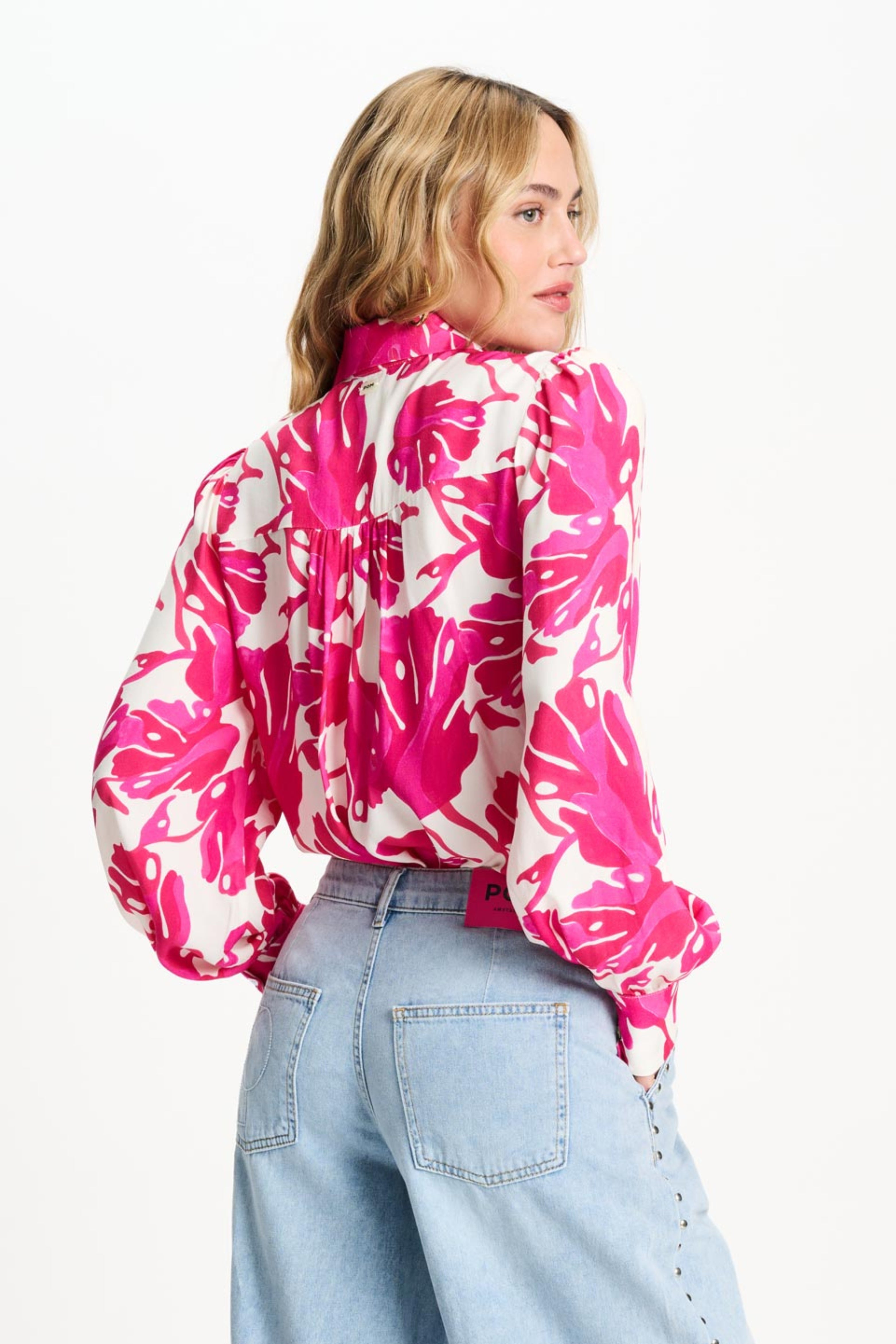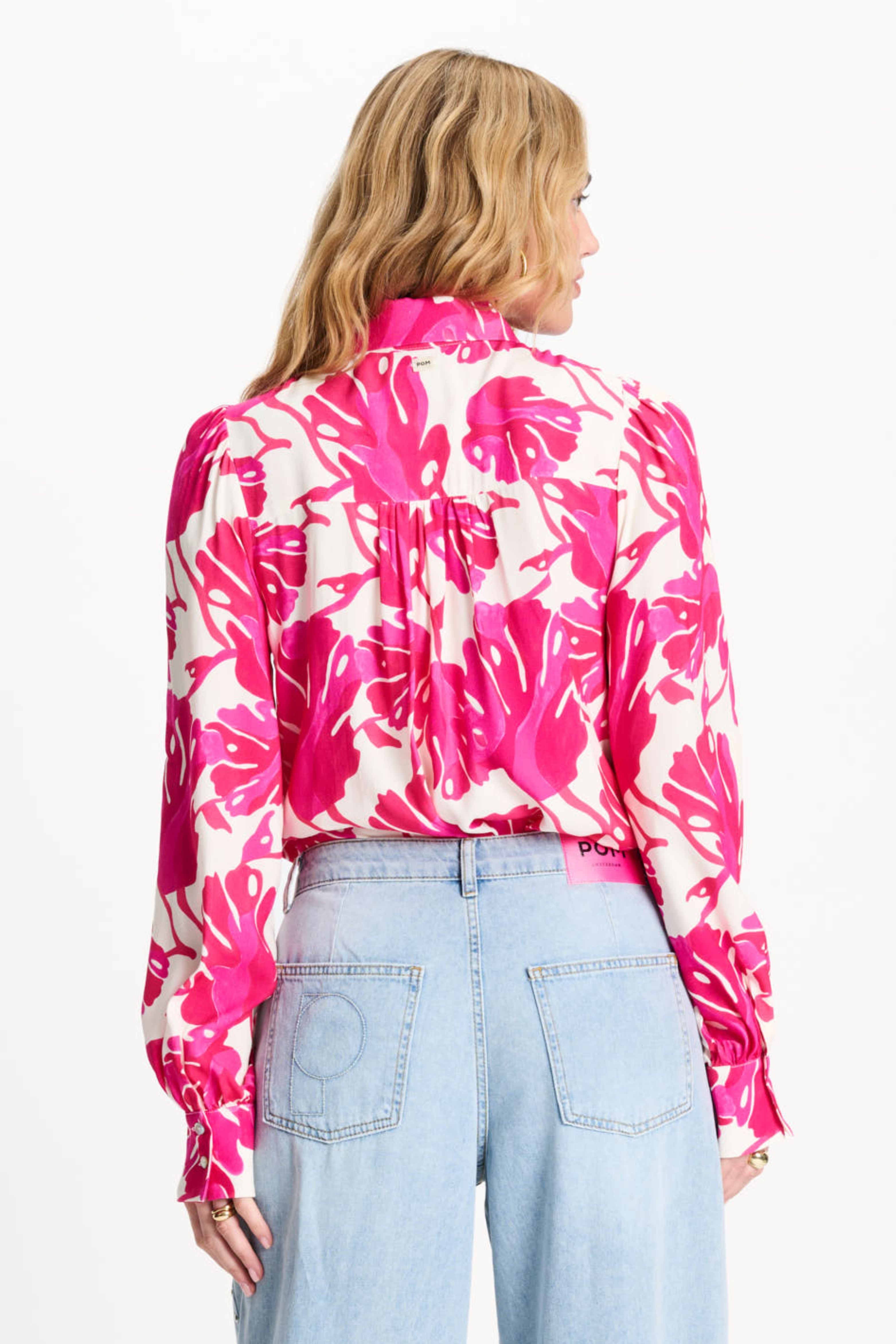 De Blouse Urban Flora White Multi Colour van POM Amsterdam is een elegante, frisse blouse met felroze bladprint en een speels strikdetail bij de hals. Een opvallend, kleurrijk model dat elke outfit meteen opfleurt.