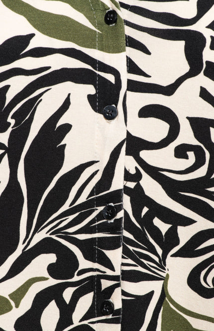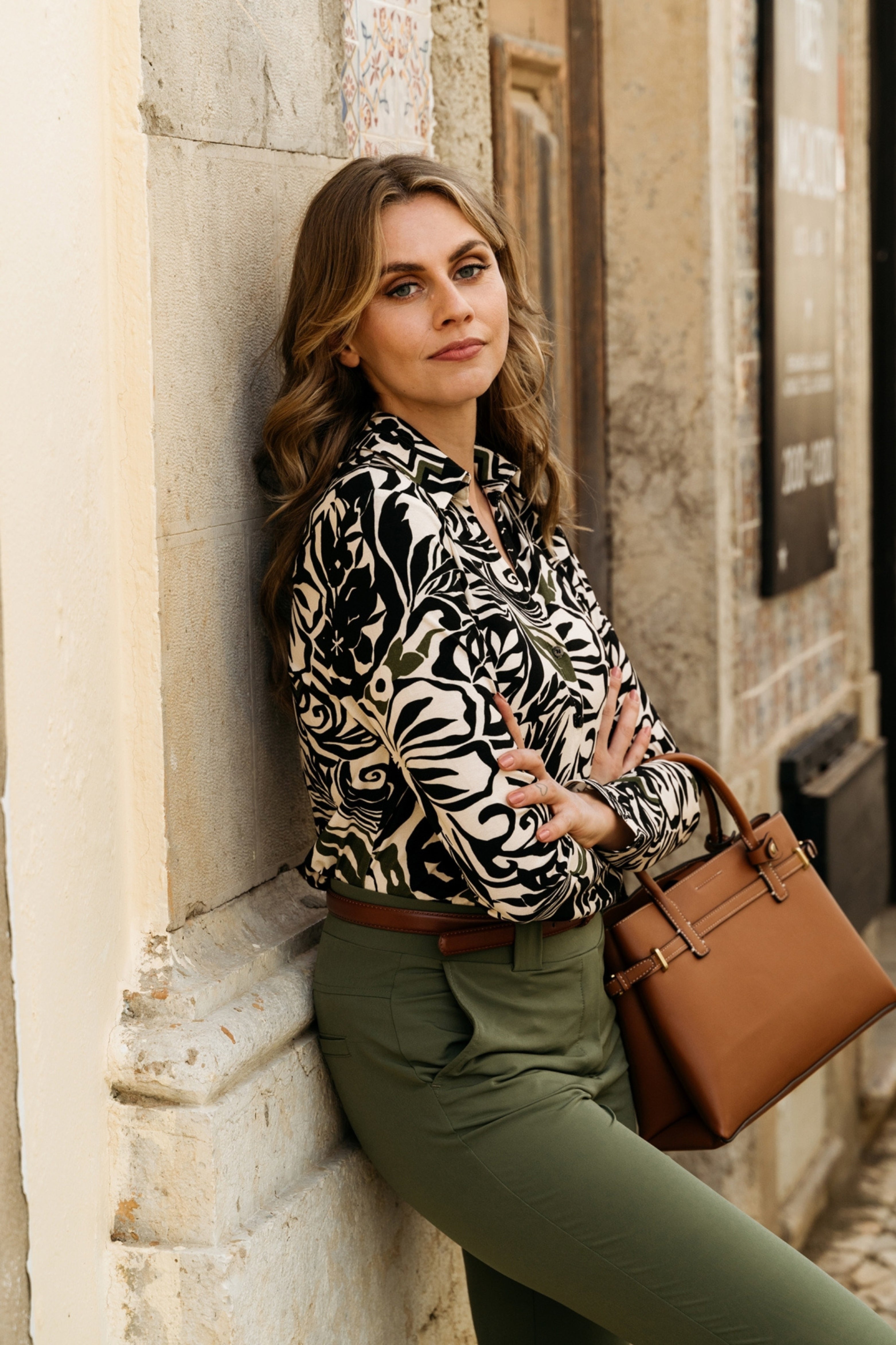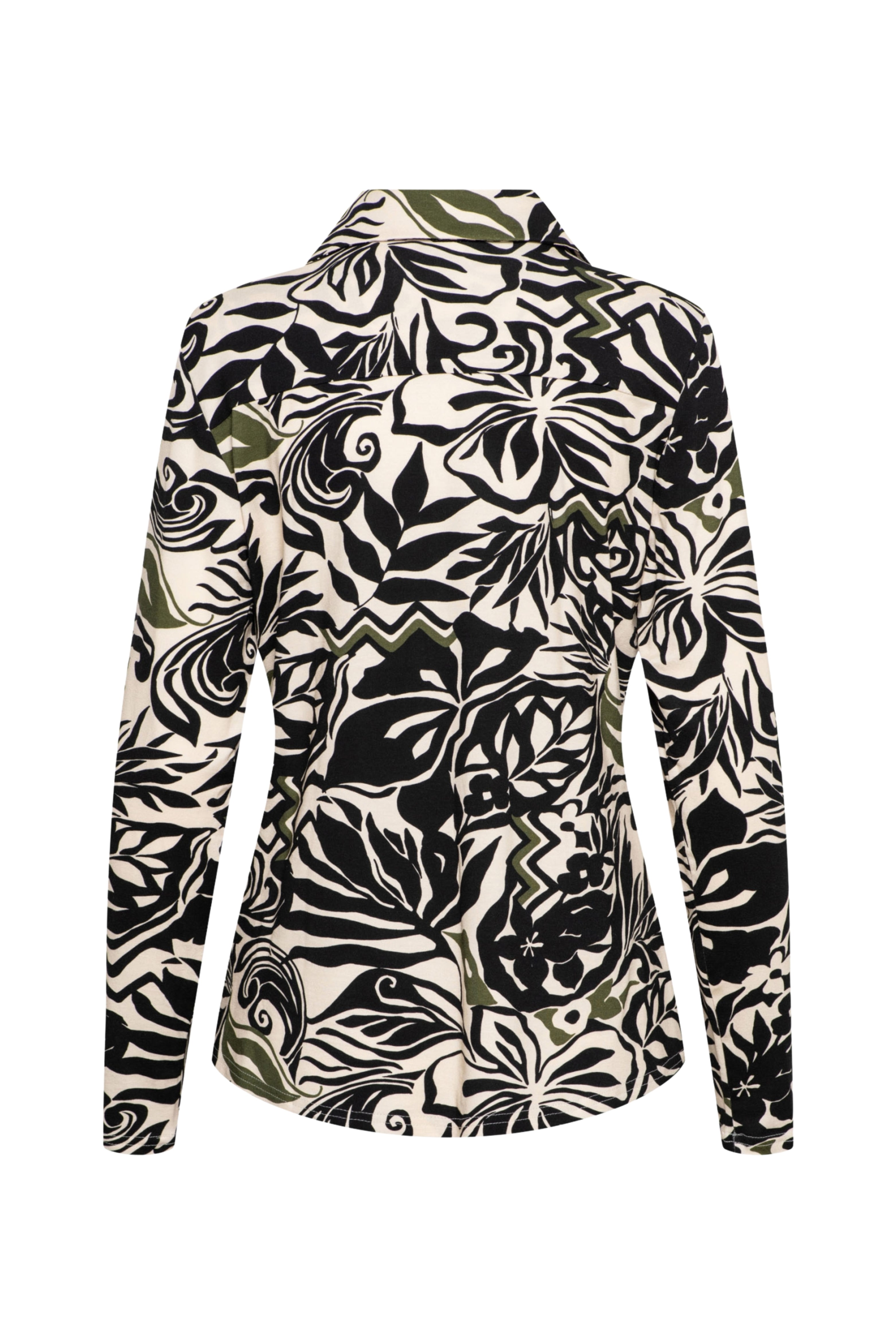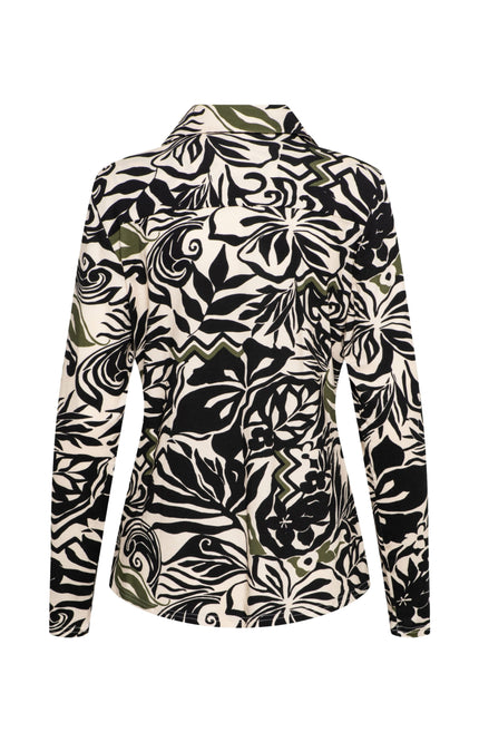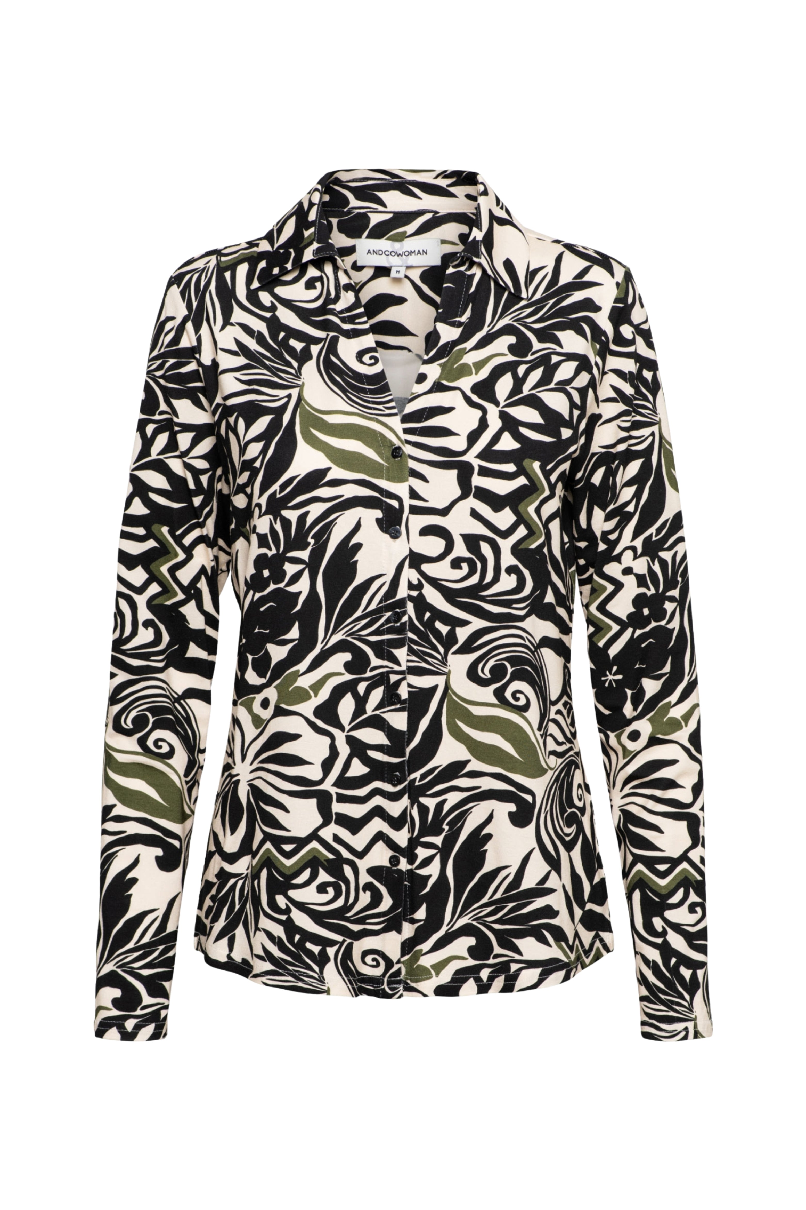 De Blouse Vayen Leaf Black Multi van &CoWoman is een stijlvolle blouse met een grafische bladprint in zwart, wit en olijfgroen. De klassieke kraag, knoopsluiting en lange mouwen met manchetten geven een tijdloze en verfijnde uitstraling. De soepele stof en licht getailleerde pasvorm zorgen voor ultiem draagcomfort, perfect voor zowel werk als vrije tijd.