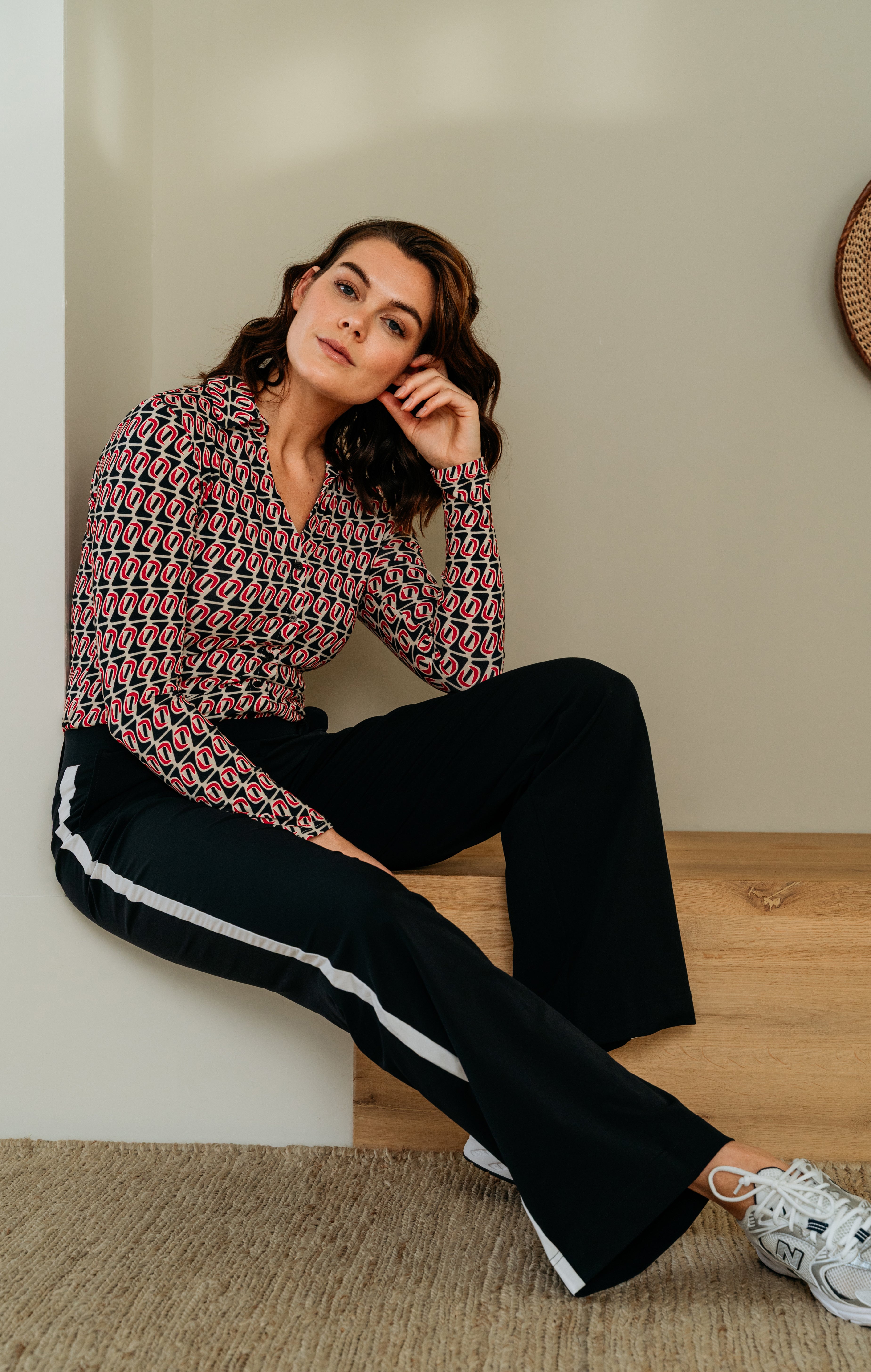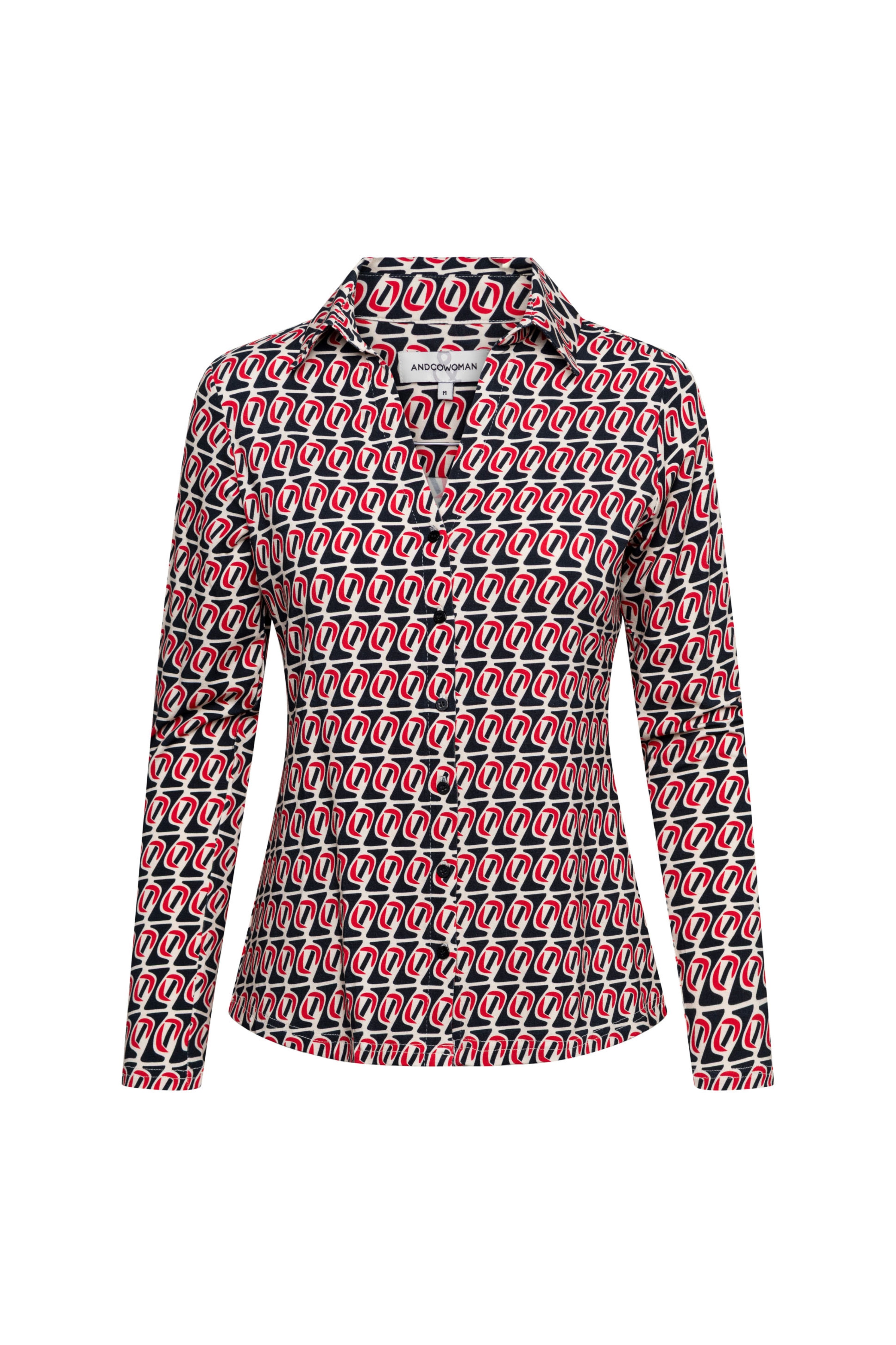 De Blouse Vayen Moon Red Multi van &Co Woman is een stijlvolle blouse met een grafische all-over print in warme roodtinten. De aangesloten pasvorm en klassieke details maken dit item perfect voor een verfijnde najaarslook.