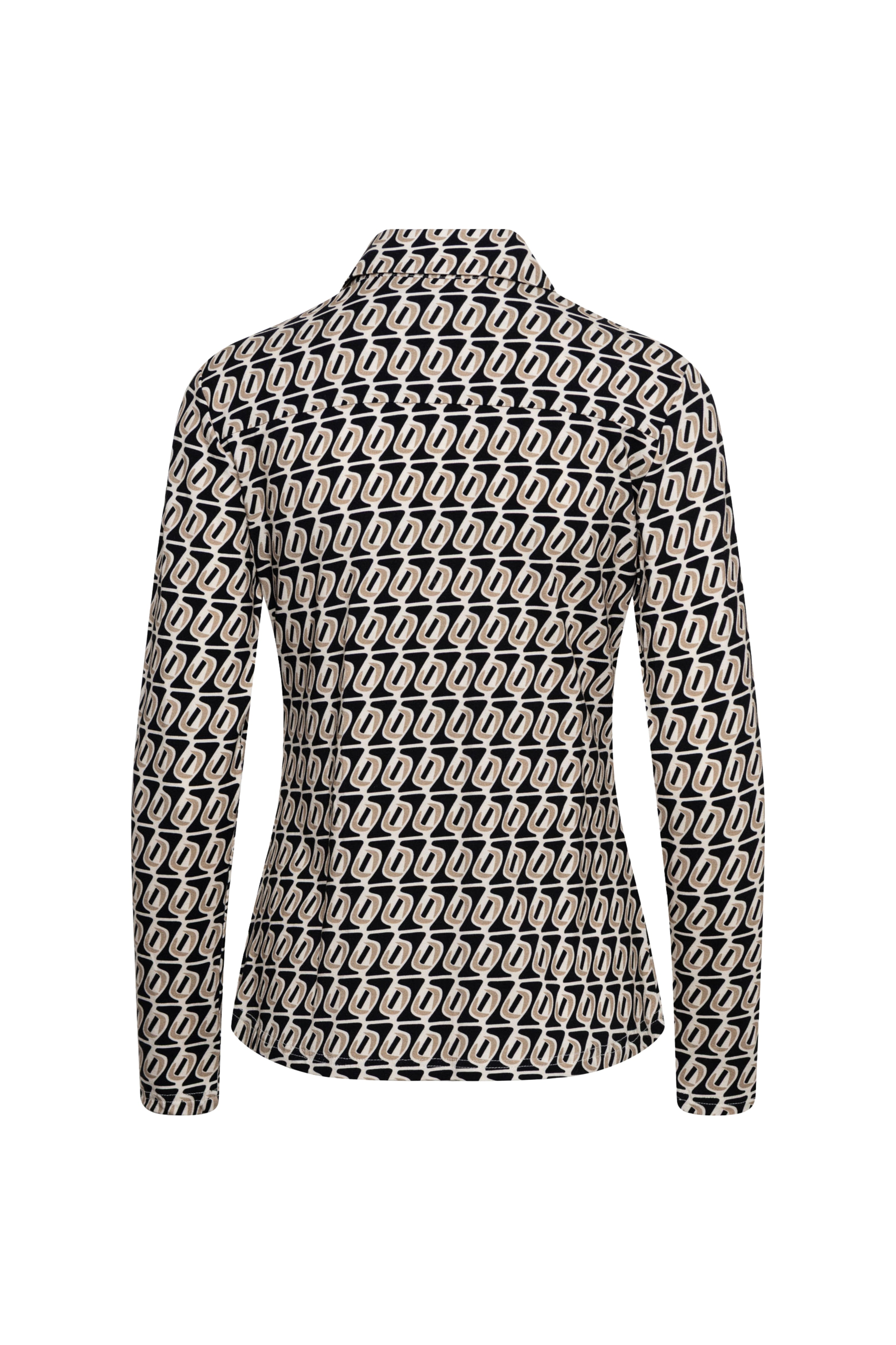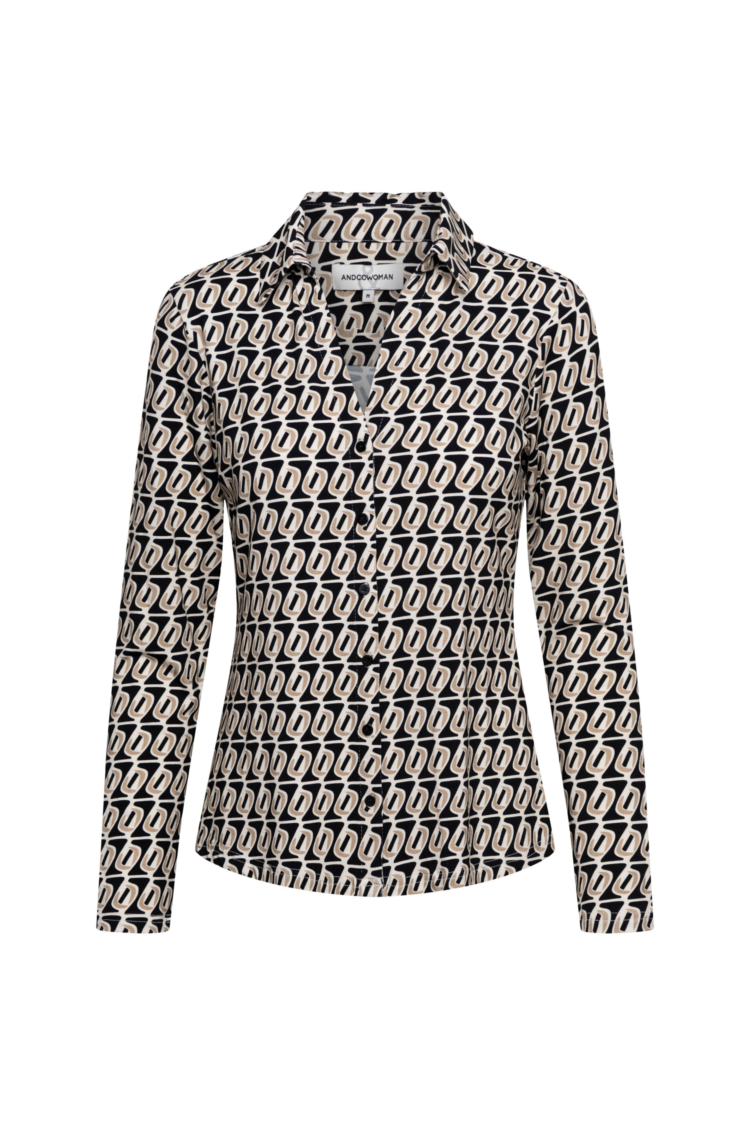 De Blouse Vayen Moon Sunset Multi van &Co Woman is een elegante blouse met een grafische all-over print in warme tinten. De aangesloten pasvorm en klassieke details maken dit item perfect voor een stijlvolle najaarslook.