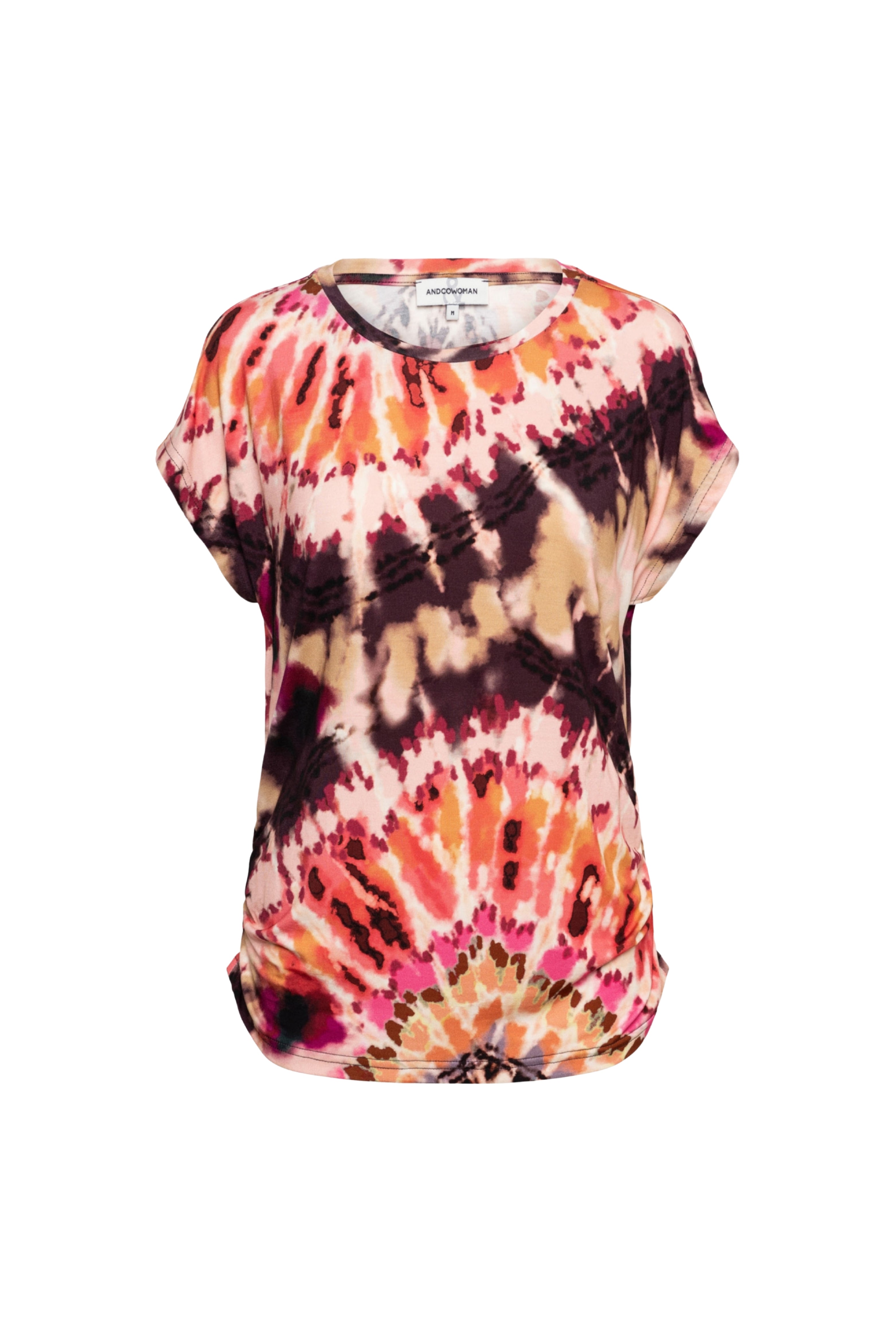 De Blouse Vineeta Tie-Dye Soft Pink Multi van &Co Woman is een kleurrijke blikvanger. De zachte jersey, ronde hals en loose fit zorgen voor ultiem draagcomfort, terwijl de tie-dye print elke outfit een zomerse twist geeft.