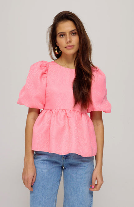 De Vivian Blouse van Harper & Yve is een romantische en stijlvolle toevoeging aan jouw garderobe. Deze prachtige blouse in de kleur Bittersweet Pink heeft een vrouwelijke, speelse uitstraling dankzij de pofmouwen, subtiele jacquard-structuur en strikdetail op de rug.